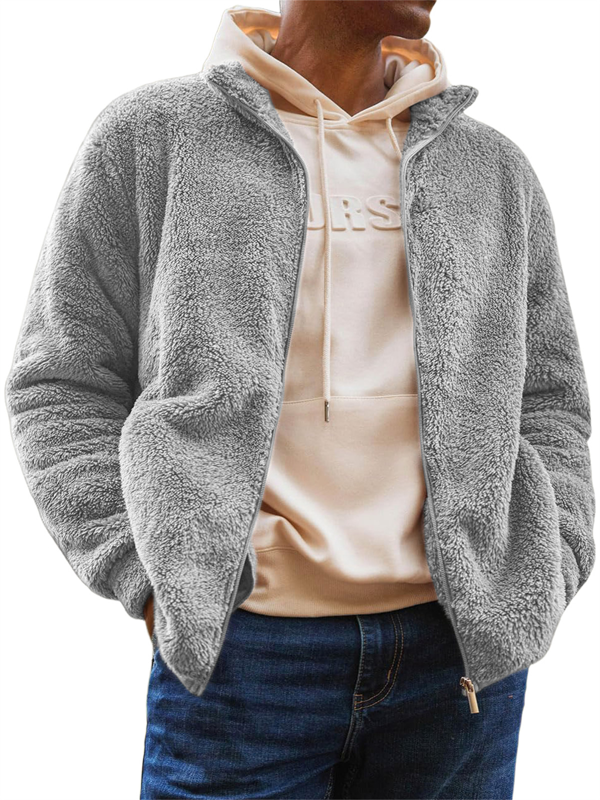 Men's Jacket Plush Jacket Pocket Zipper Sweatshirt
