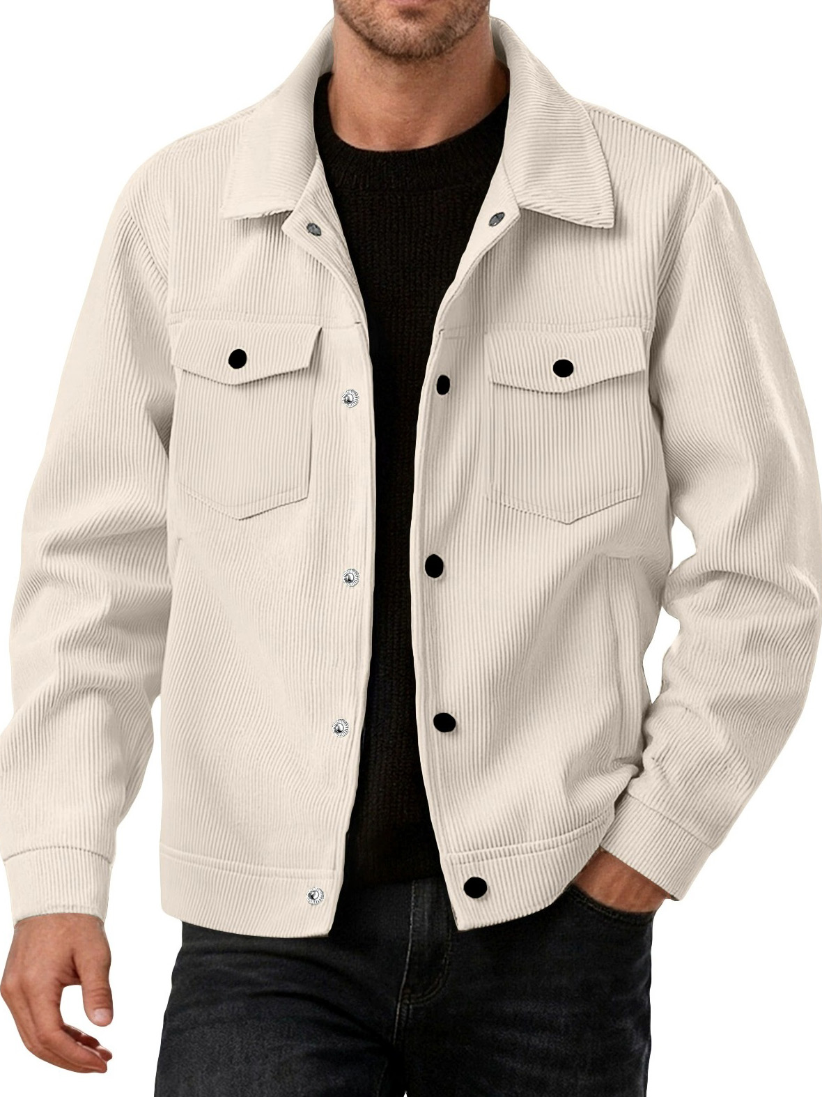 Men's Fashionable Casual Ribbed Fabric Long-Sleeved Pocket Jacket