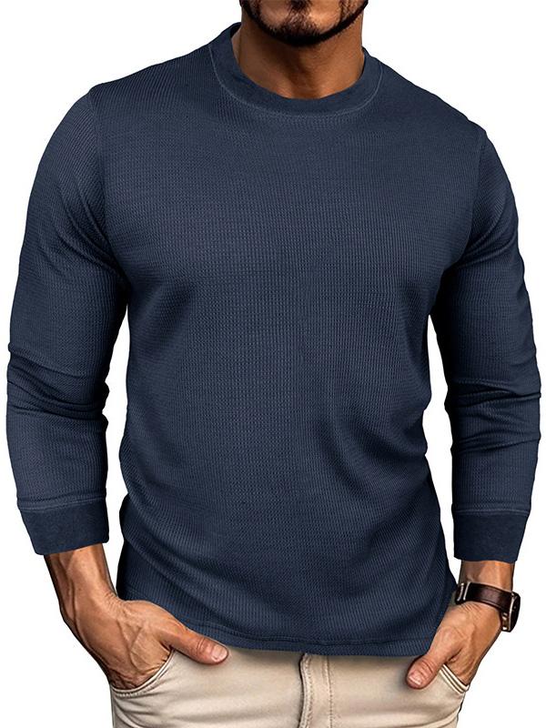 Men's Round Neck Waffle Solid Color Basic Long Sleeved T-shirt
