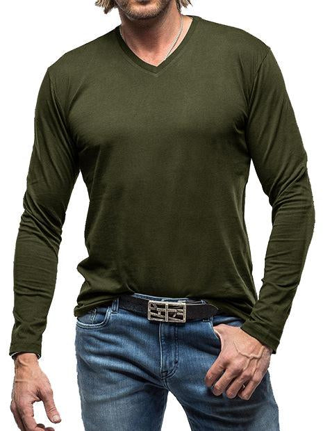 V-neck Cotton Basic Fitted Long-sleeved Top