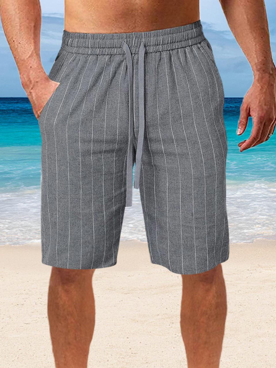 Men's Elastic Waist Striped Cotton Linen Casual Basic Pocket Shorts