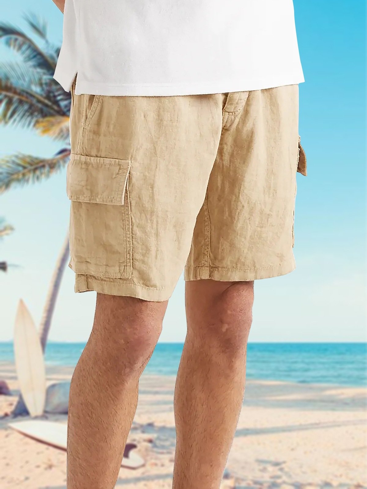 Men's Linen Shorts Multi-pocket Tethered Beach Cargo Pants