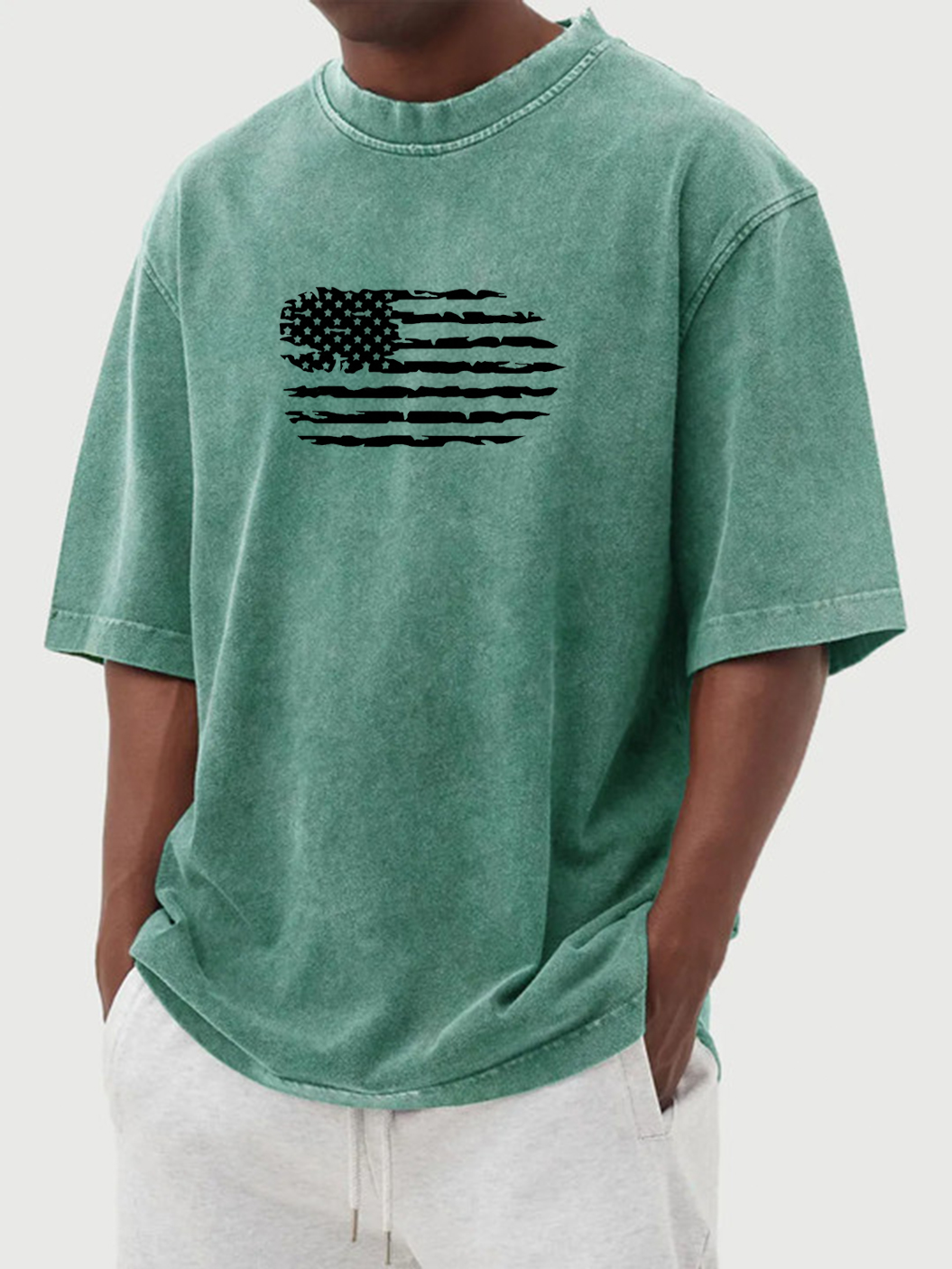 Men's Vintage Washed Flag Print Short Sleeve T-Shirt