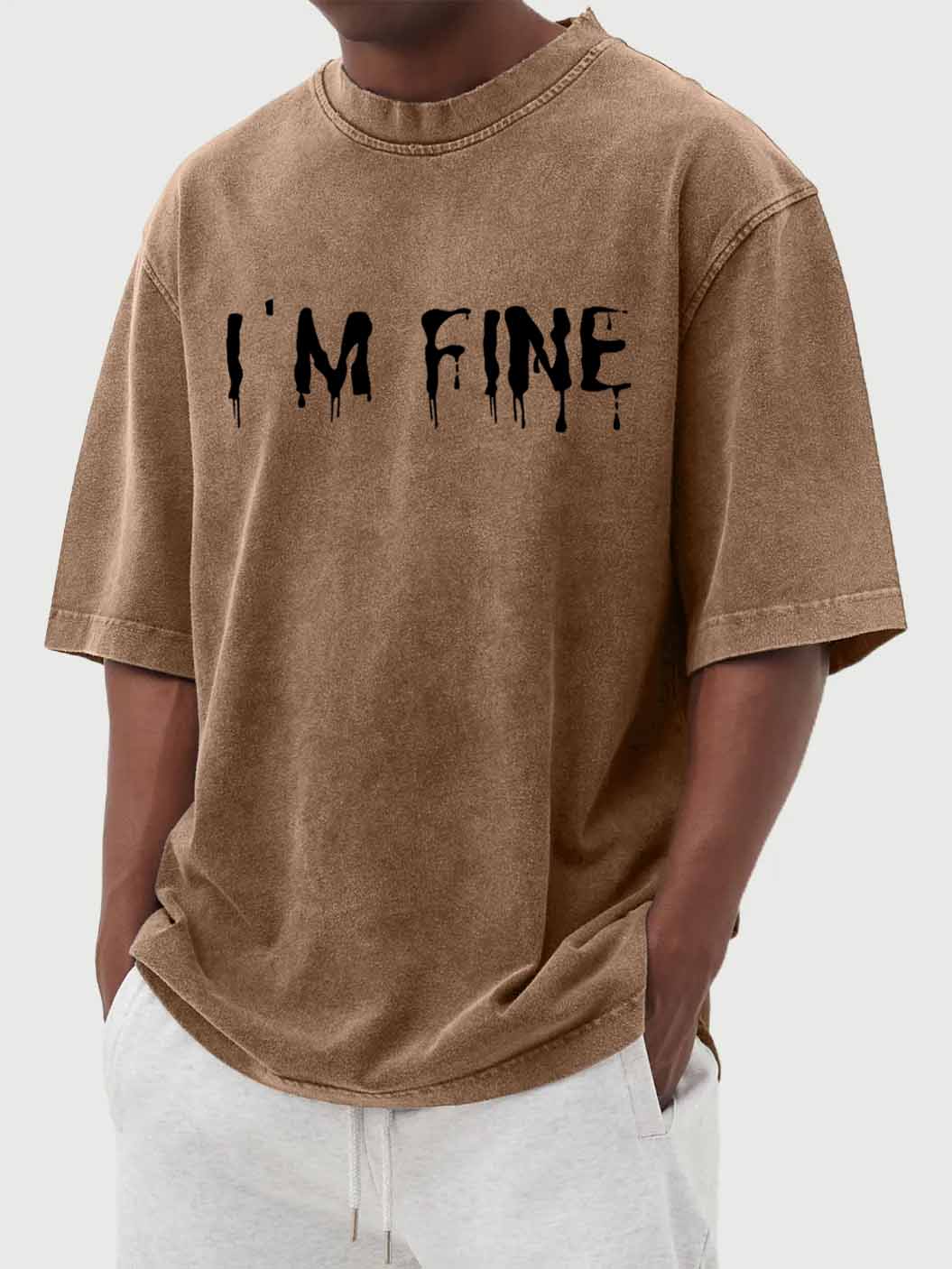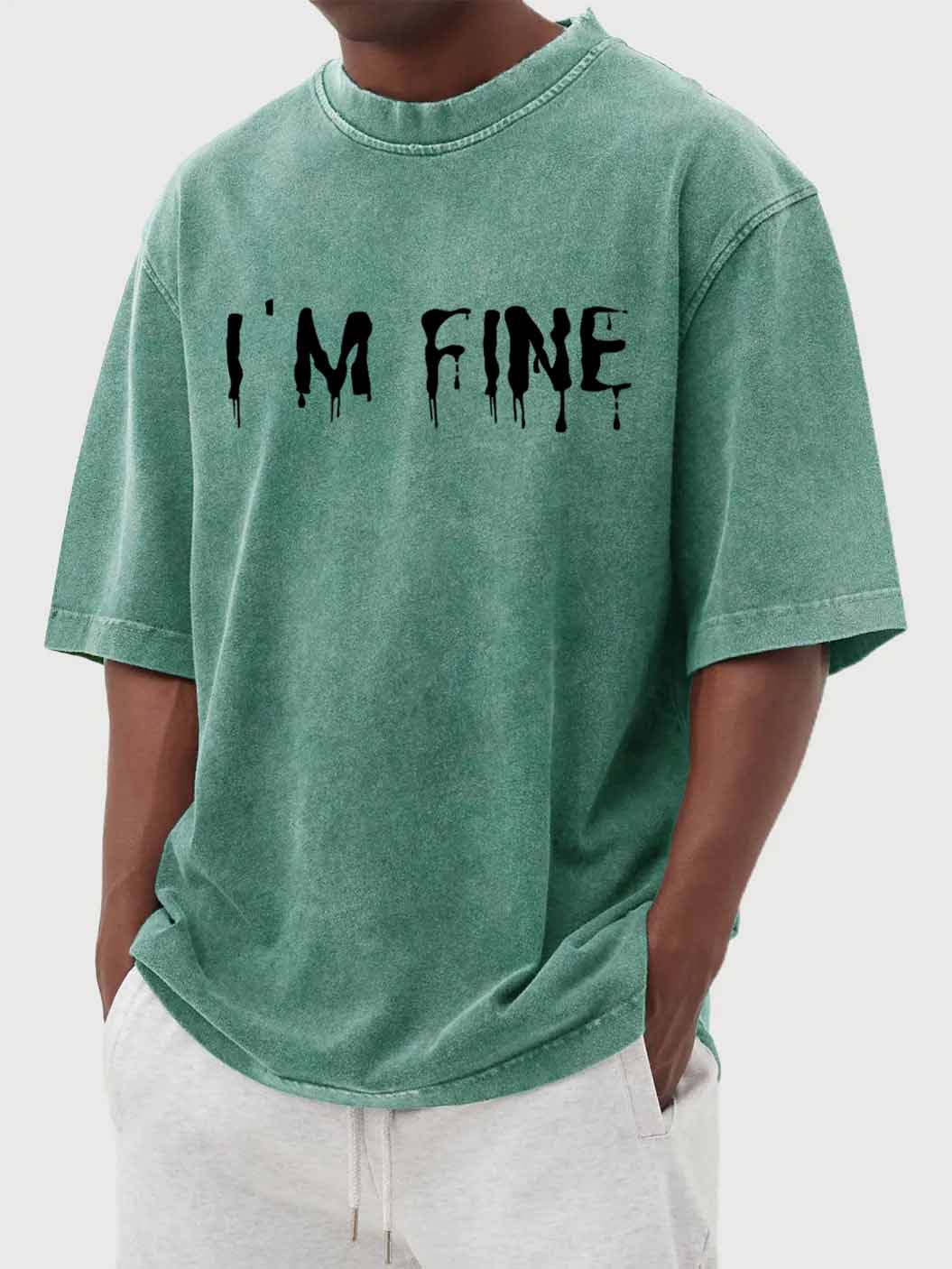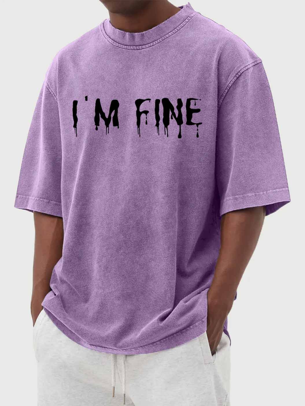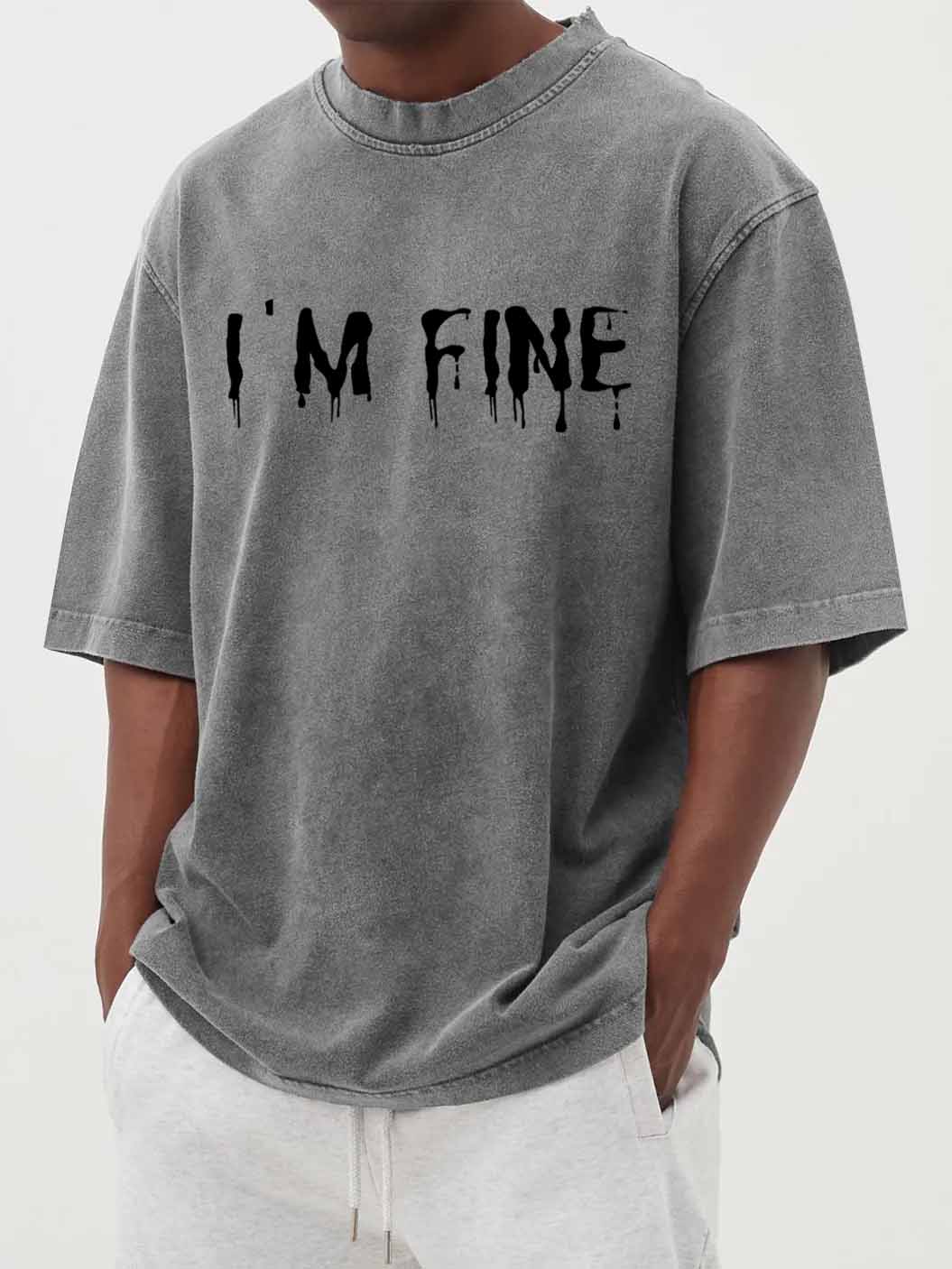 "I'M FINE" Letter Print Vintage Washed Short-Sleeved T-shirt
