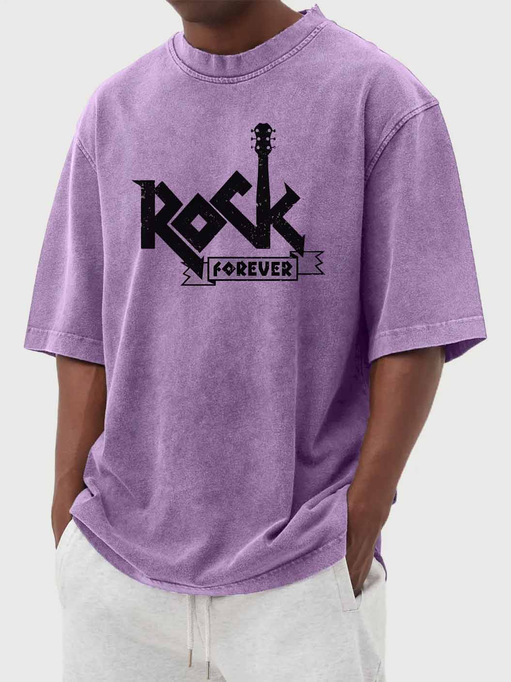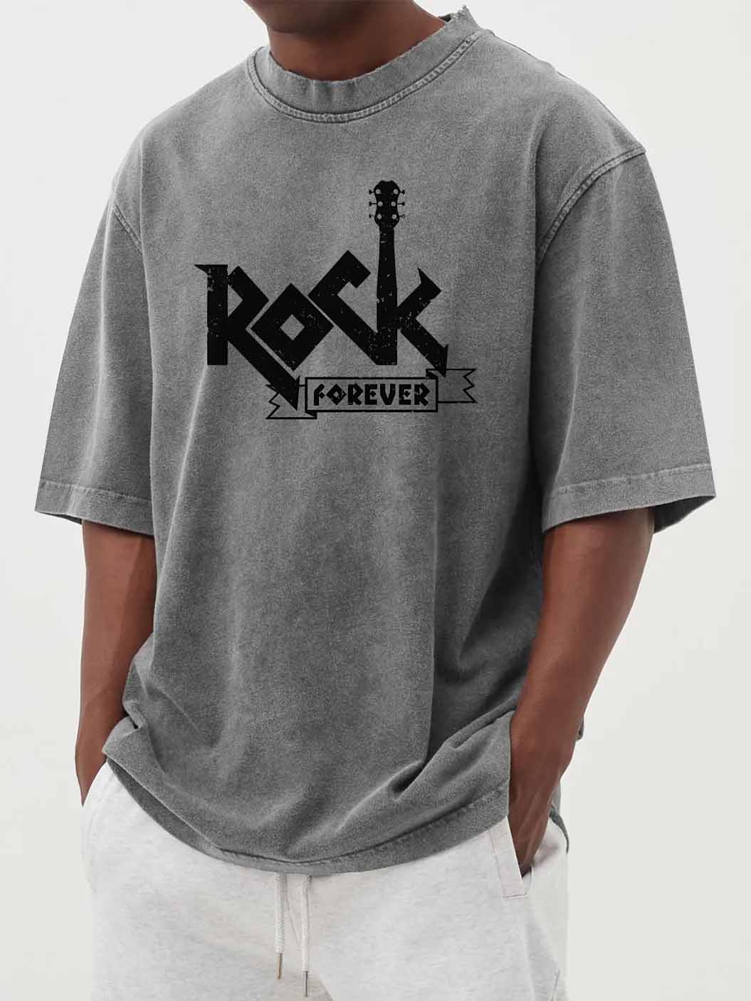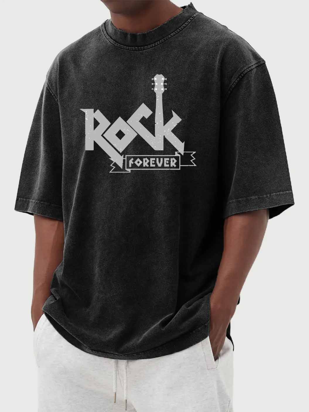 "ROCK FOREVER" letter print vintage washed short-sleeved T-shirt