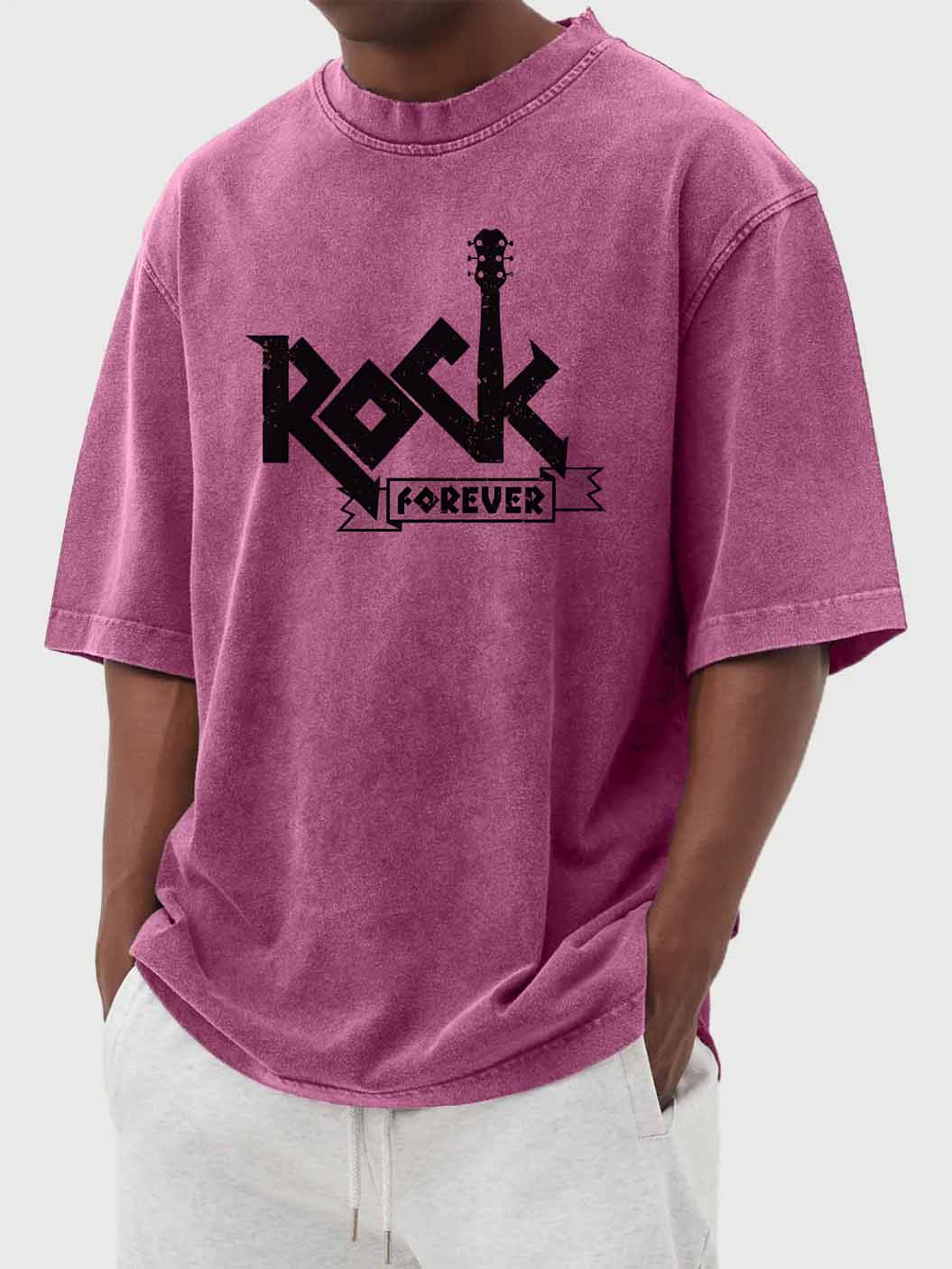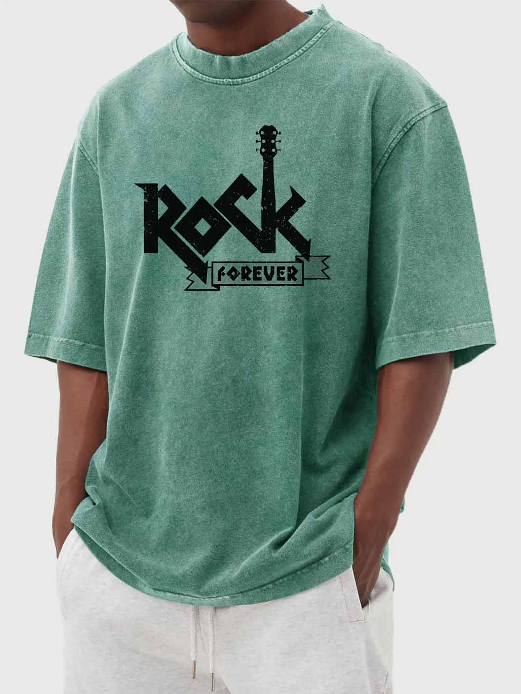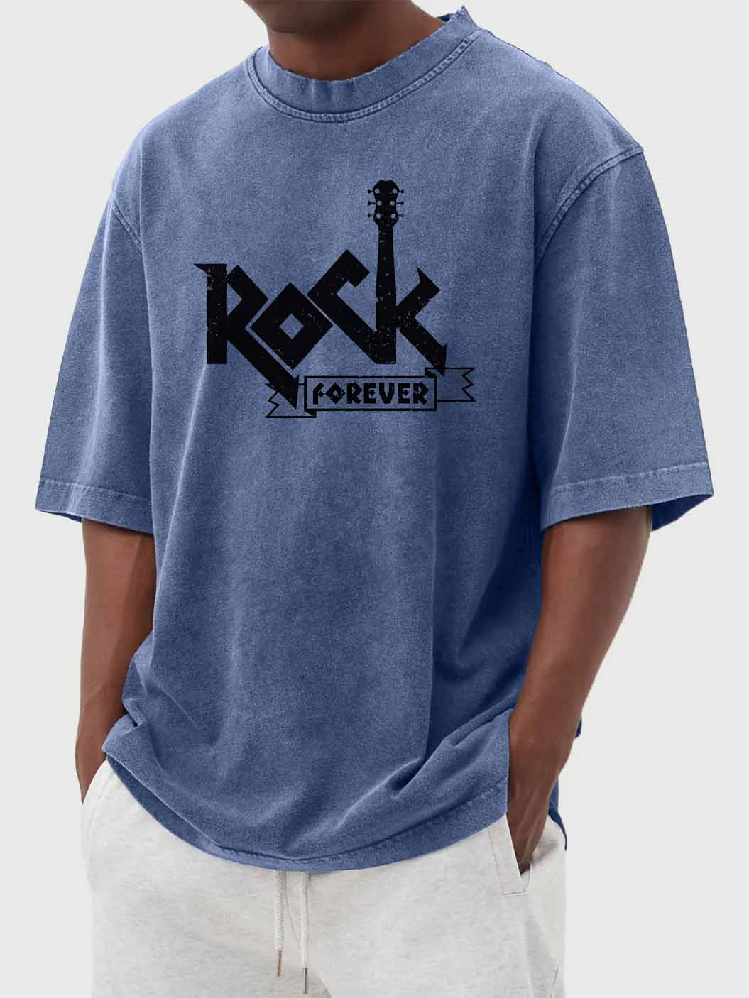 "ROCK FOREVER" letter print vintage washed short-sleeved T-shirt