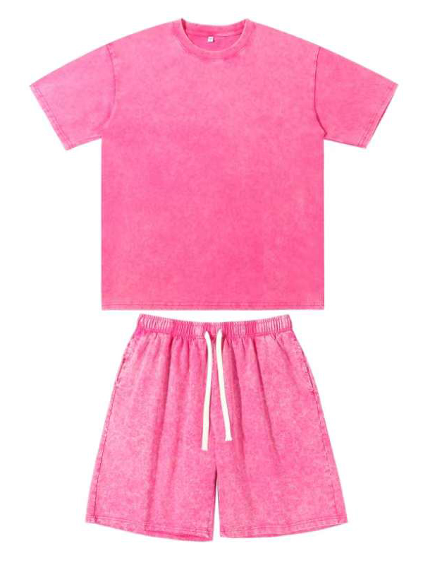 Men's 230g Cotton Washed And Distressed Batik T-shirt Shorts 2-piece Set
