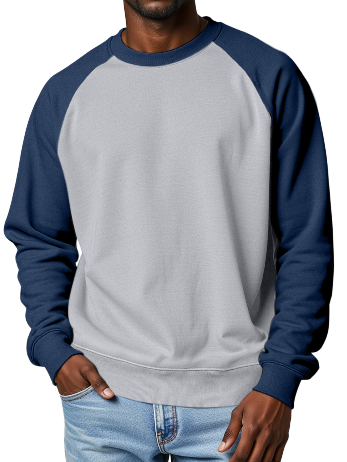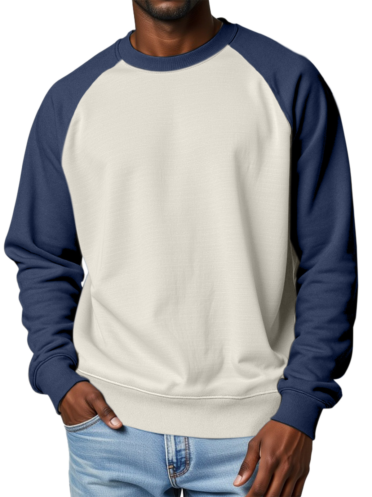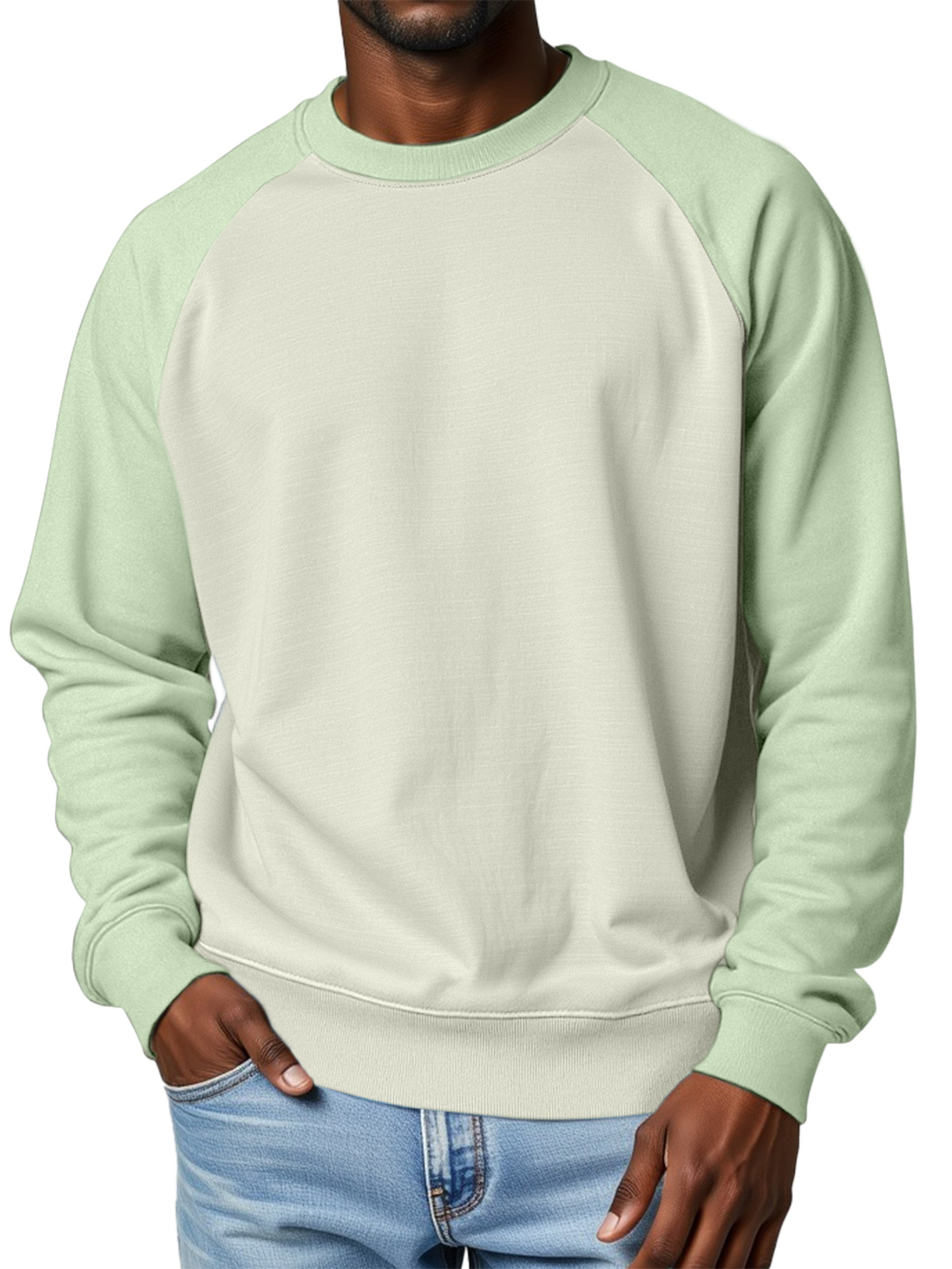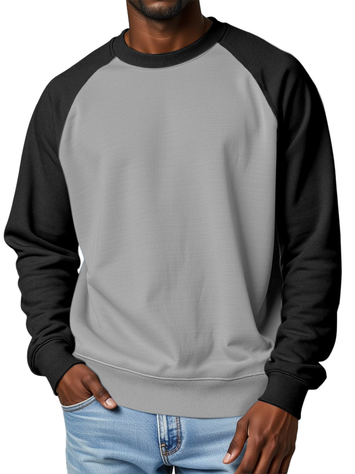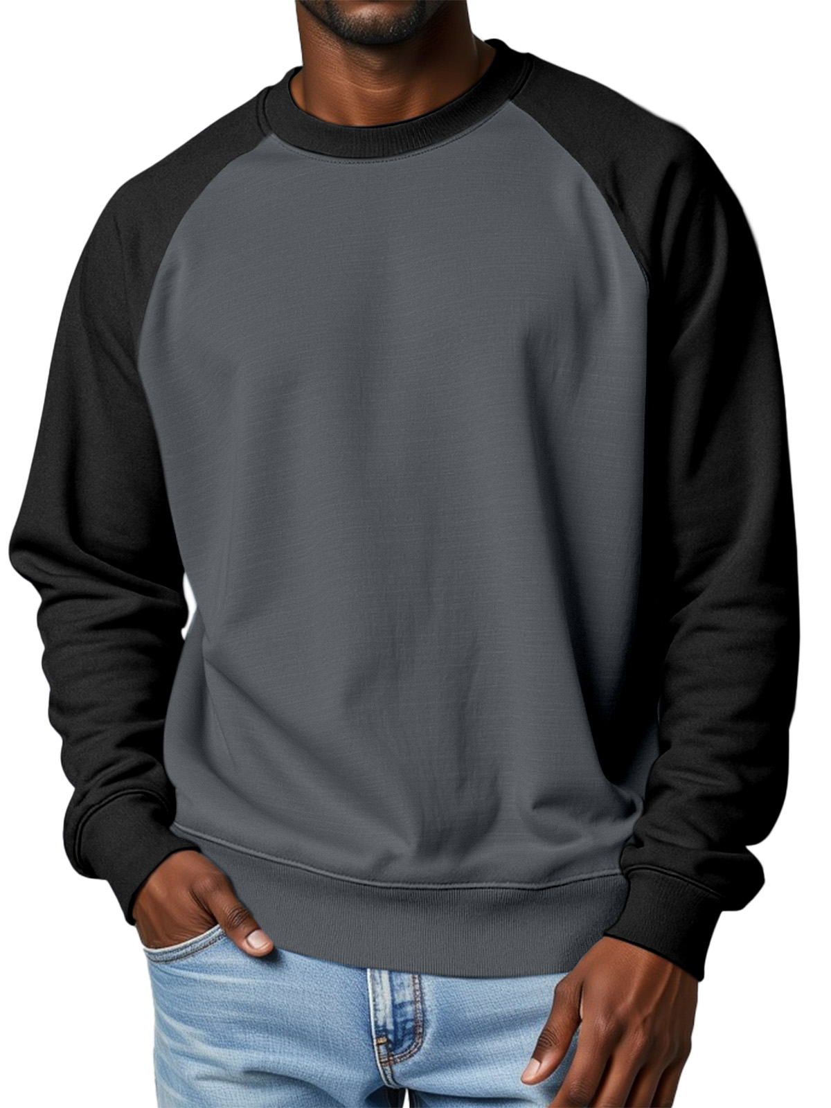 Men's 360g Cotton Solid Color Casual Raglan Round Neck Long-sleeved Sweatshirt