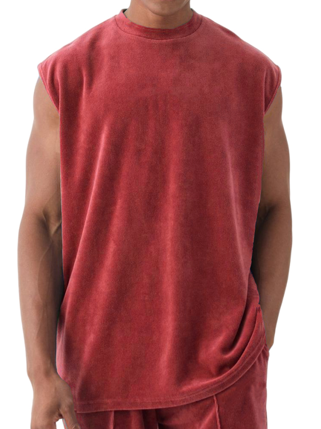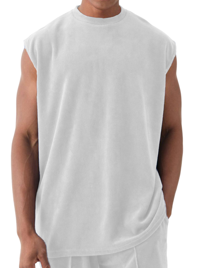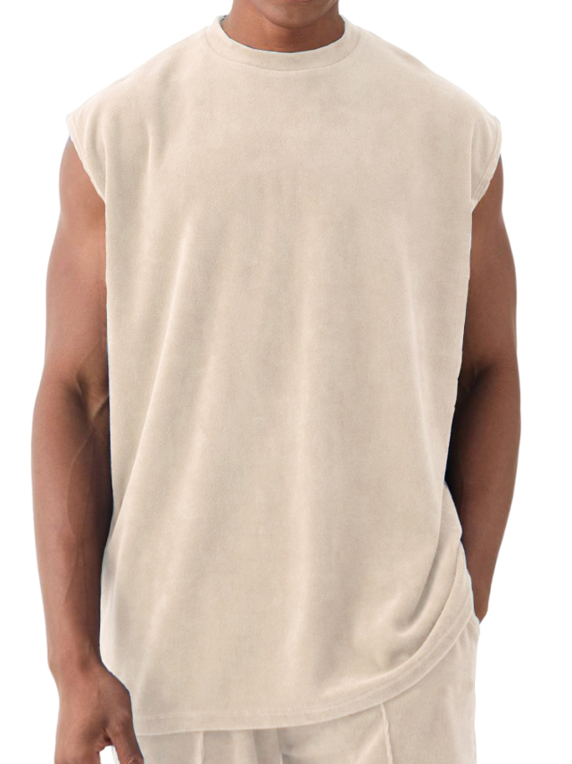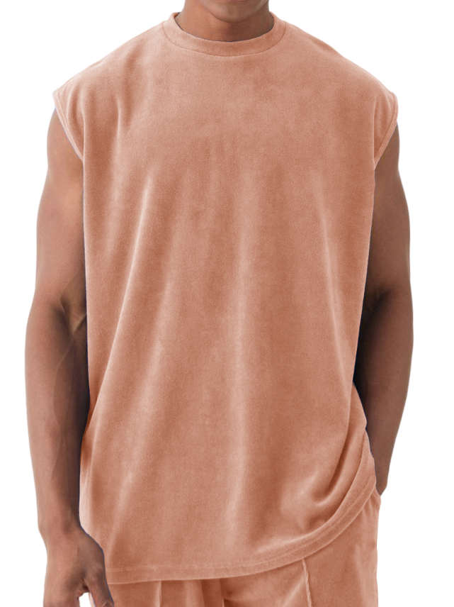 Men's Athleisure Suede Fabric Sleeveless T-Shirt