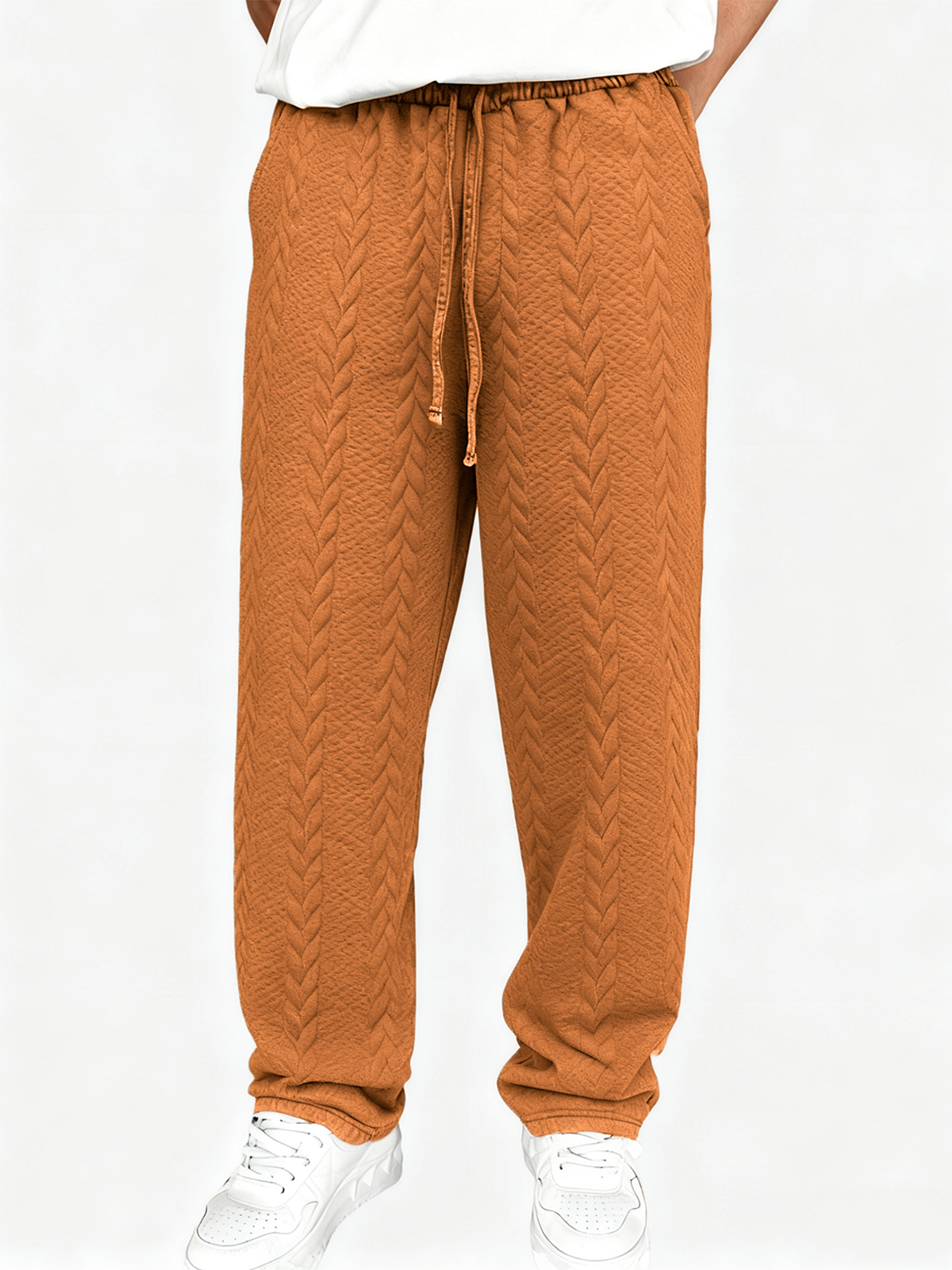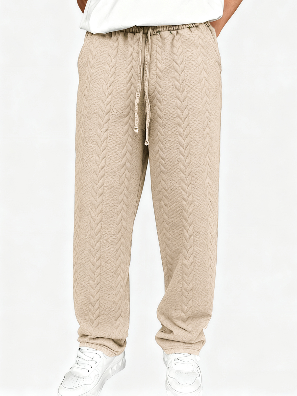 Men's Casual Jacquard Loose Solid Color Drawstring Wide-leg Straight Trousers