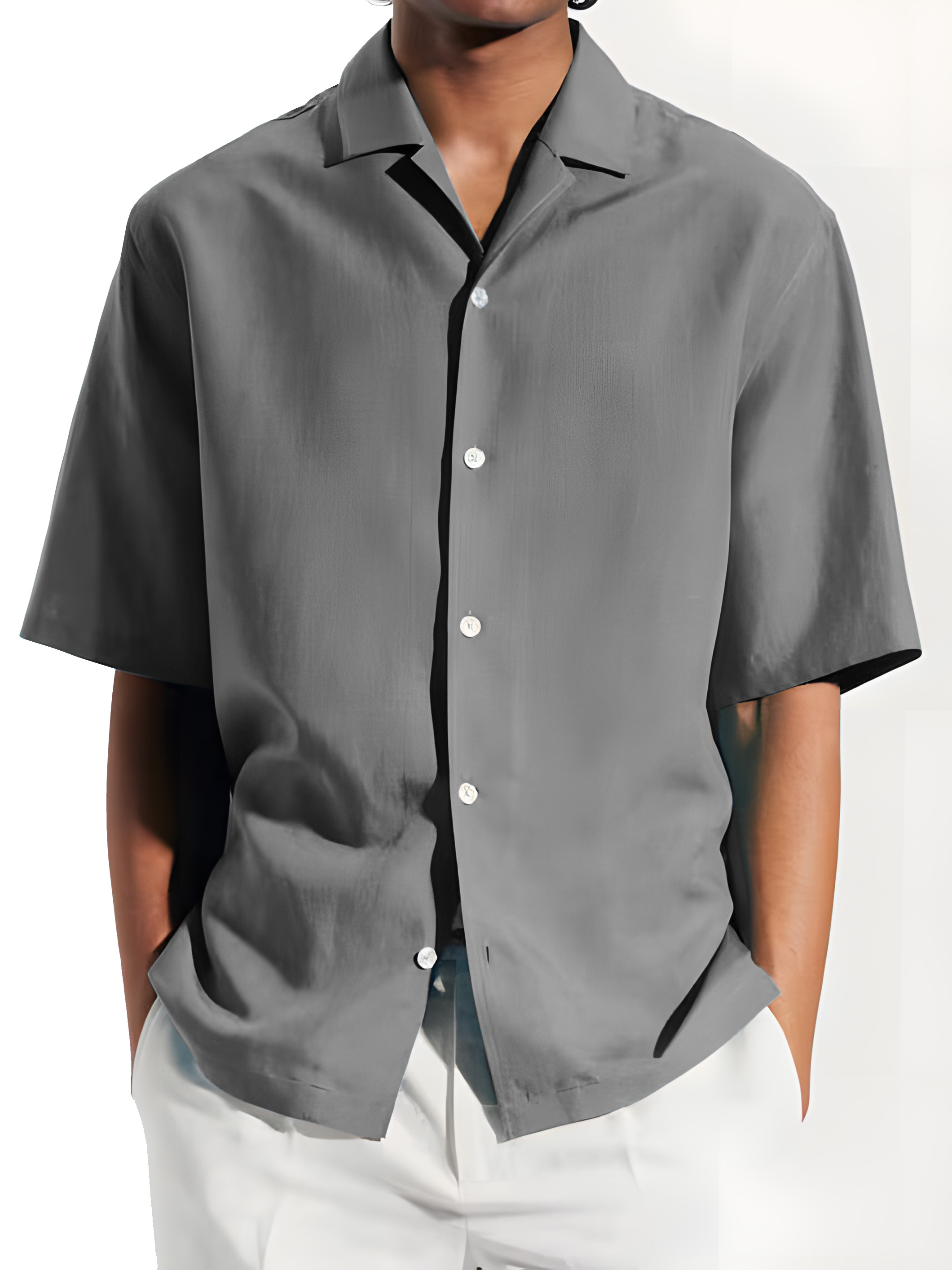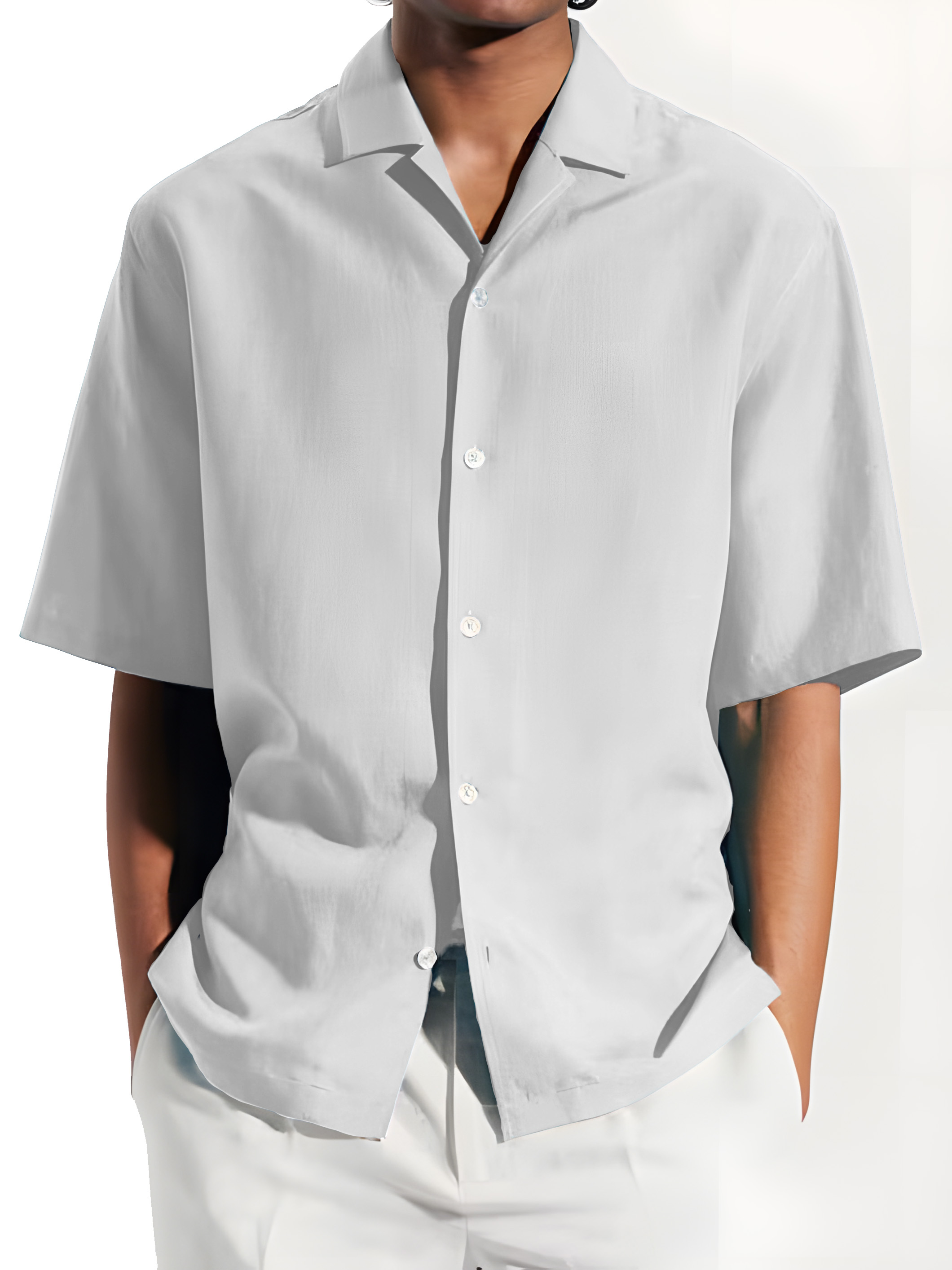 Men's Fashion Basics Cuban Collar Short Sleeve Shirt