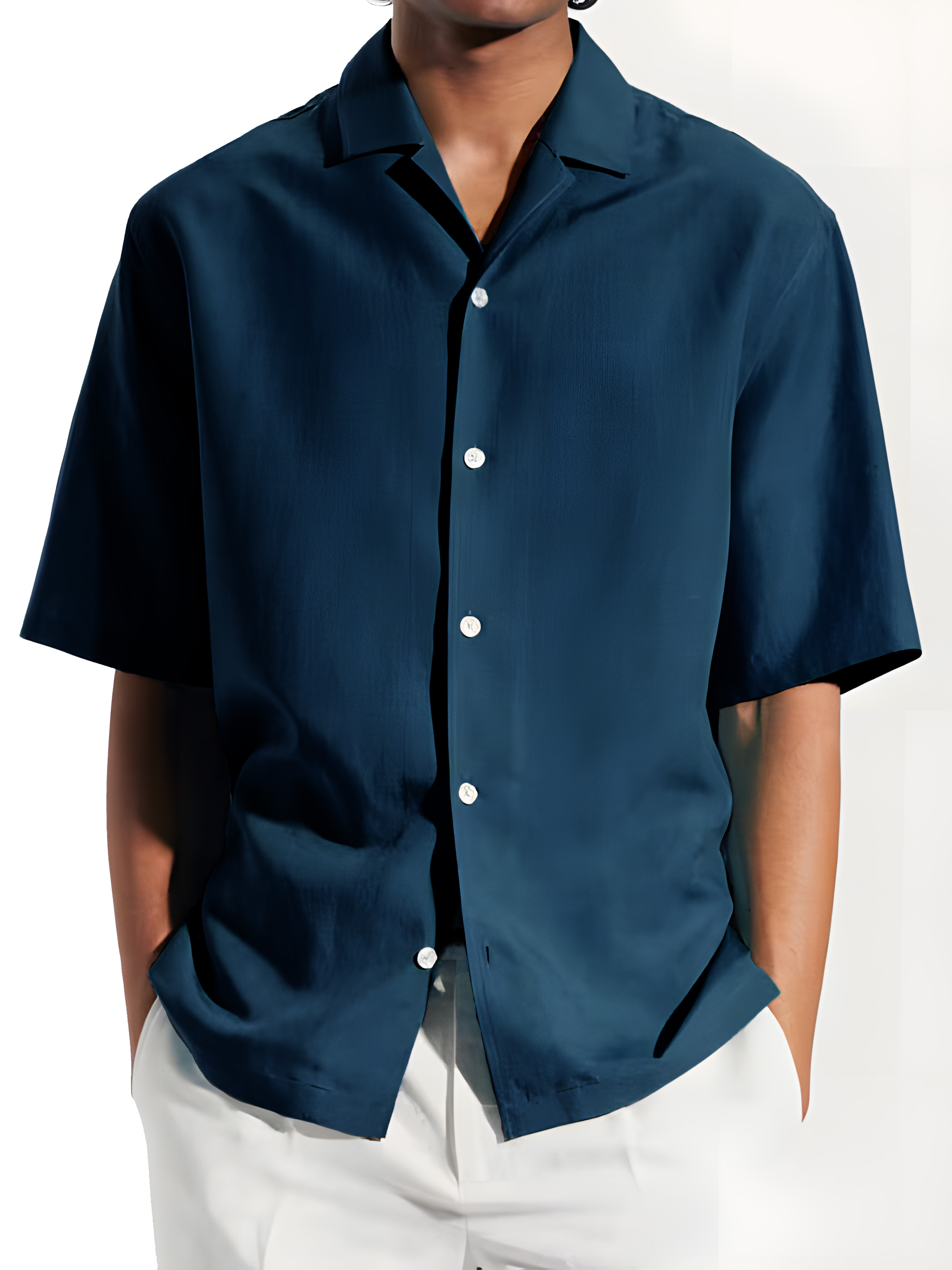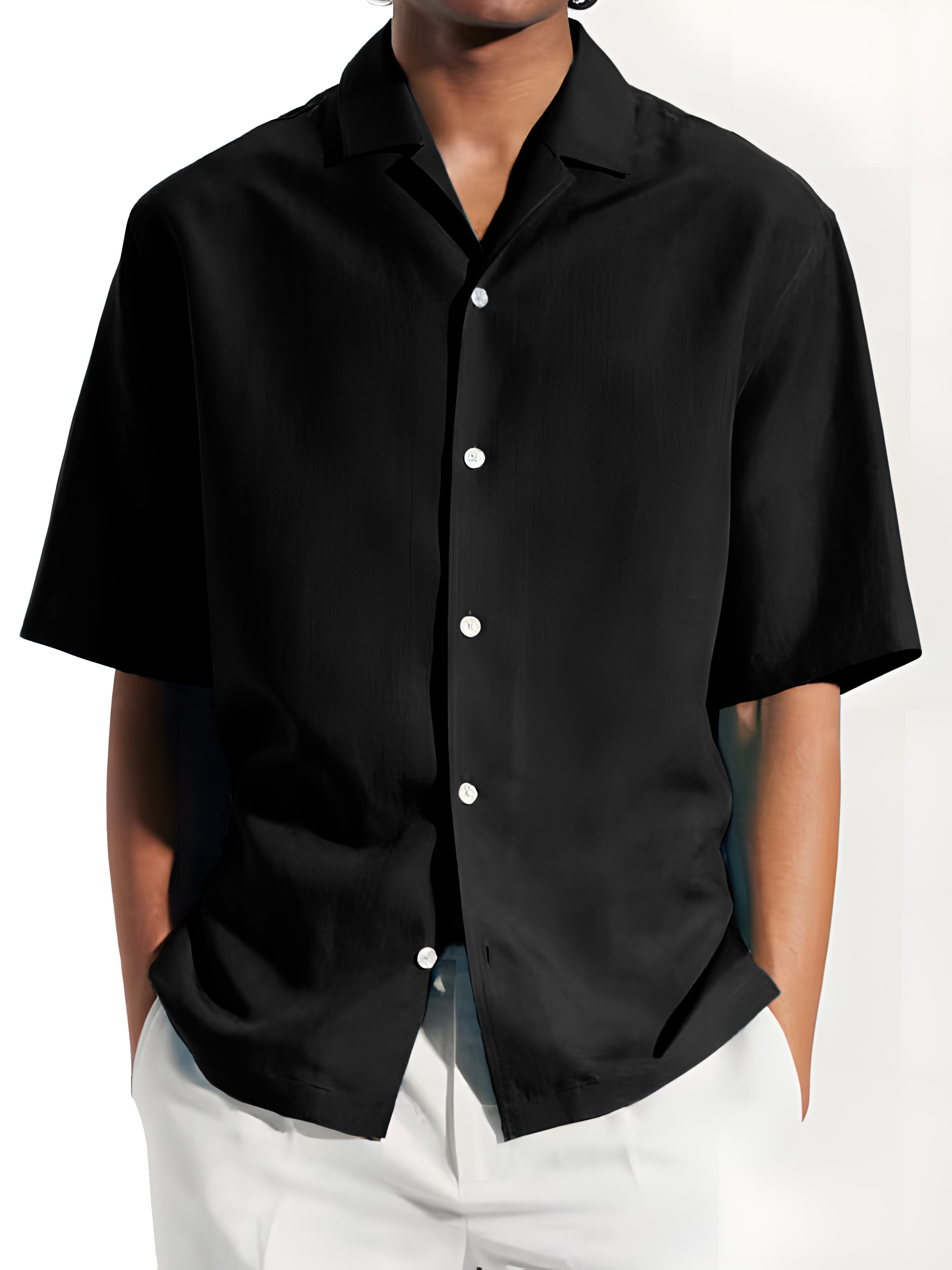 • Neckline:Camp Collar