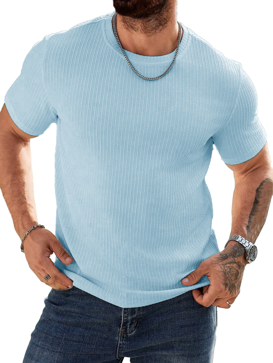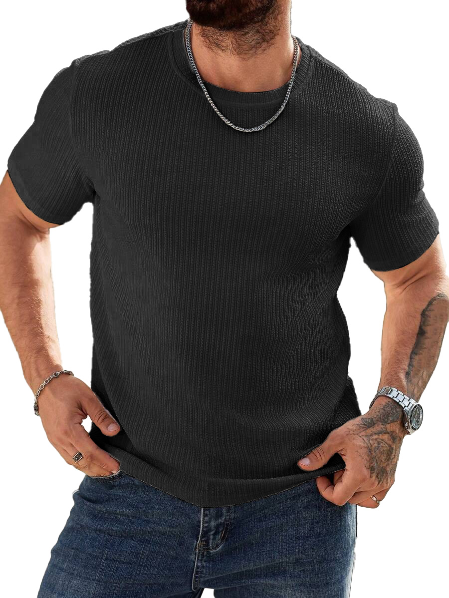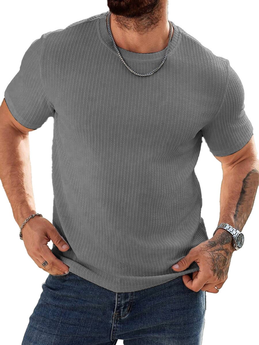 Men's Fashion Casual Striped Fabric Short Sleeve T-shirt