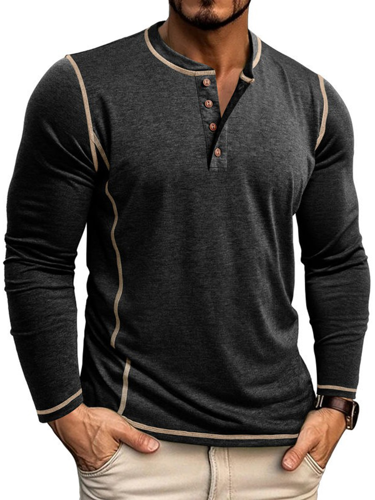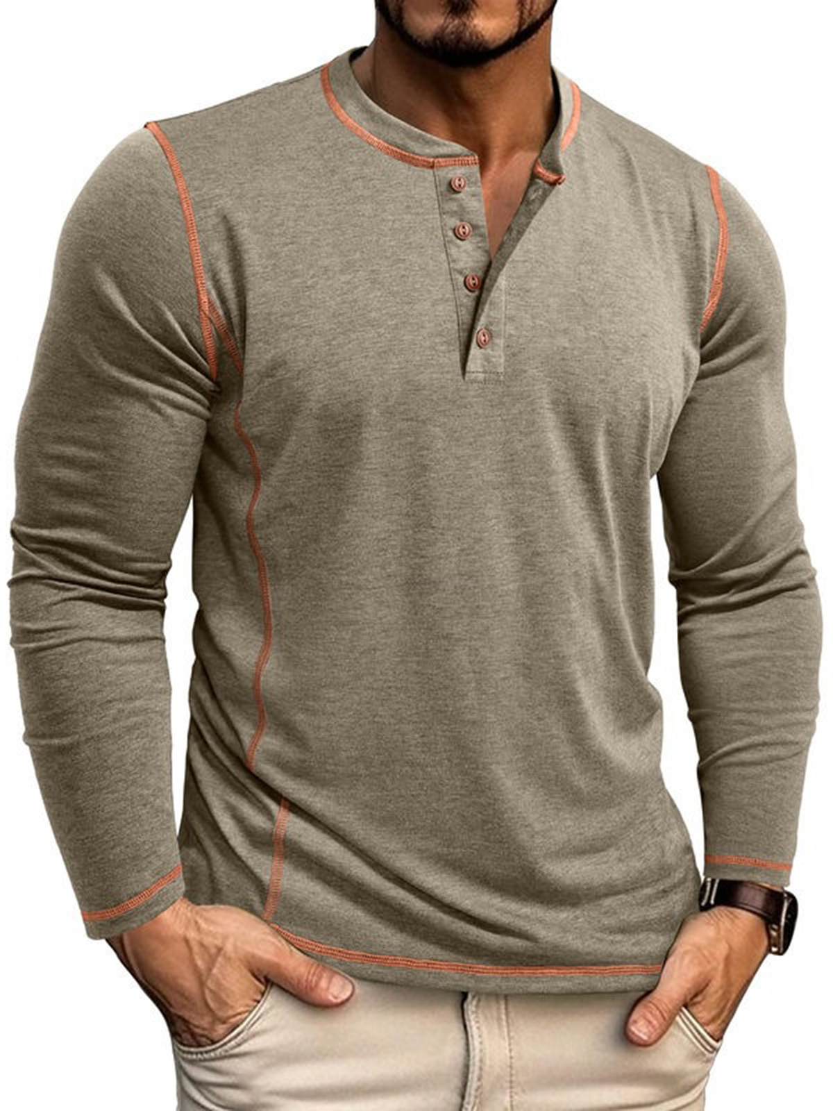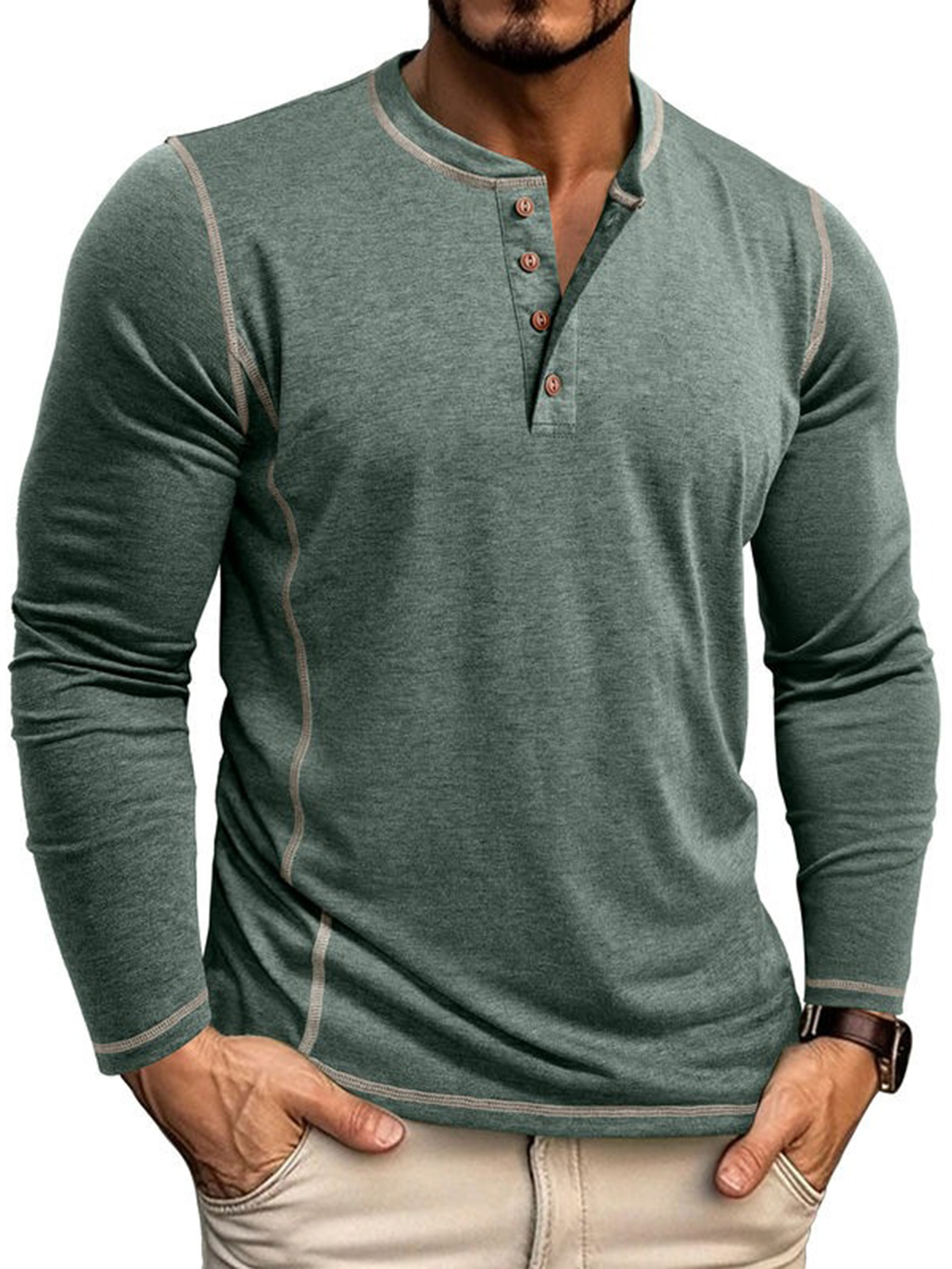 Men's Fashionable Solid Color Casual and Comfortable Long Sleeve Henley Shirt