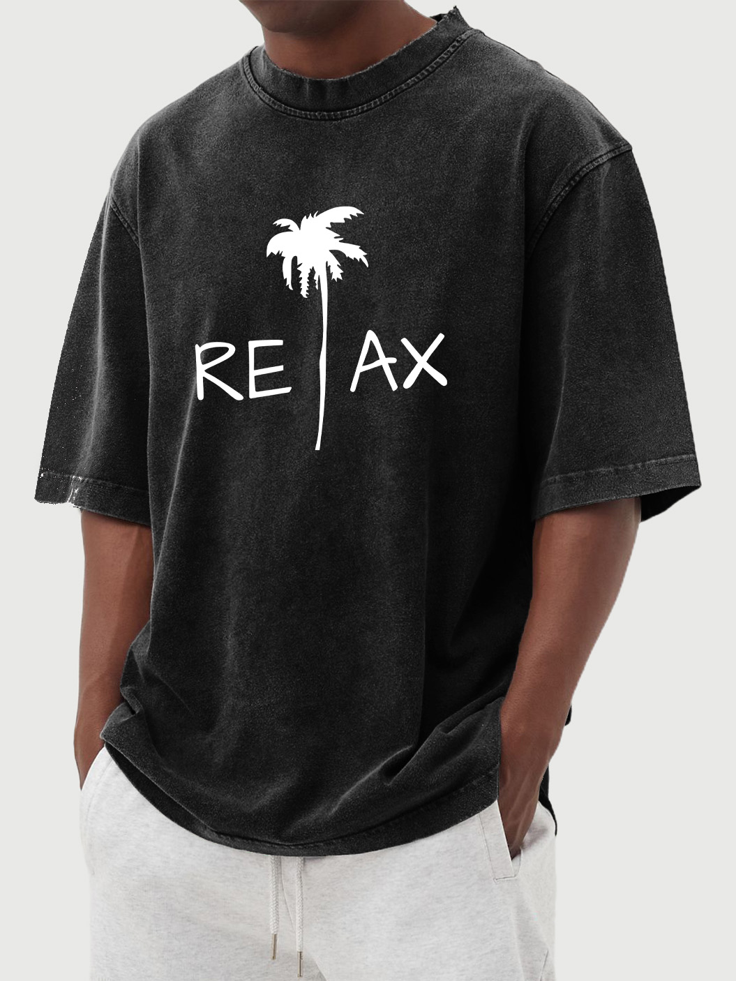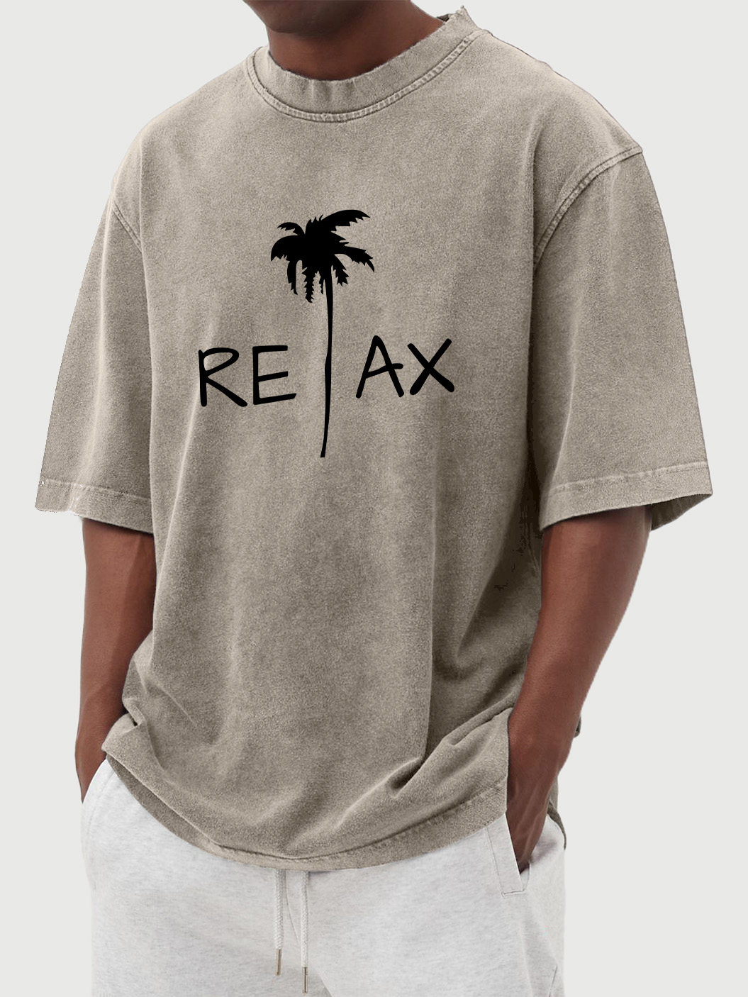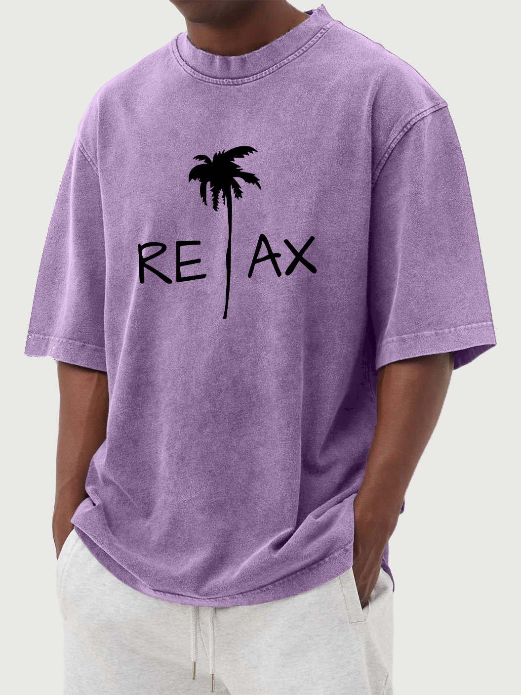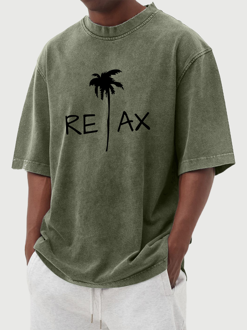 Men's Hawaiian Casual RELAX Coconut Tree Print 100 Cotton Short Sleeve T-shirt