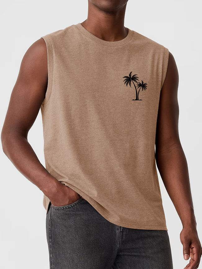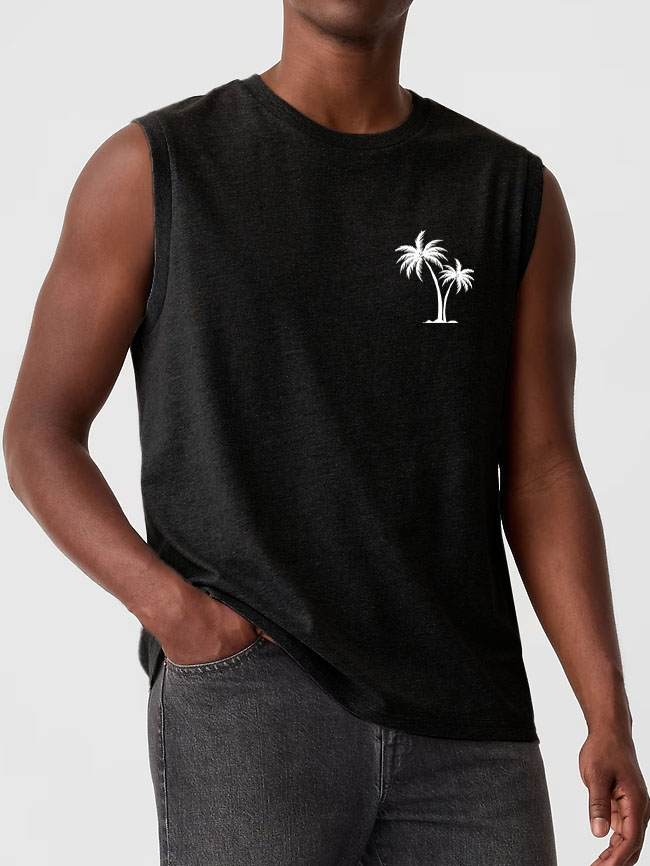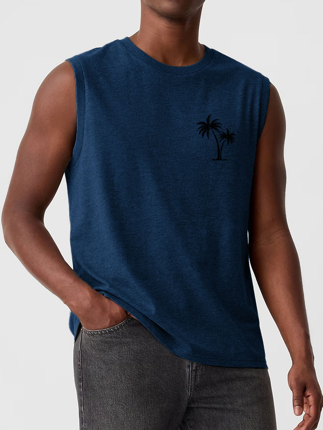 Men's Hawaiian Coconut Print Casual Comfortable Sleeveless T-Shirt