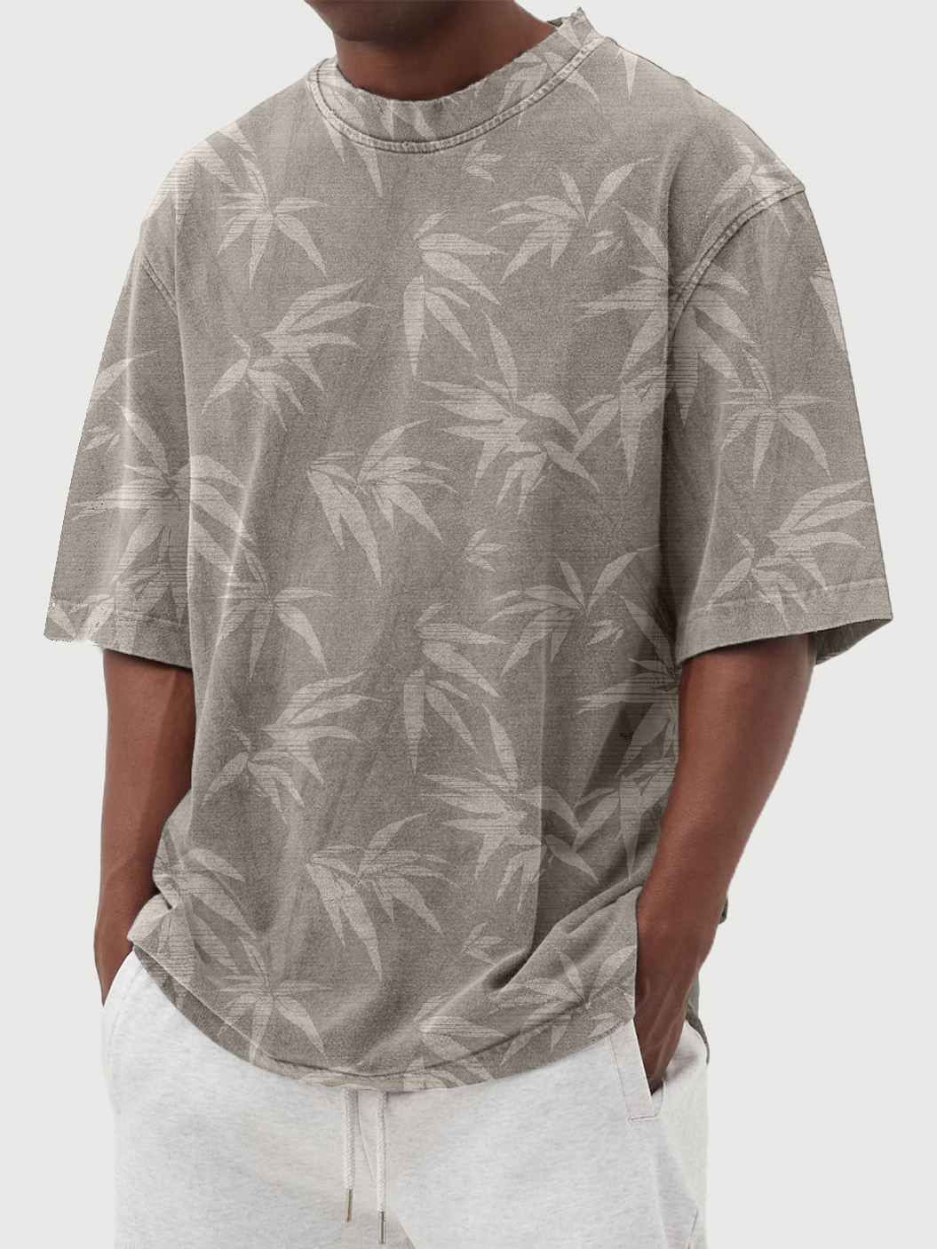 Men's Hawaiian Comfortable Bamboo Leaf Print Short Sleeve T-shirt
