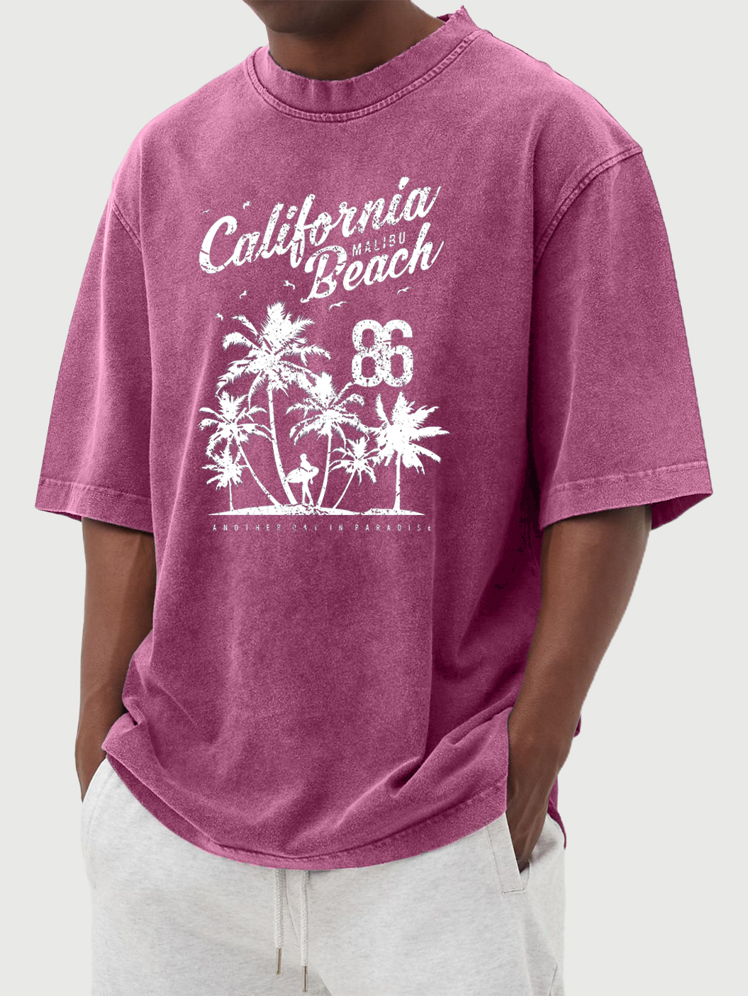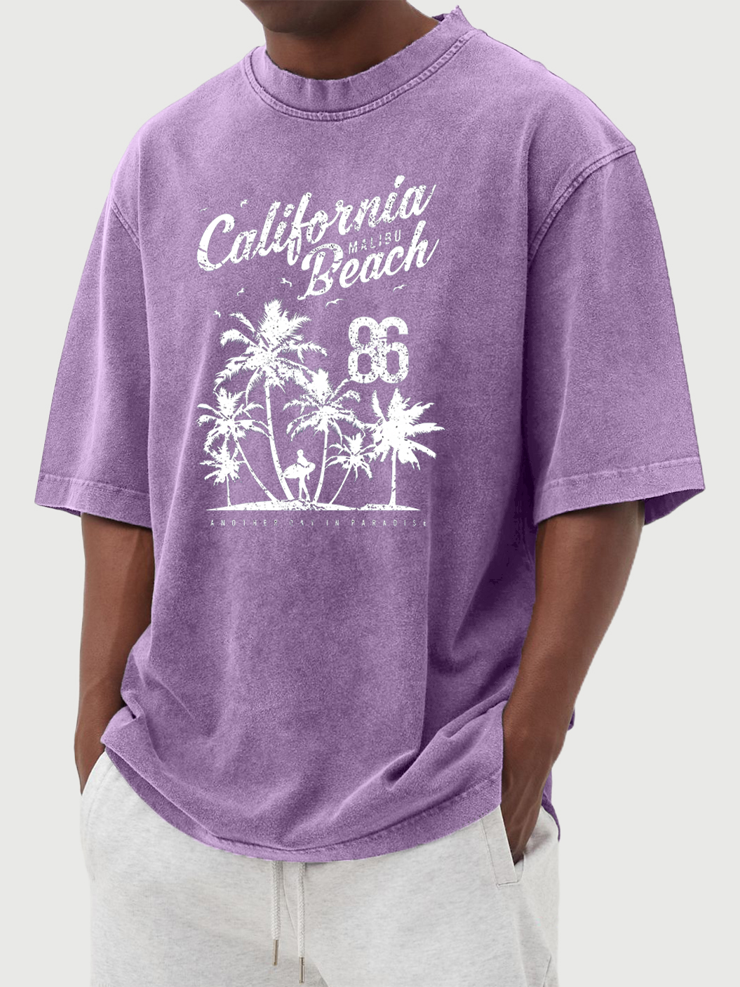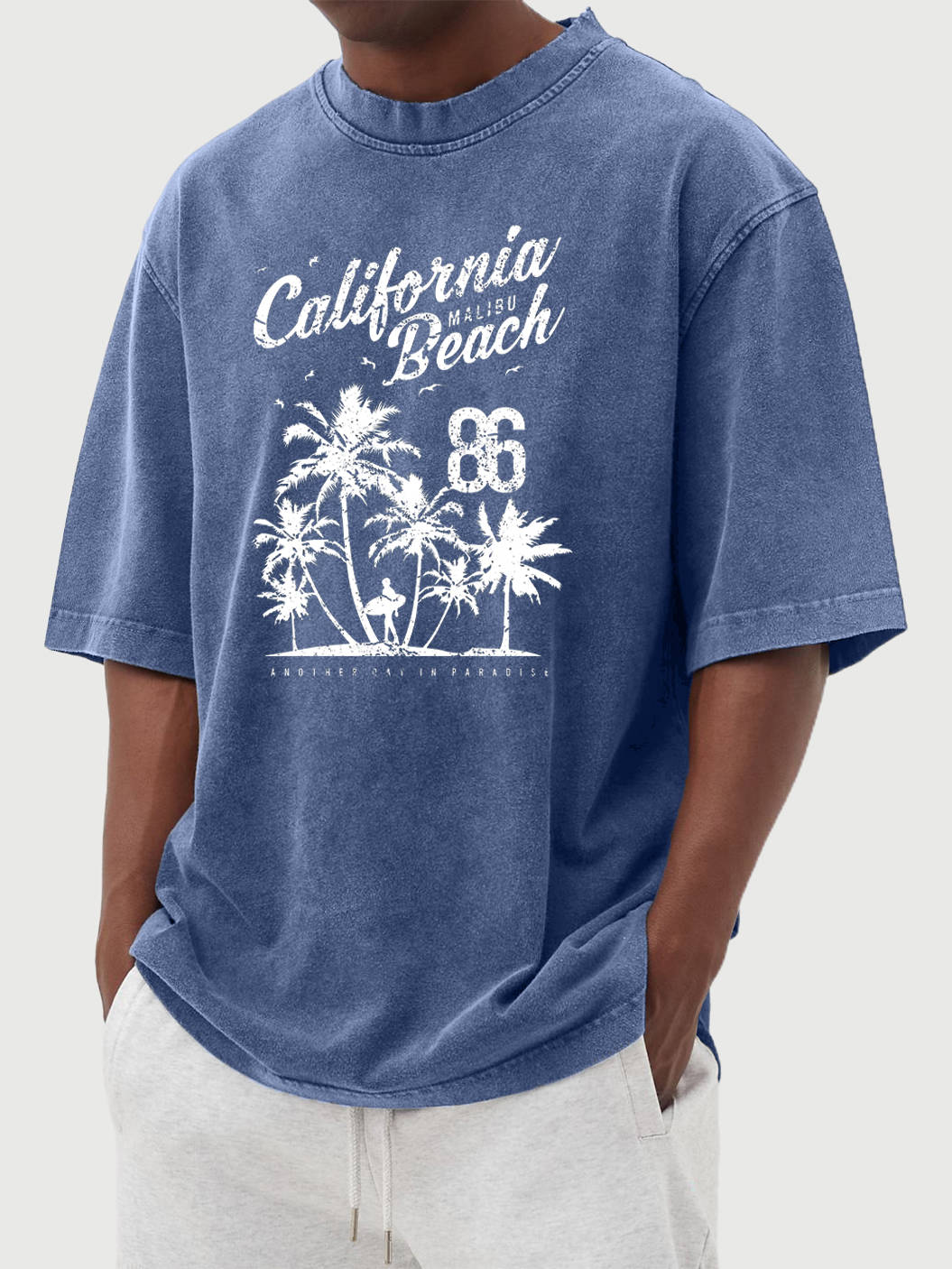 Men's Hawaiian Print 100% Cotton Washed Distressed Short-sleeved T-shirt