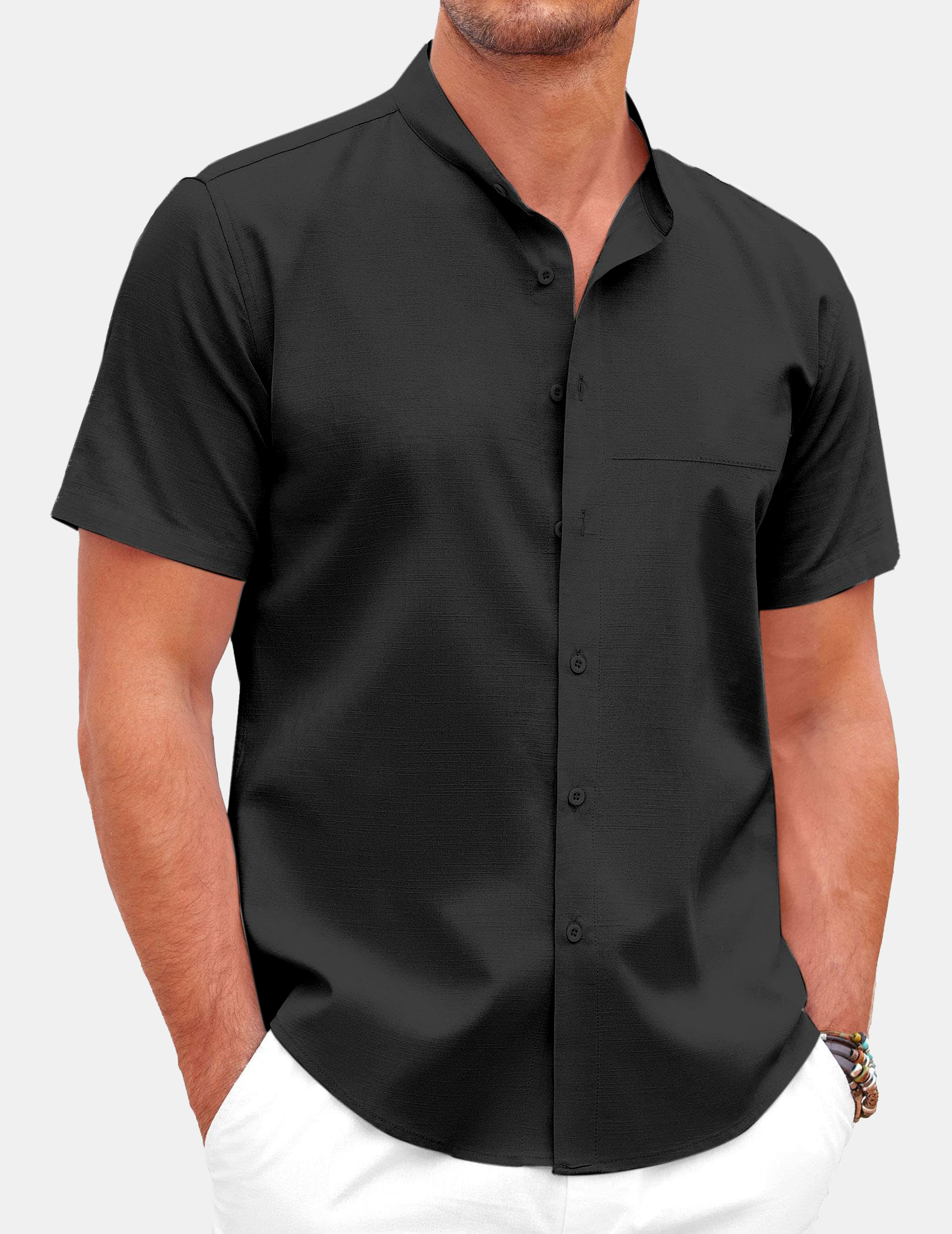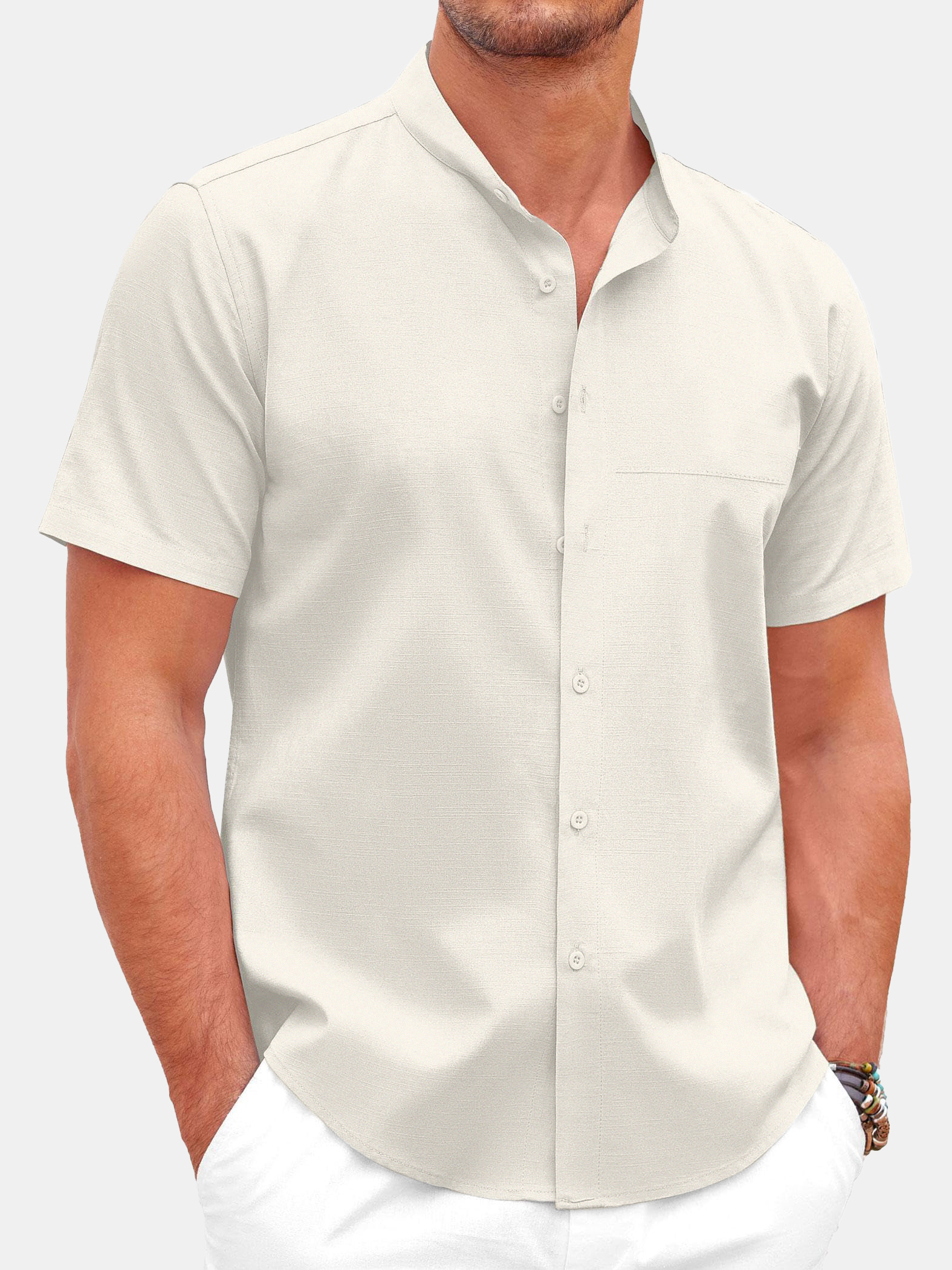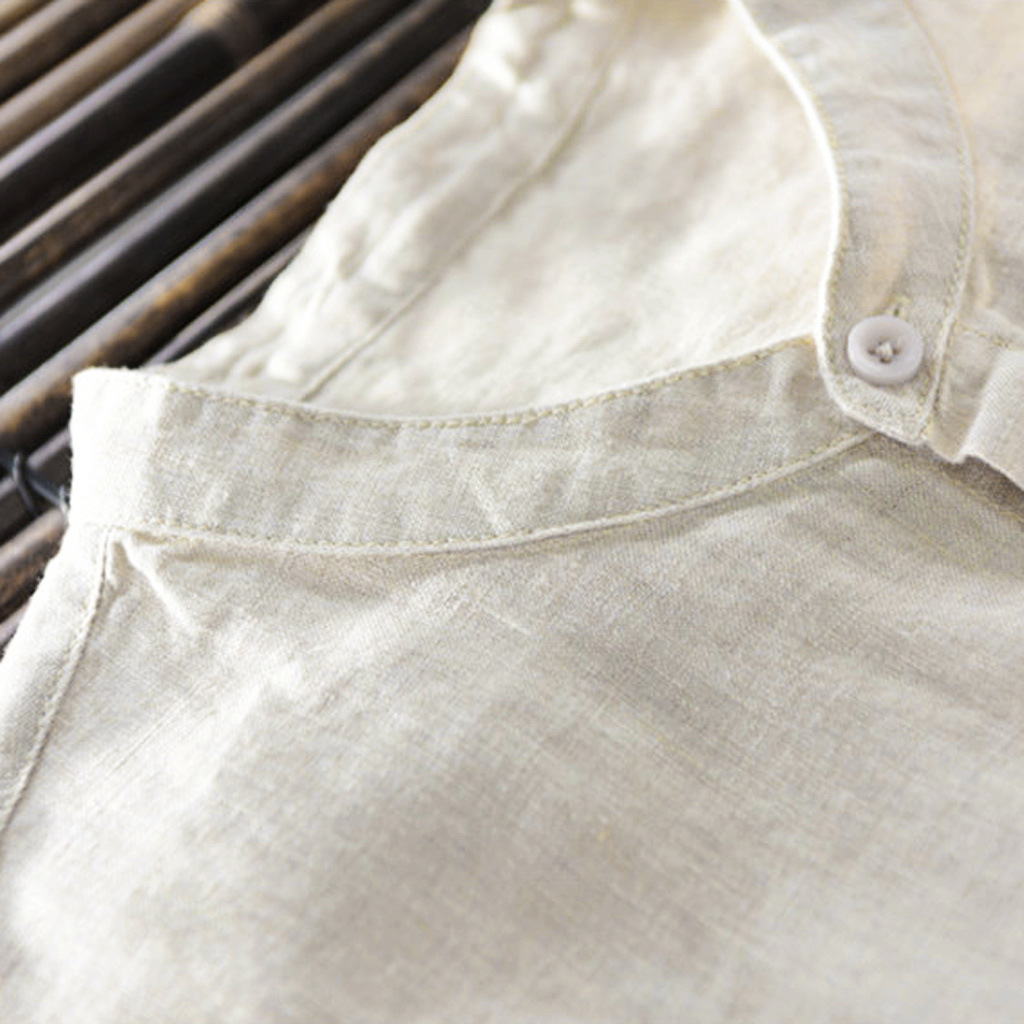 Men's Loose Breathable Cotton And Linen Stand Collar Short-sleeved Shirt
