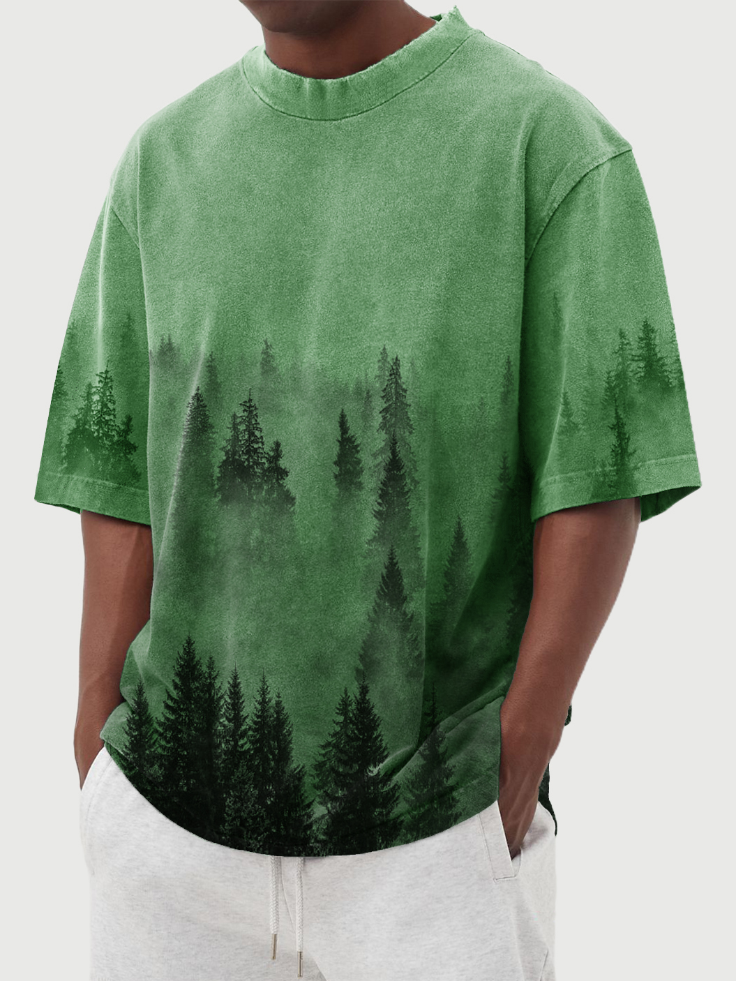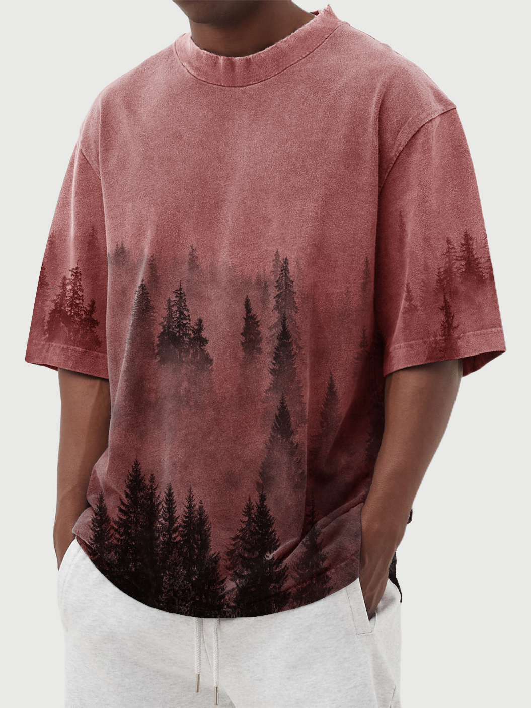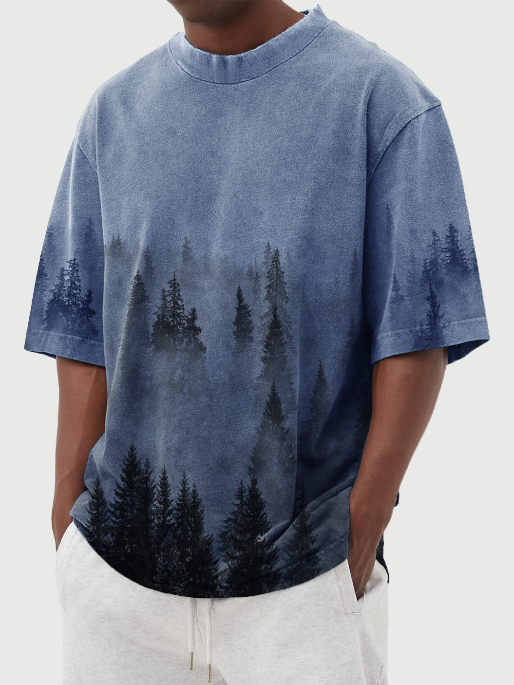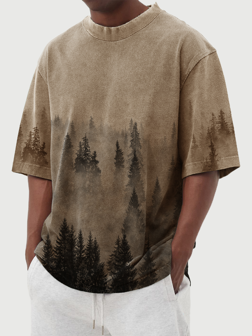 Men's Retro Landscape Print Round Neck Short Sleeve T-Shirt