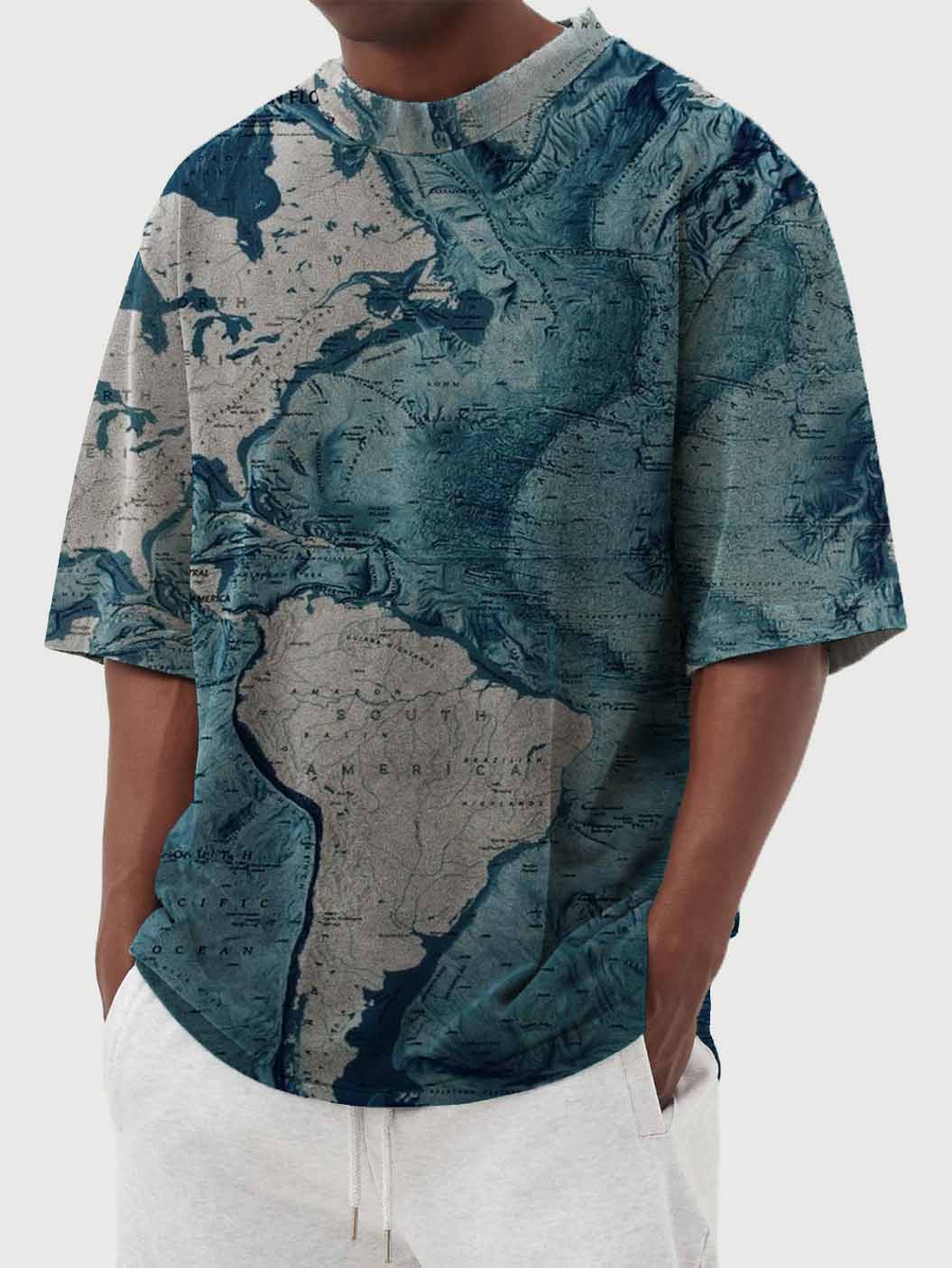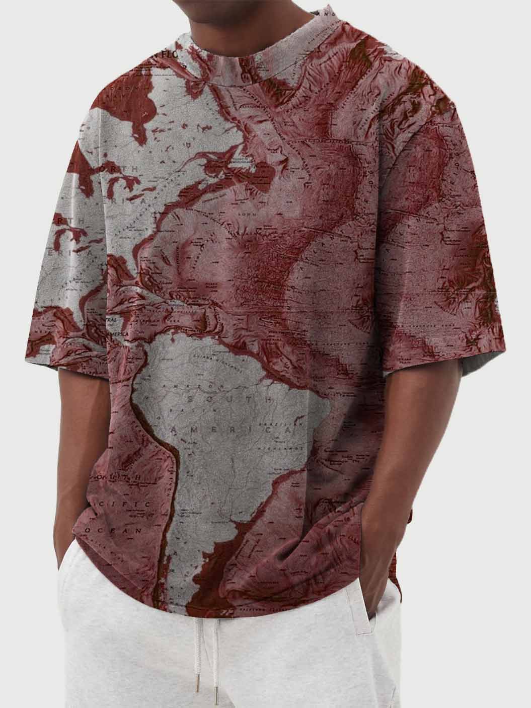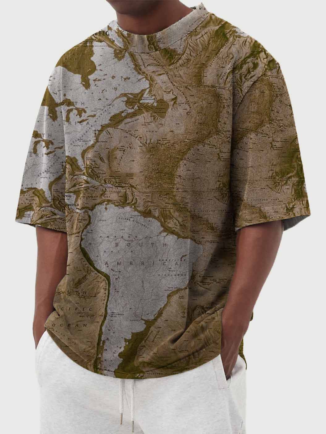 Men's Retro Map Print Round Neck Short Sleeve T-Shirt