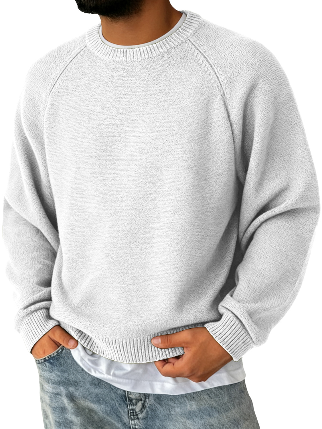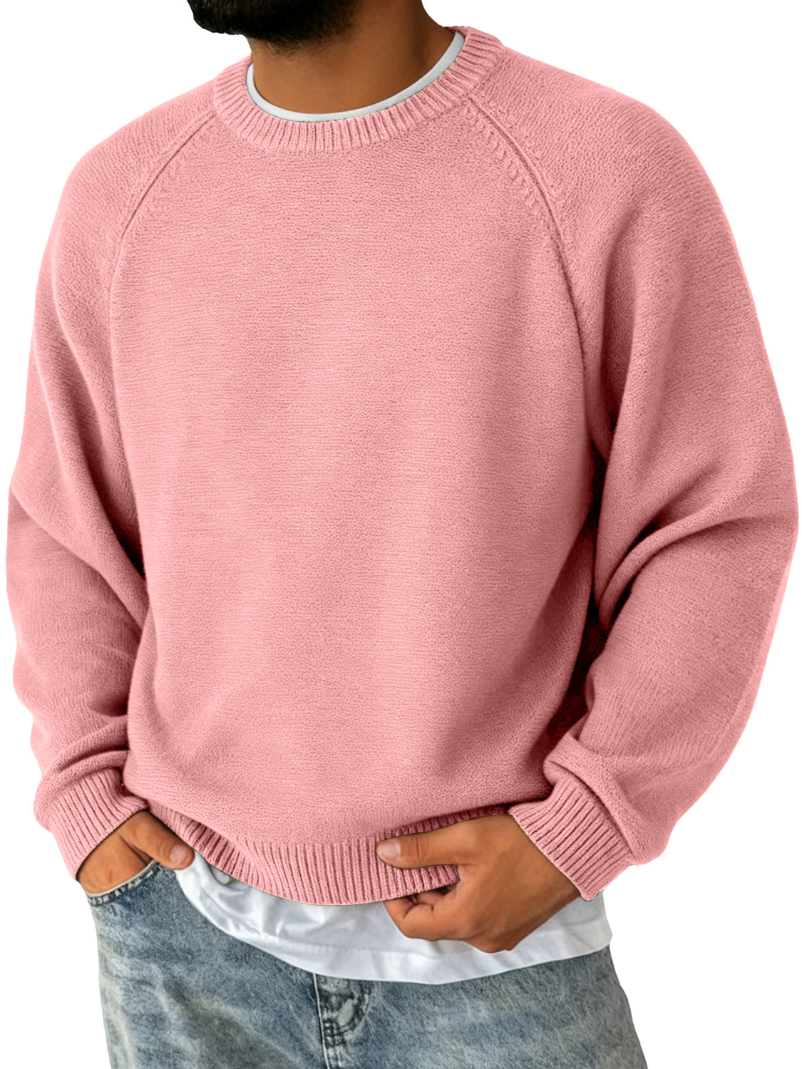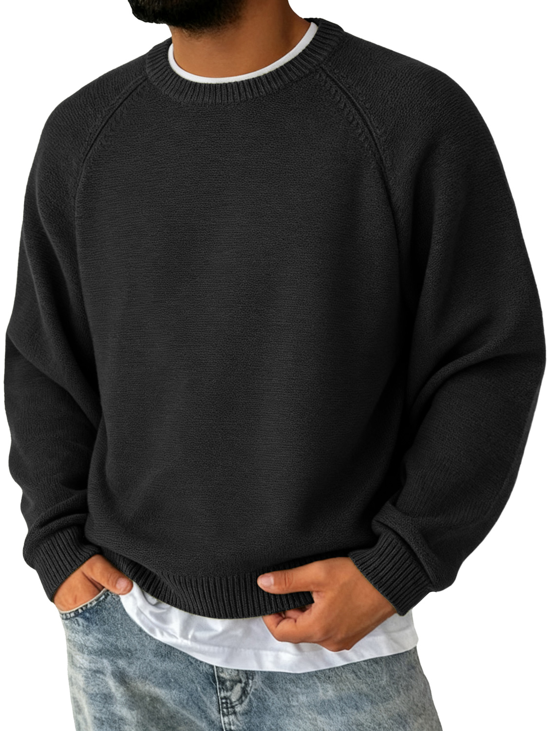 Men's Simple Round Neck Raglan Sleeve Casual Comfortable Sweater
