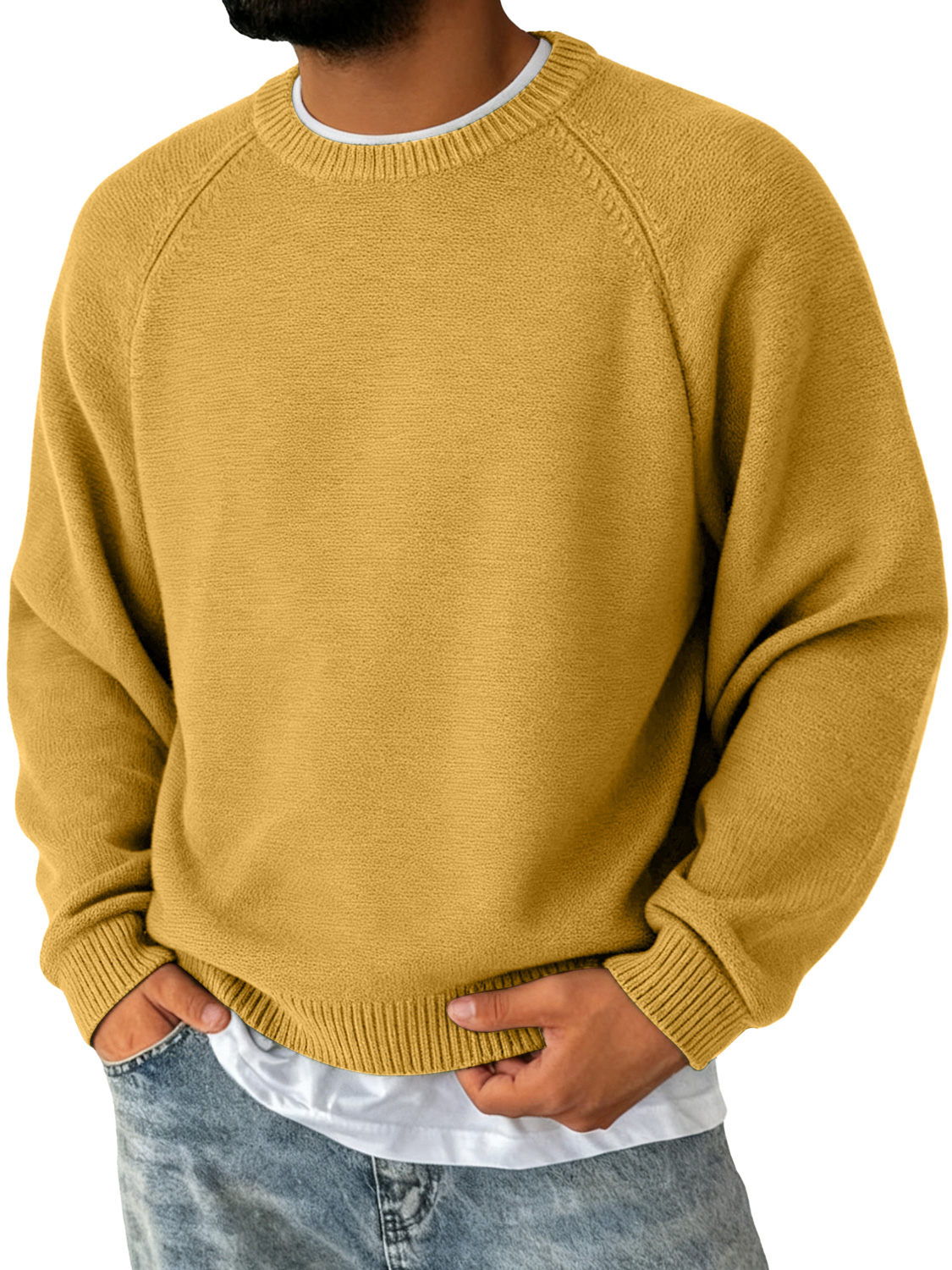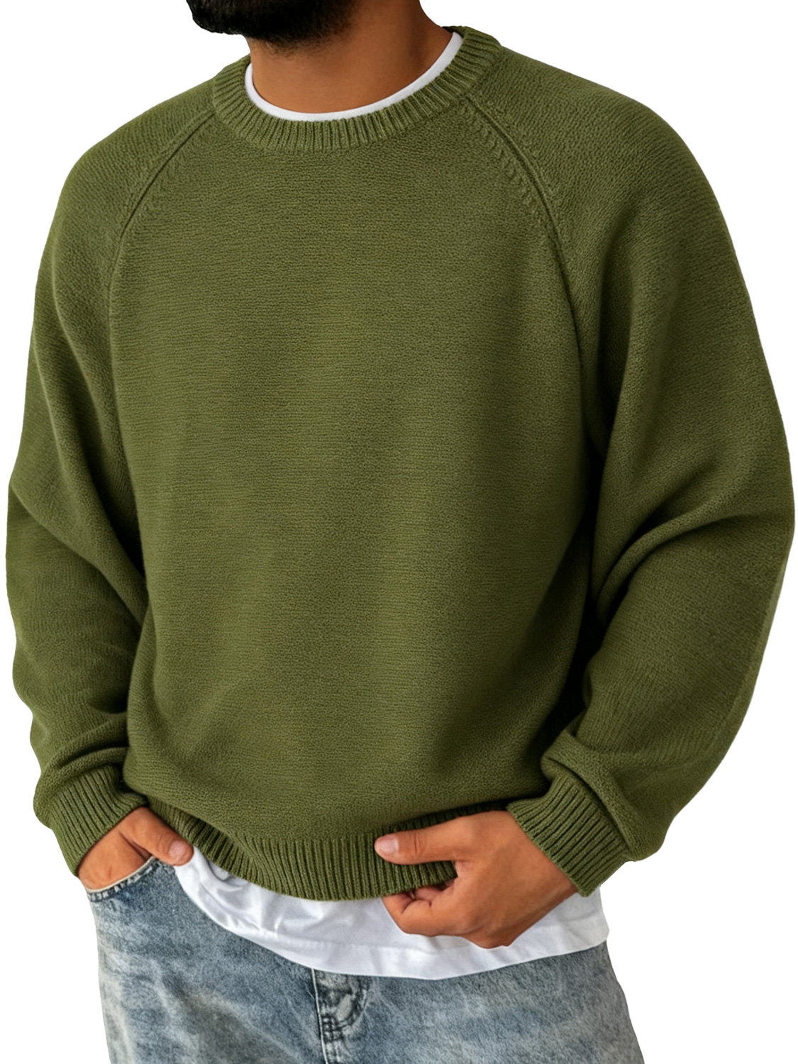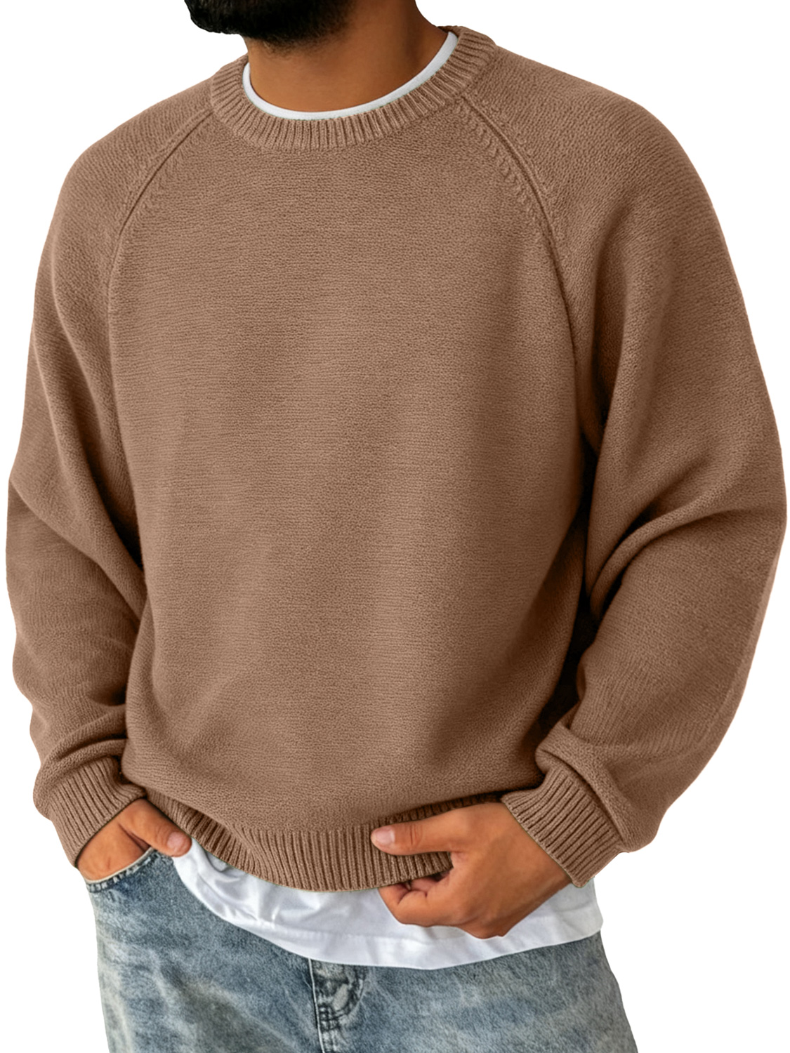 Men's Simple Round Neck Raglan Sleeve Casual Comfortable Sweater
