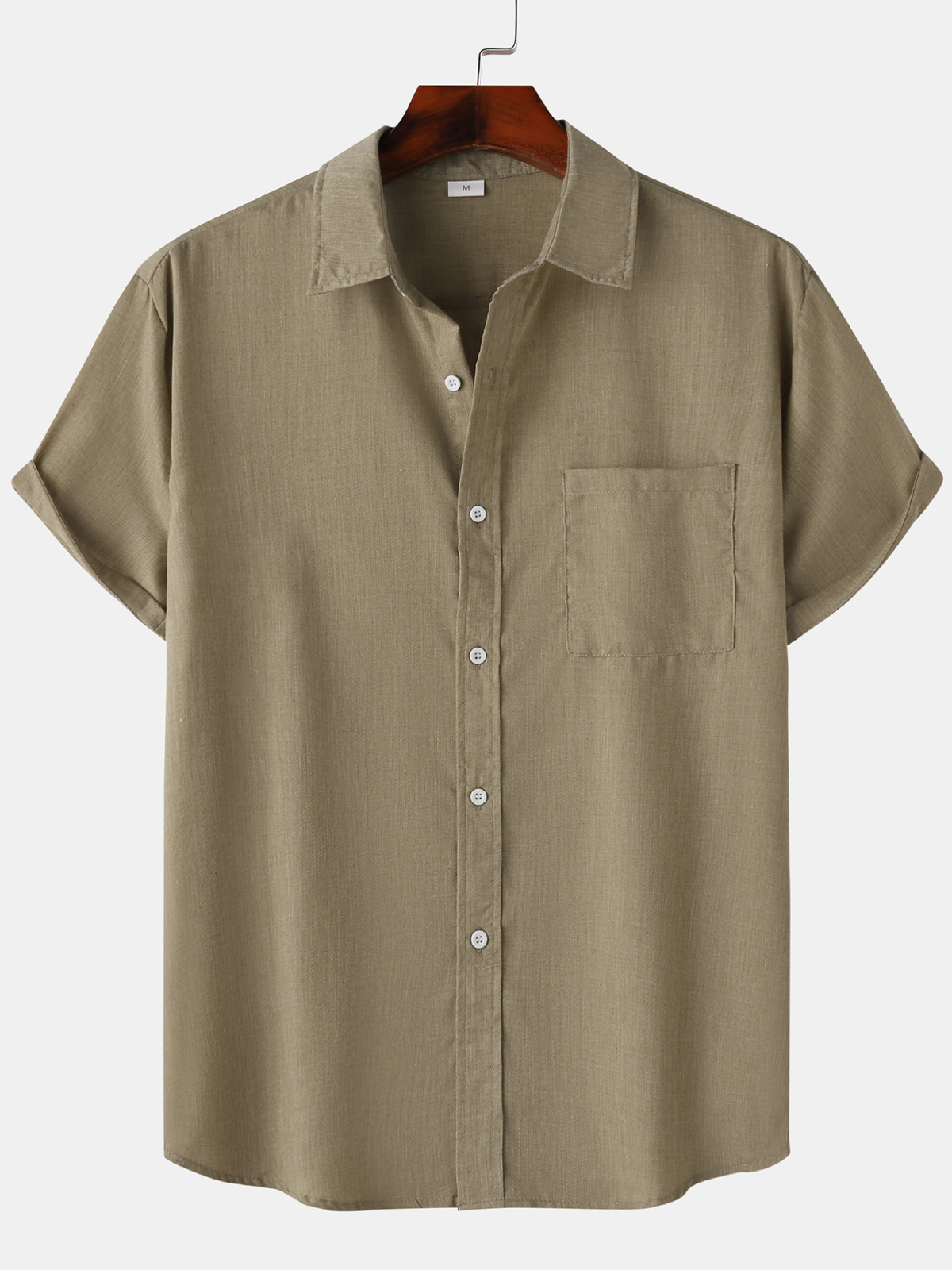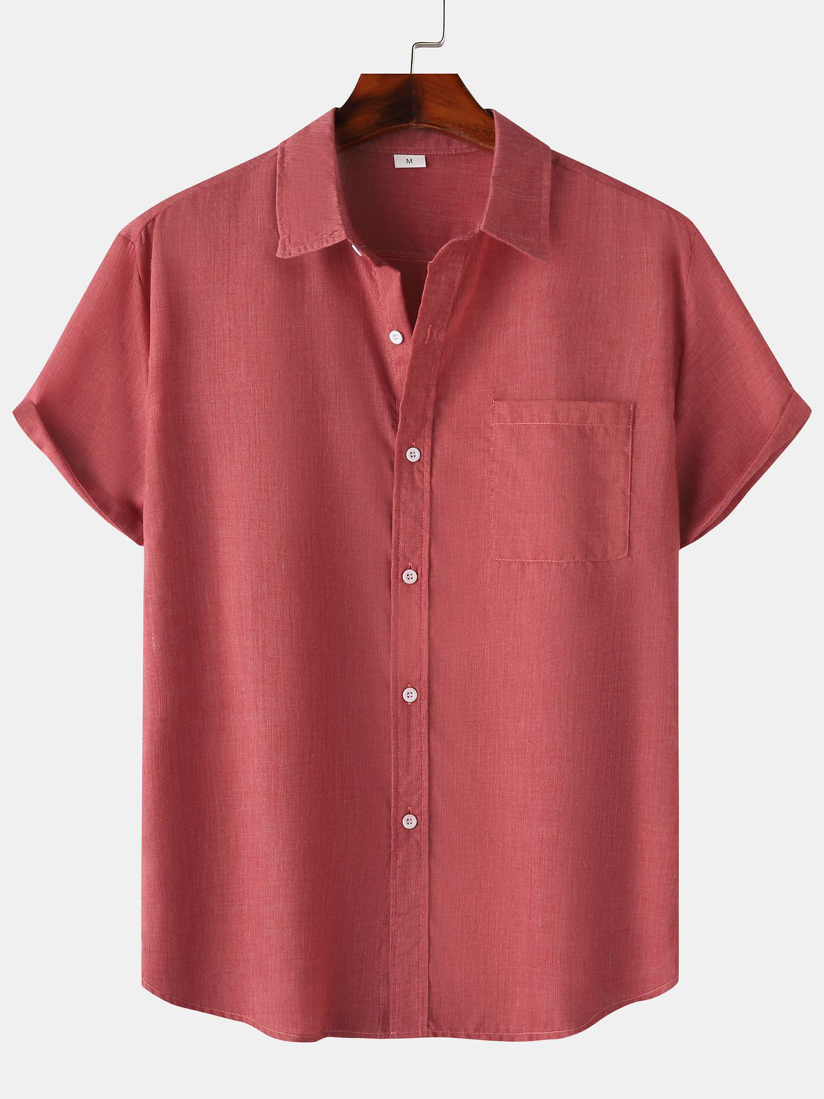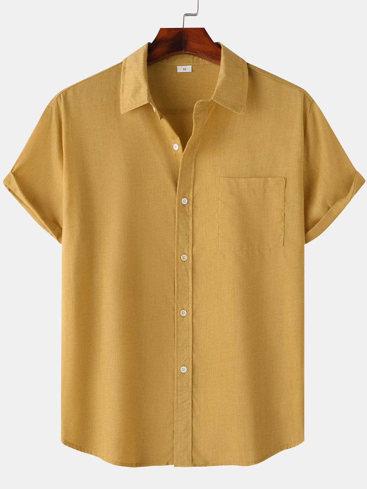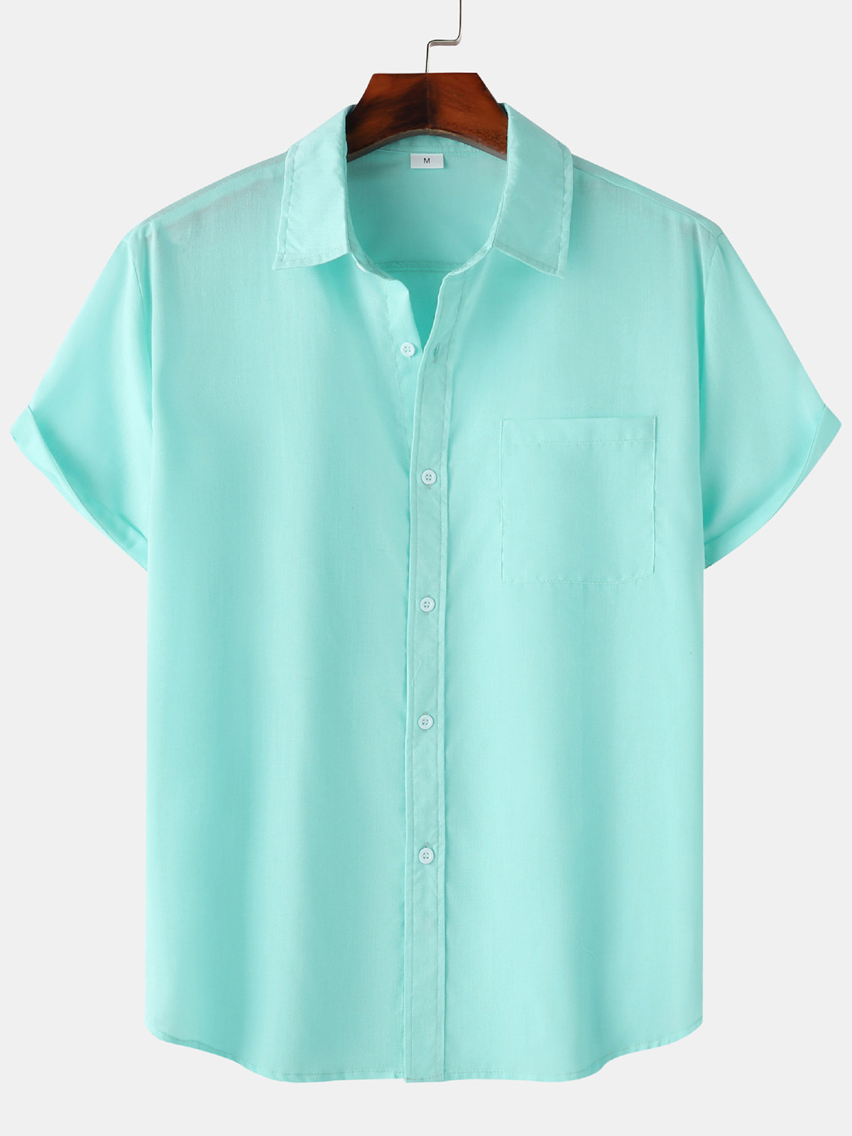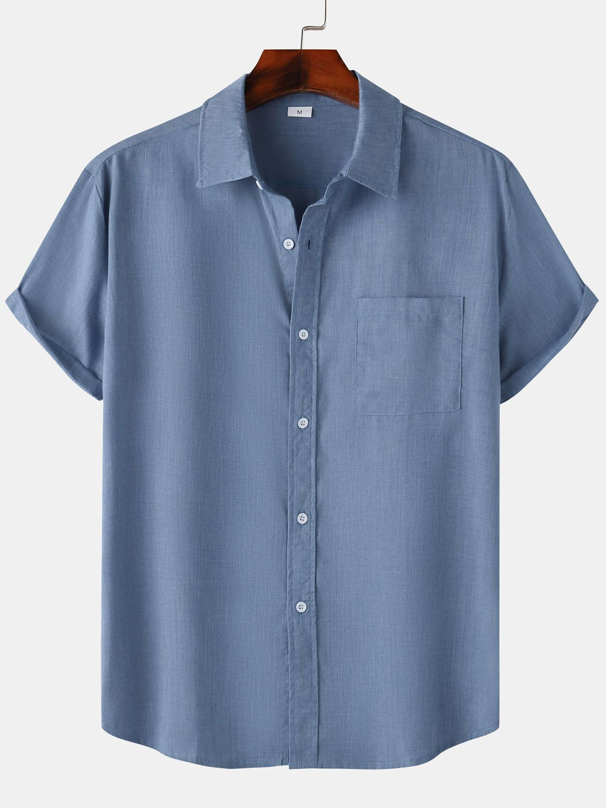 Men's Simple Solid Color Beach Comfortable Short-sleeved Shirt