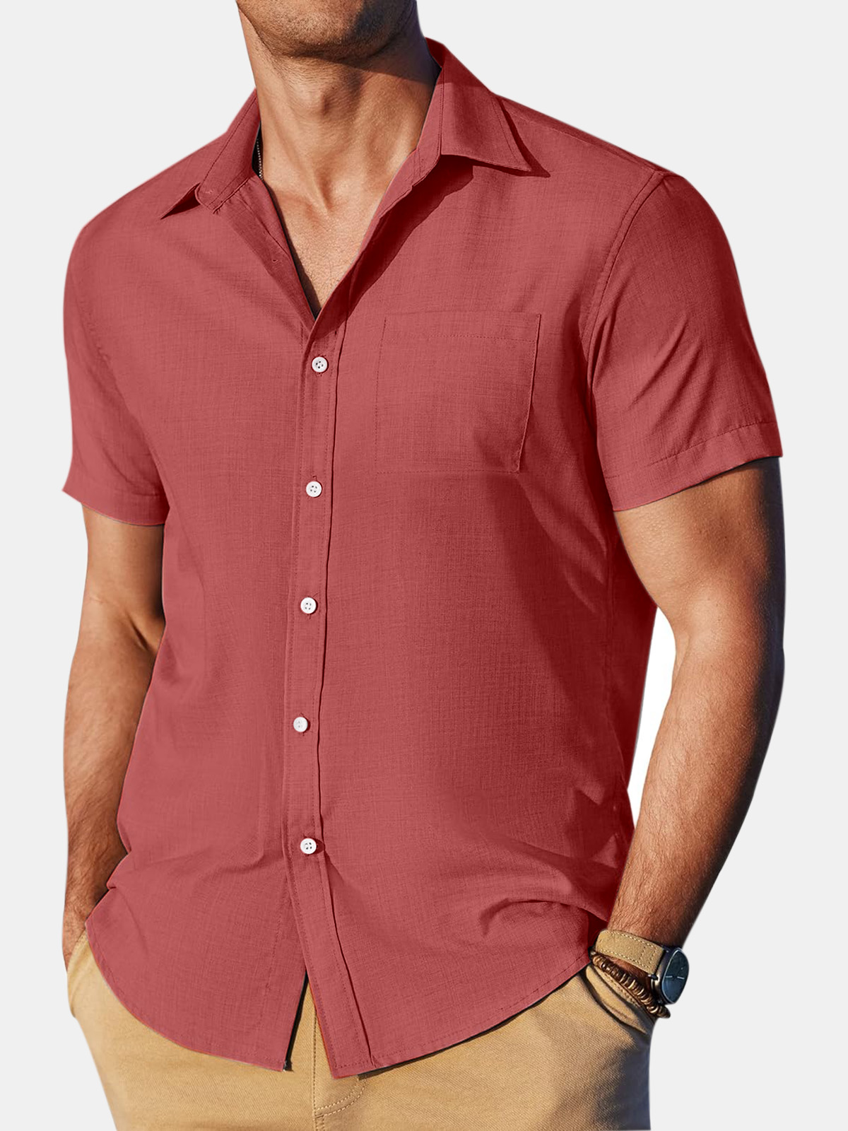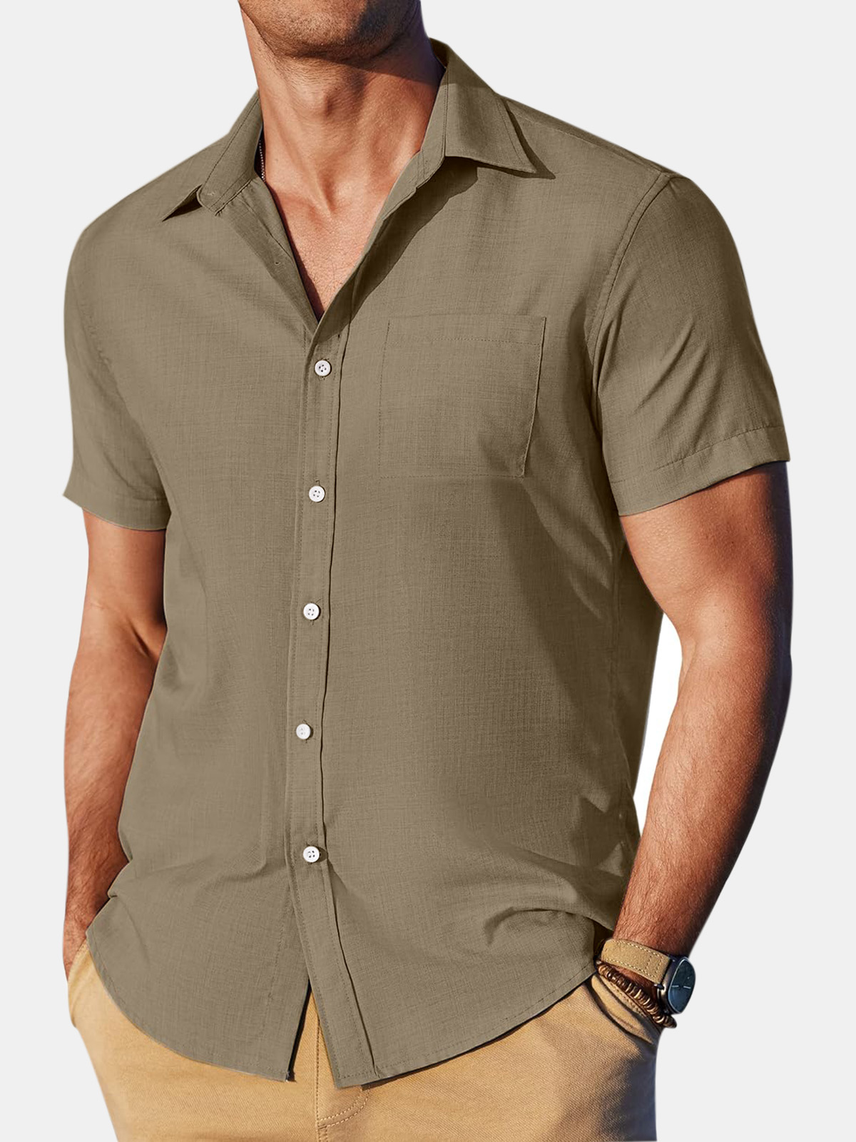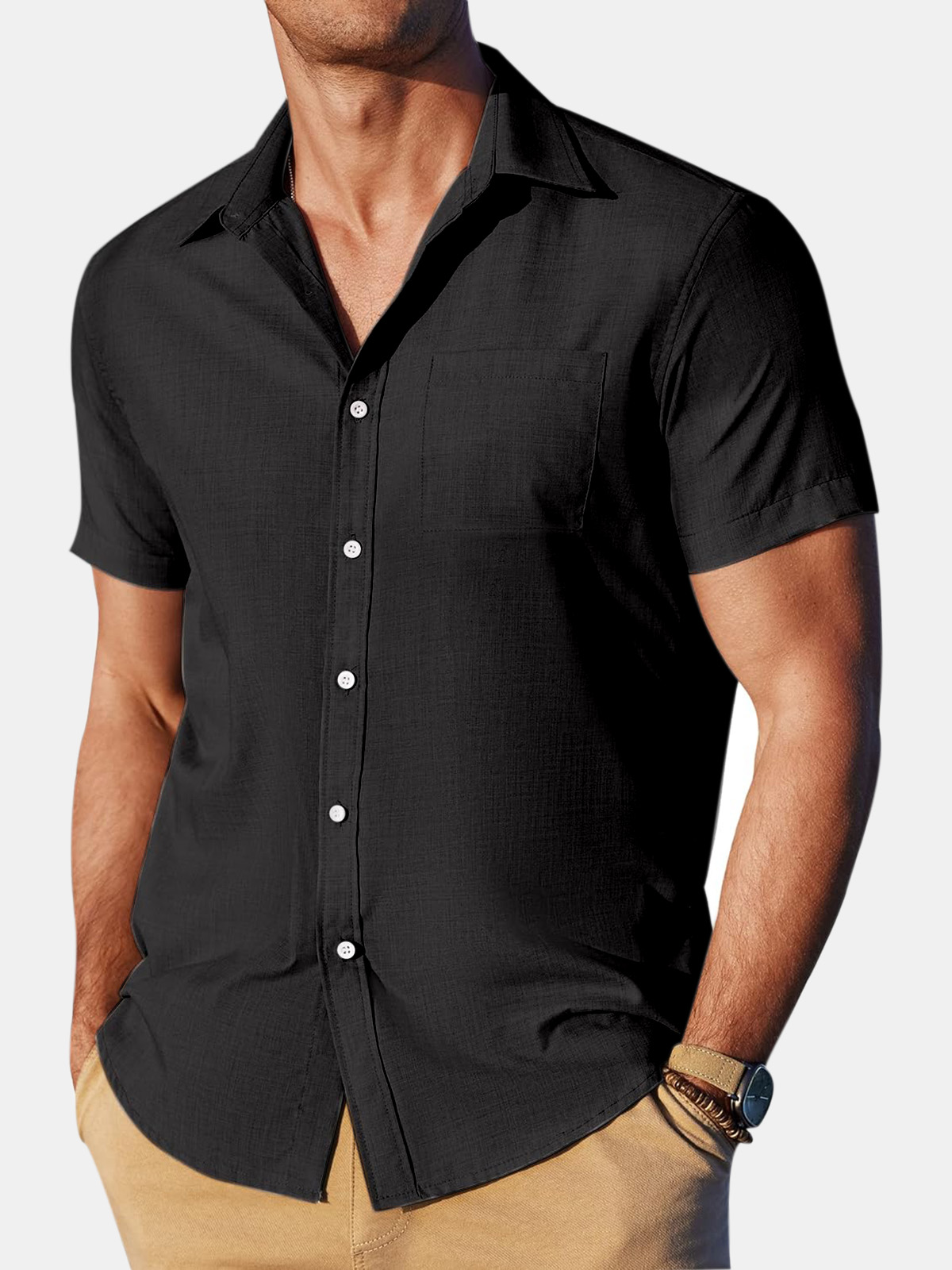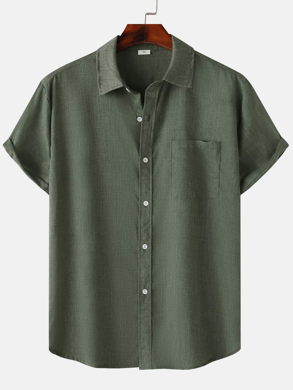 Men's Simple Solid Color Beach Comfortable Short-sleeved Shirt