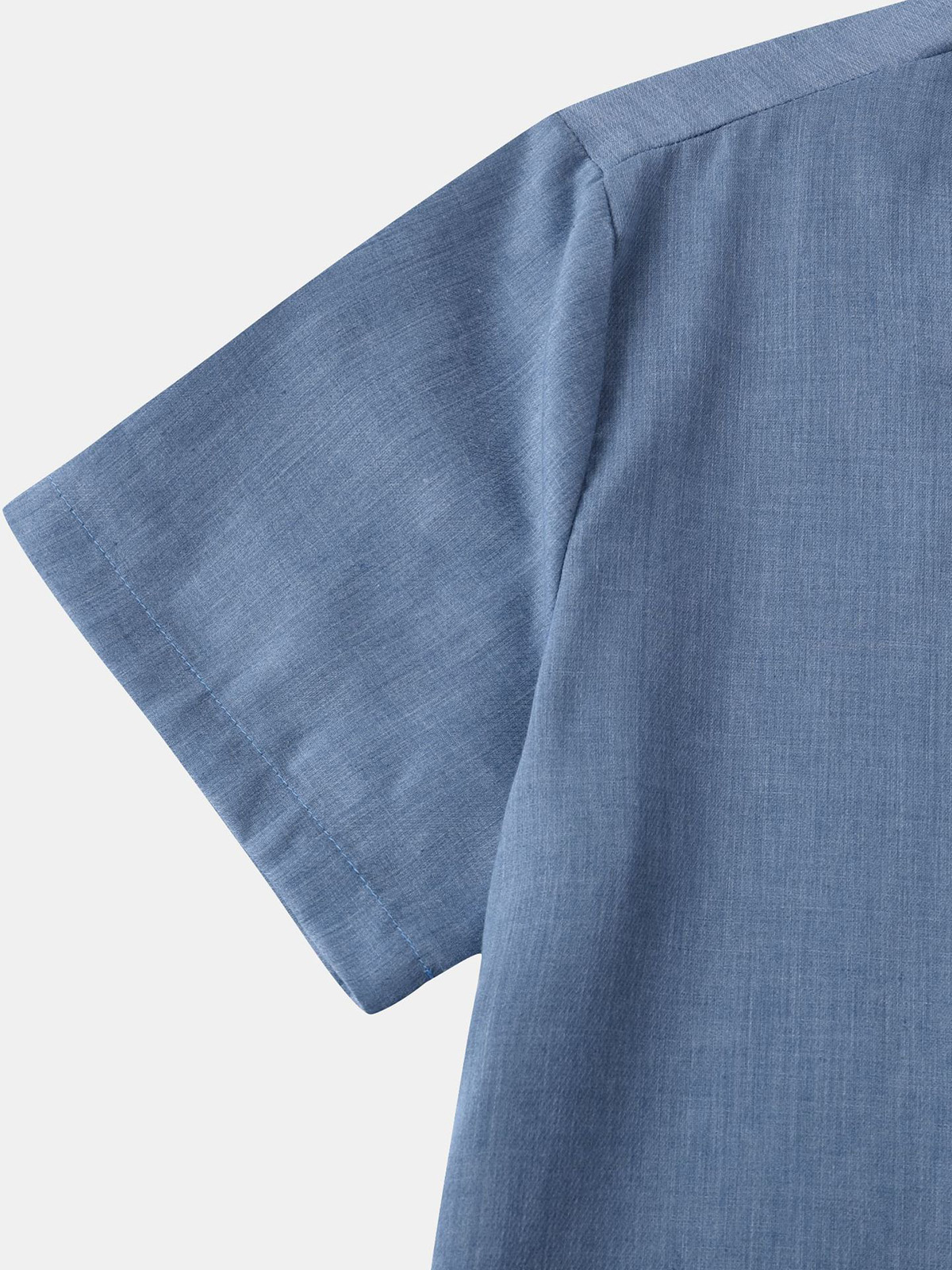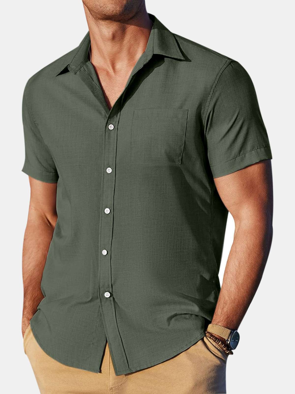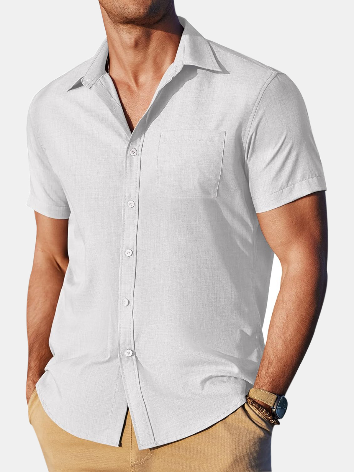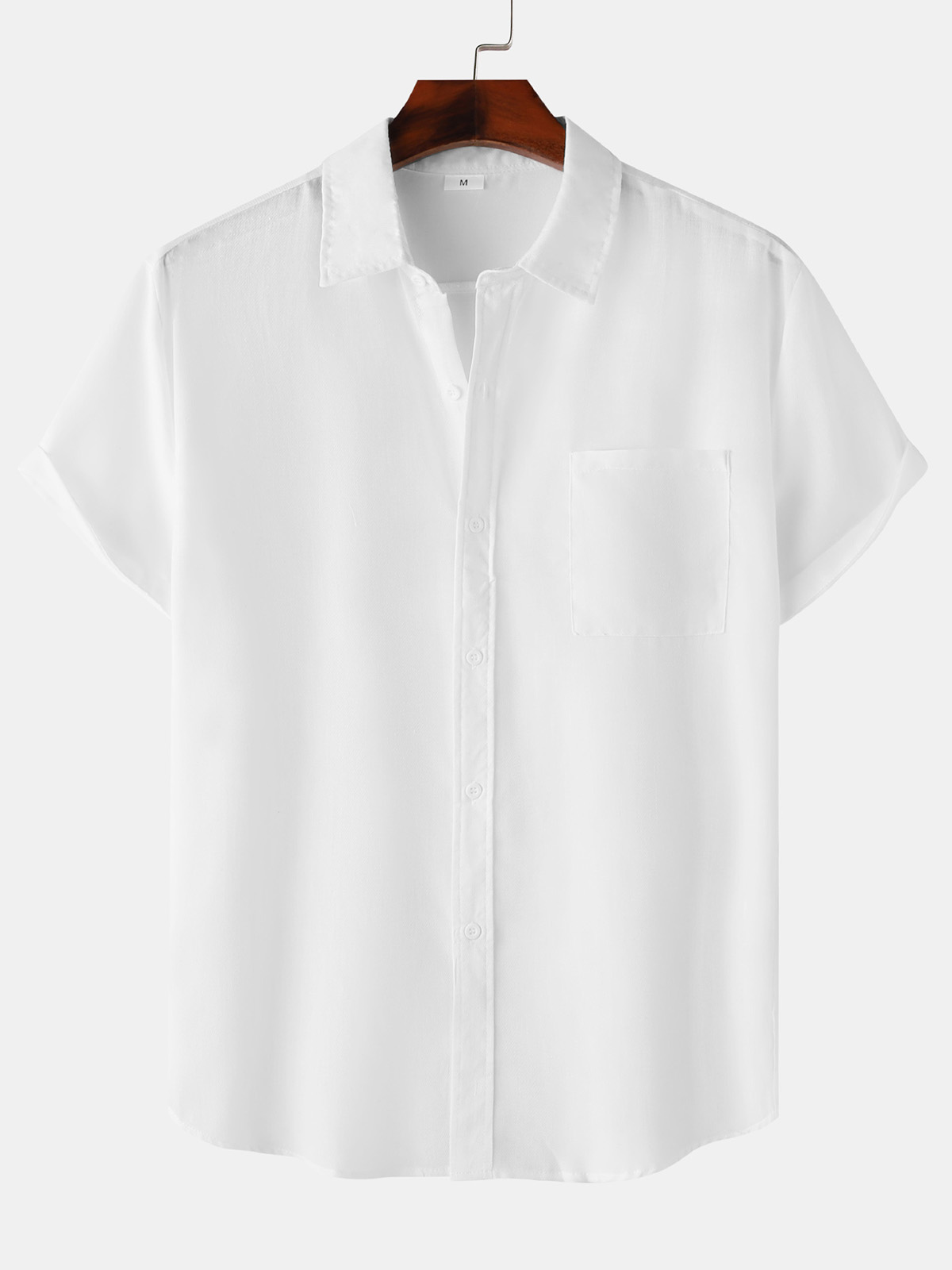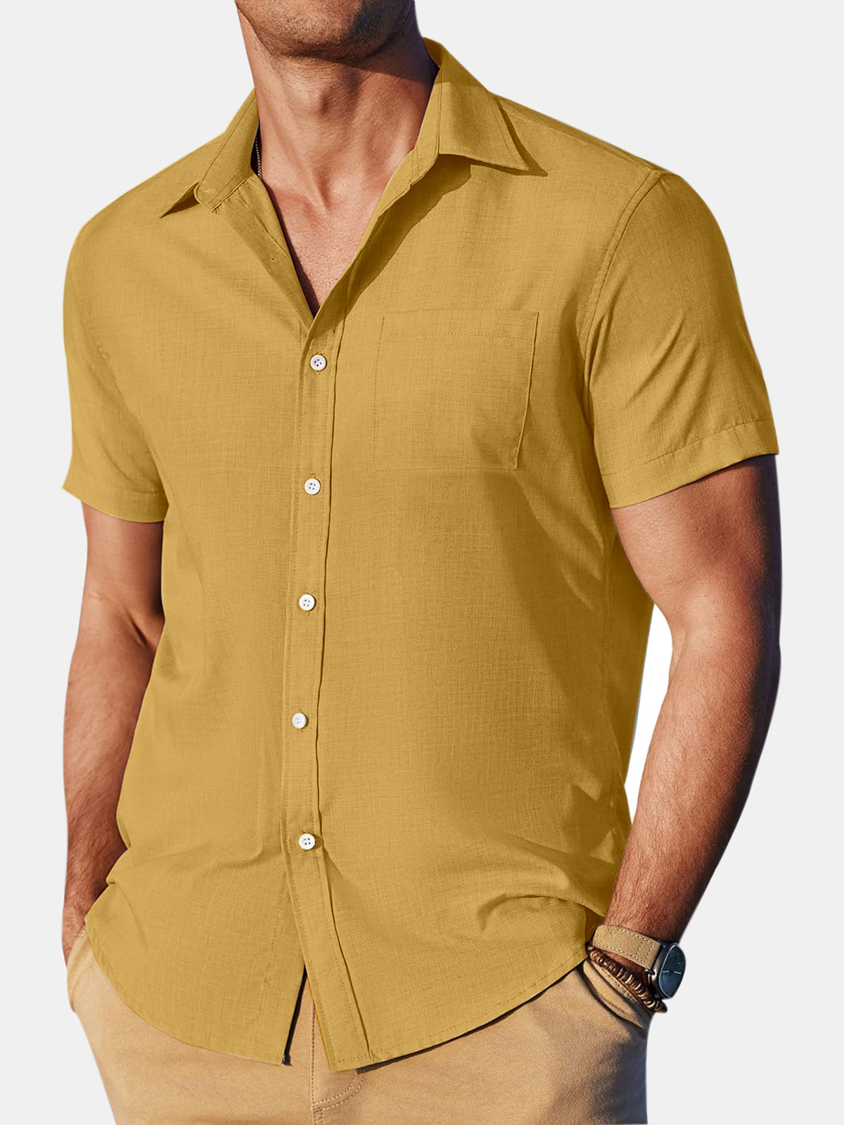 Men's Simple Solid Color Beach Comfortable Short-sleeved Shirt