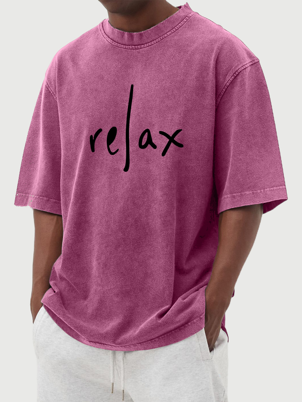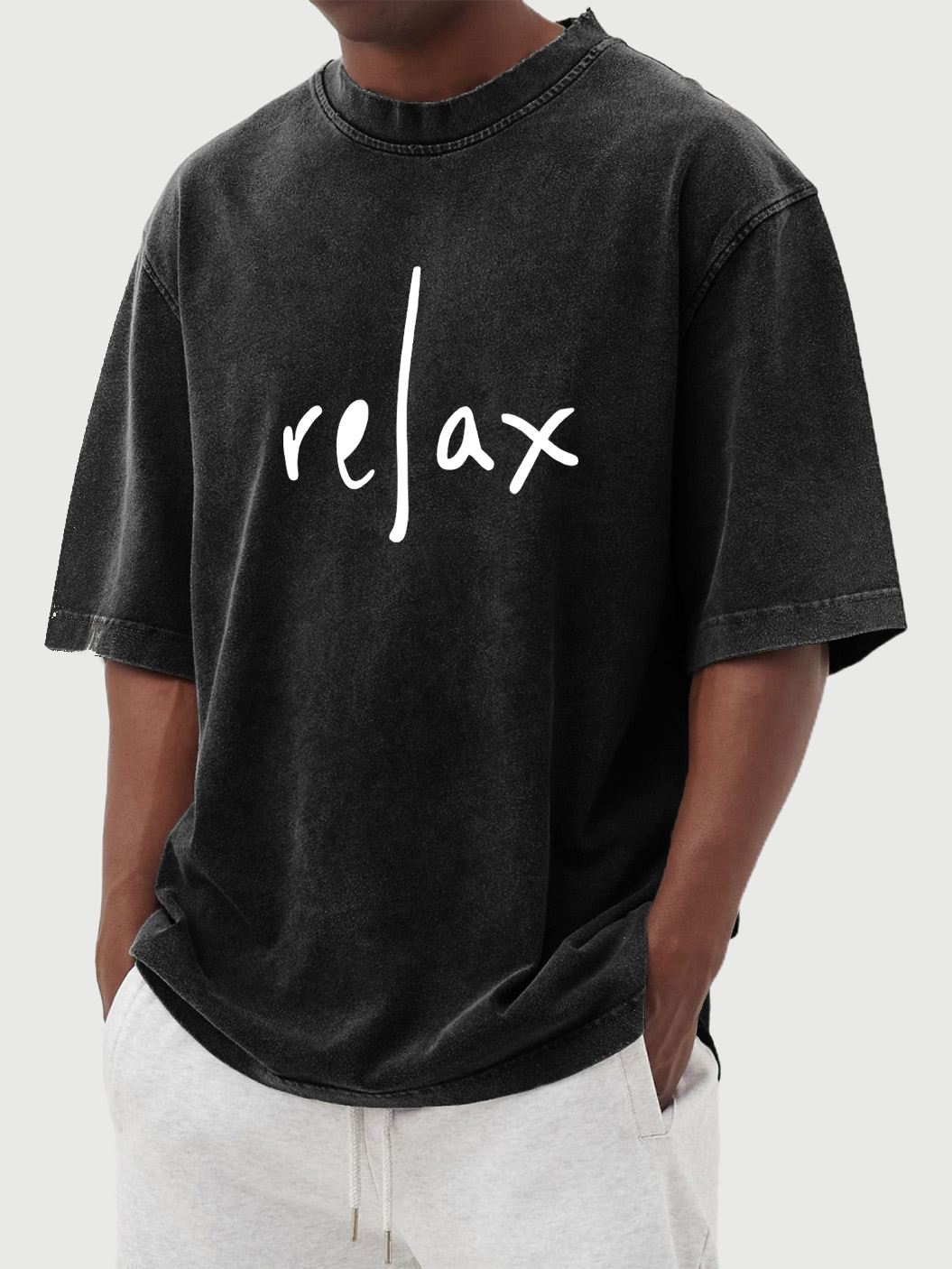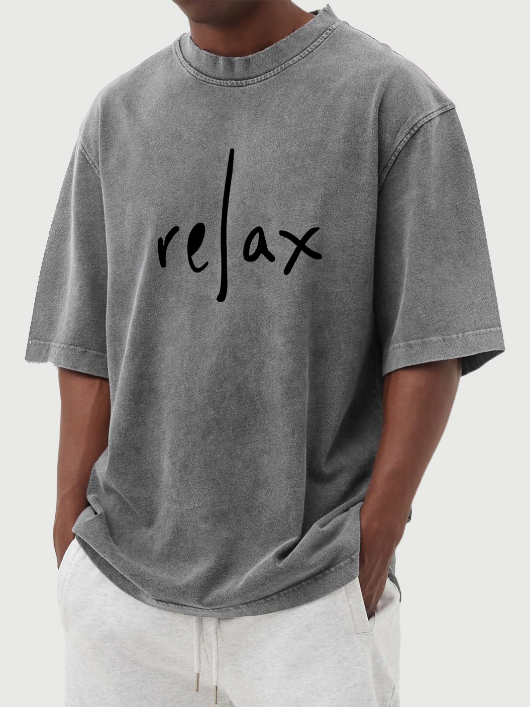 Men's Solid Color Daily Relax Printed Washed Short-sleeved T-shirt