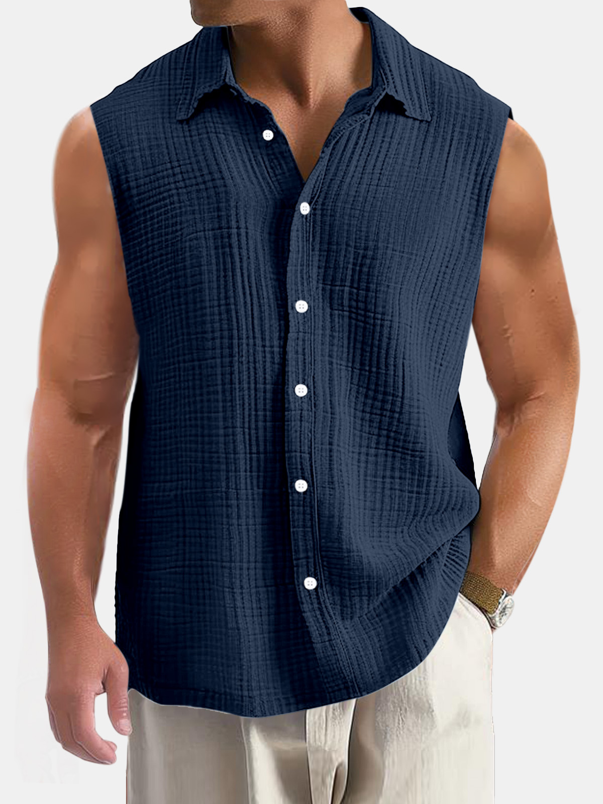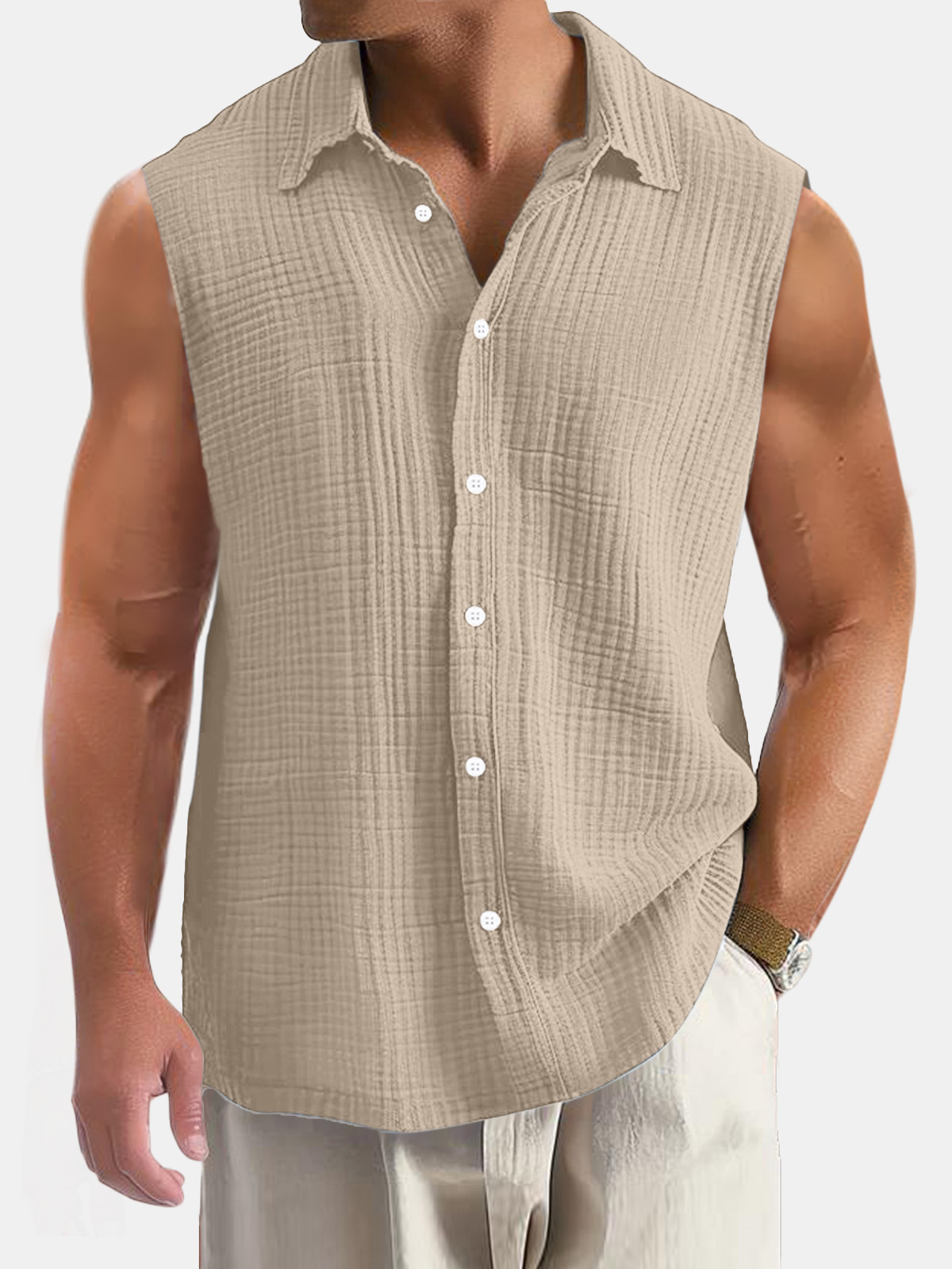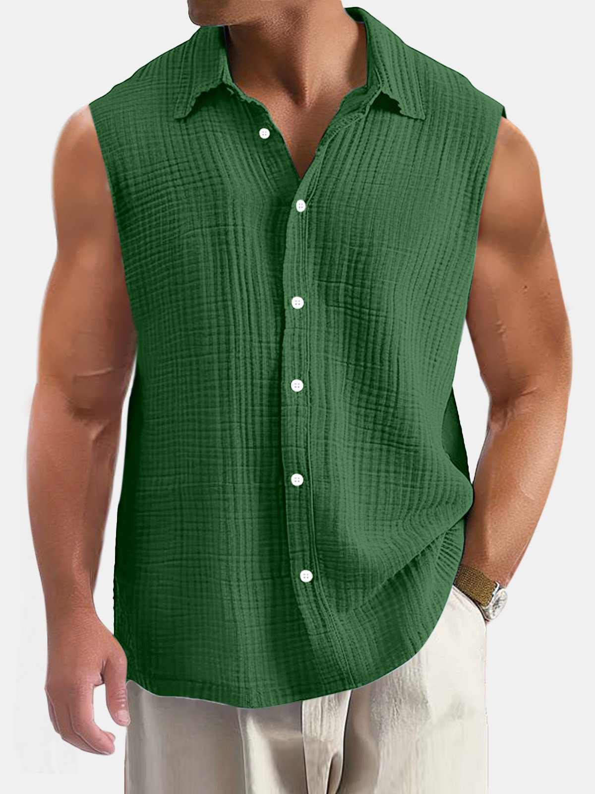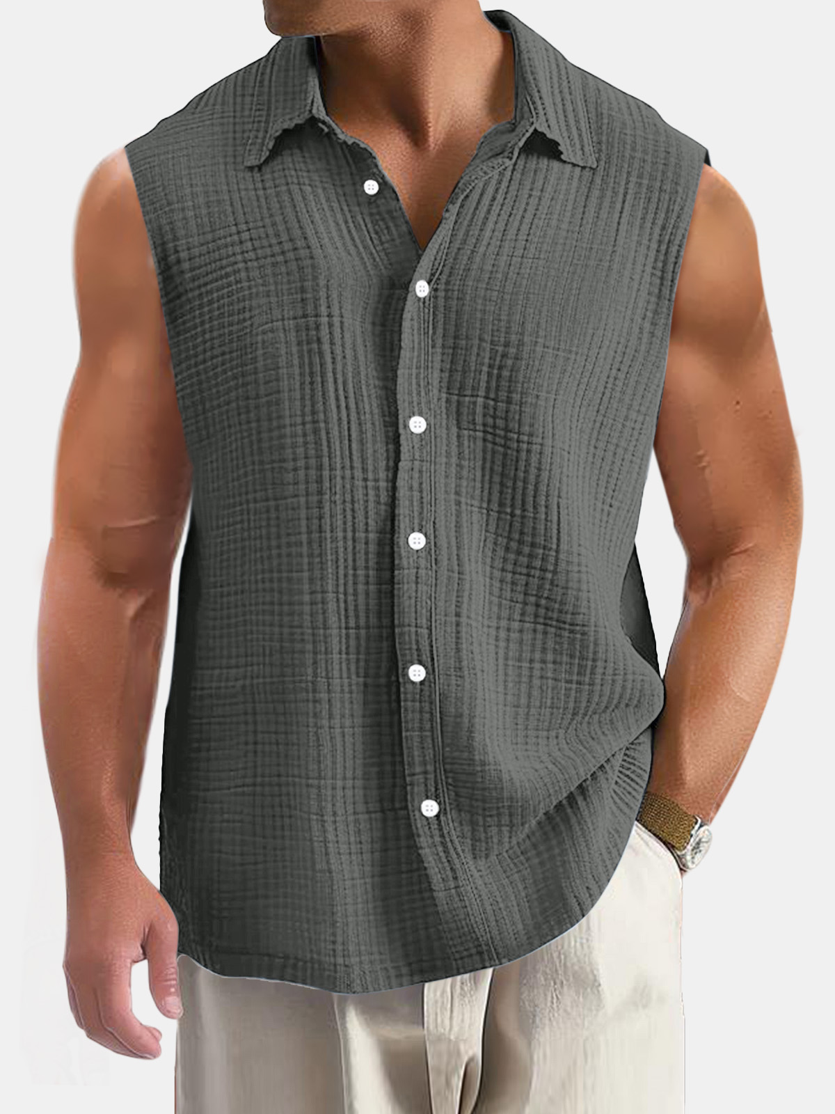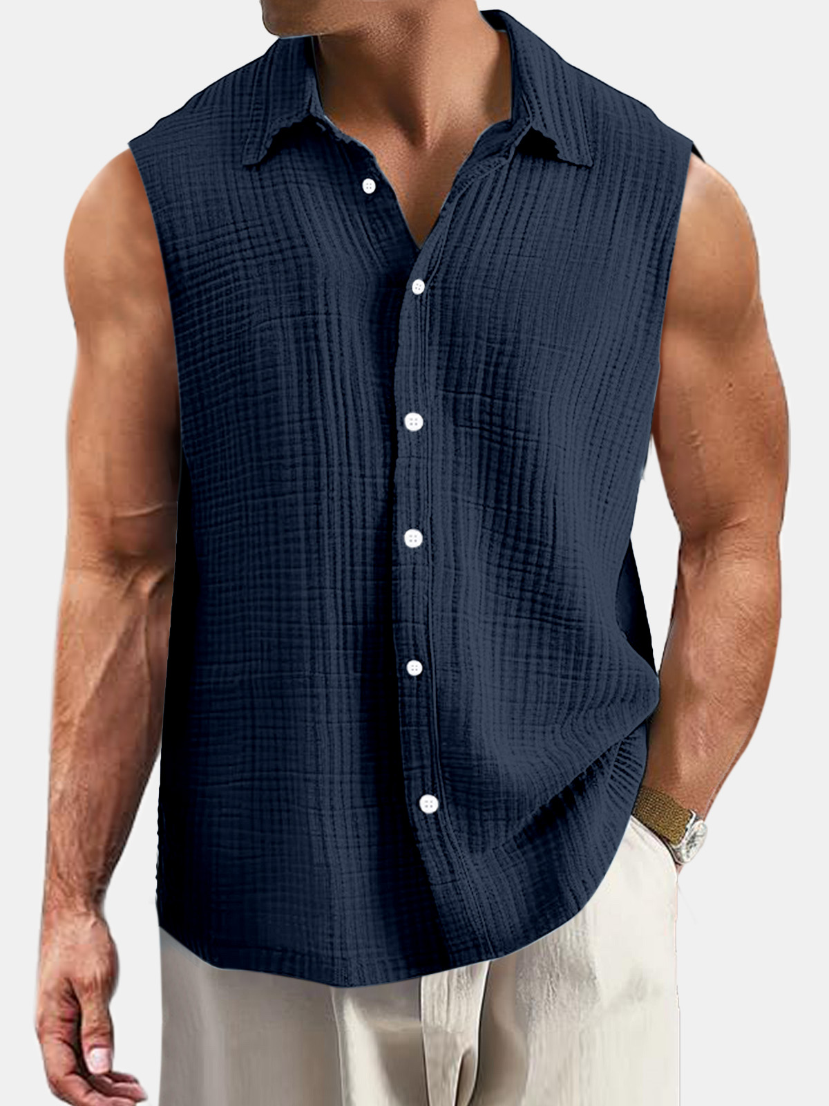 Men's Summer Casual Simple Puff Wrinkle Sleeveless Shirt