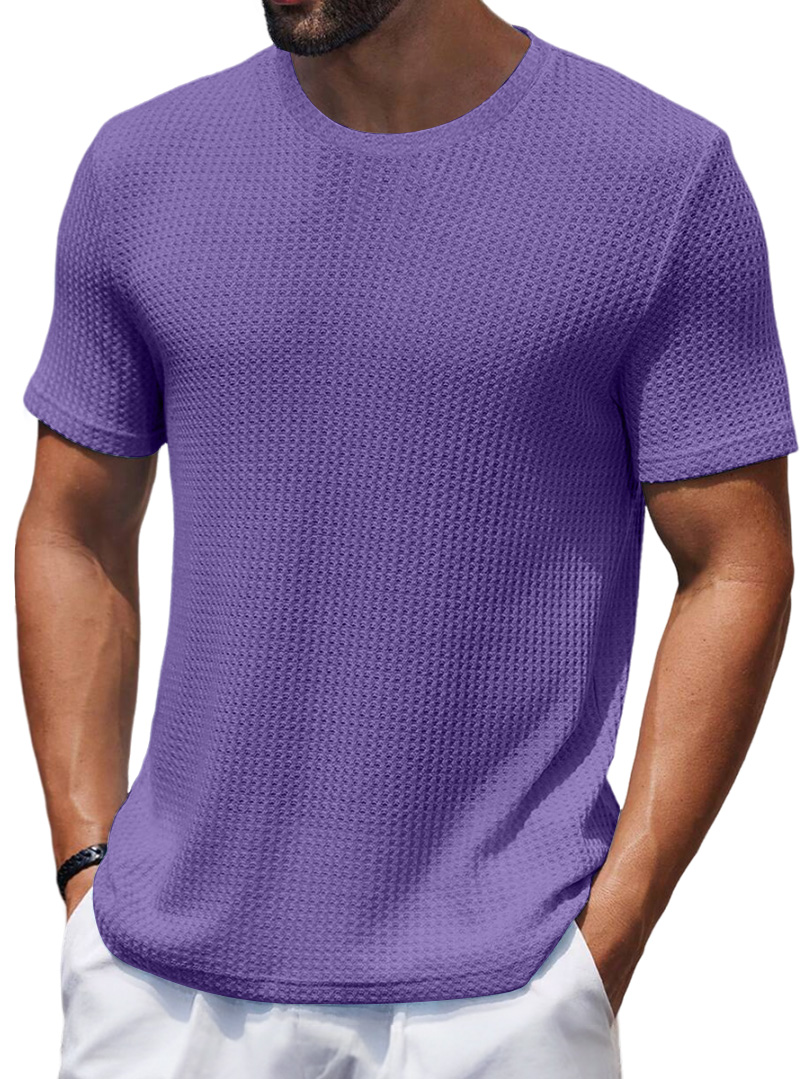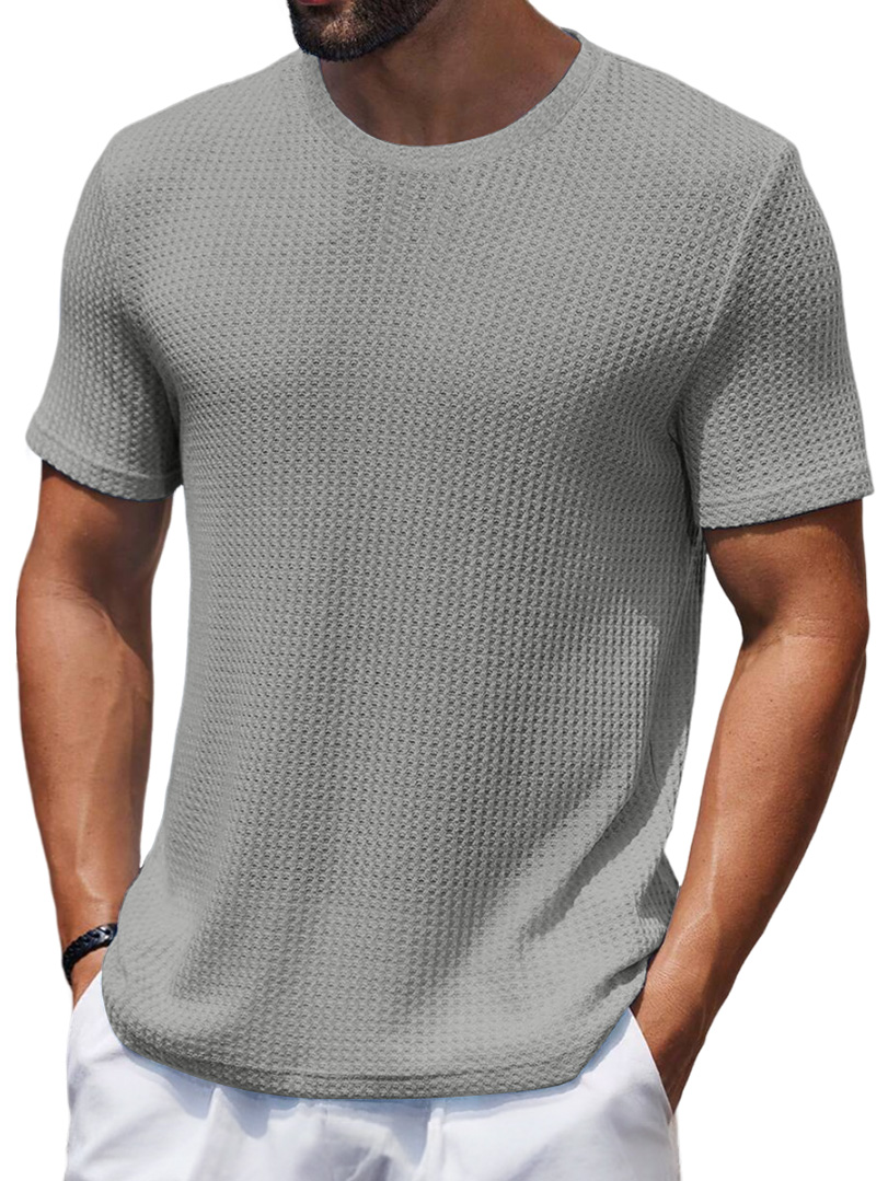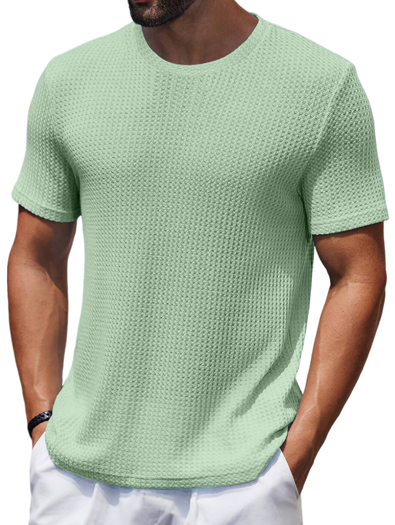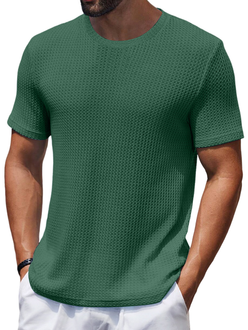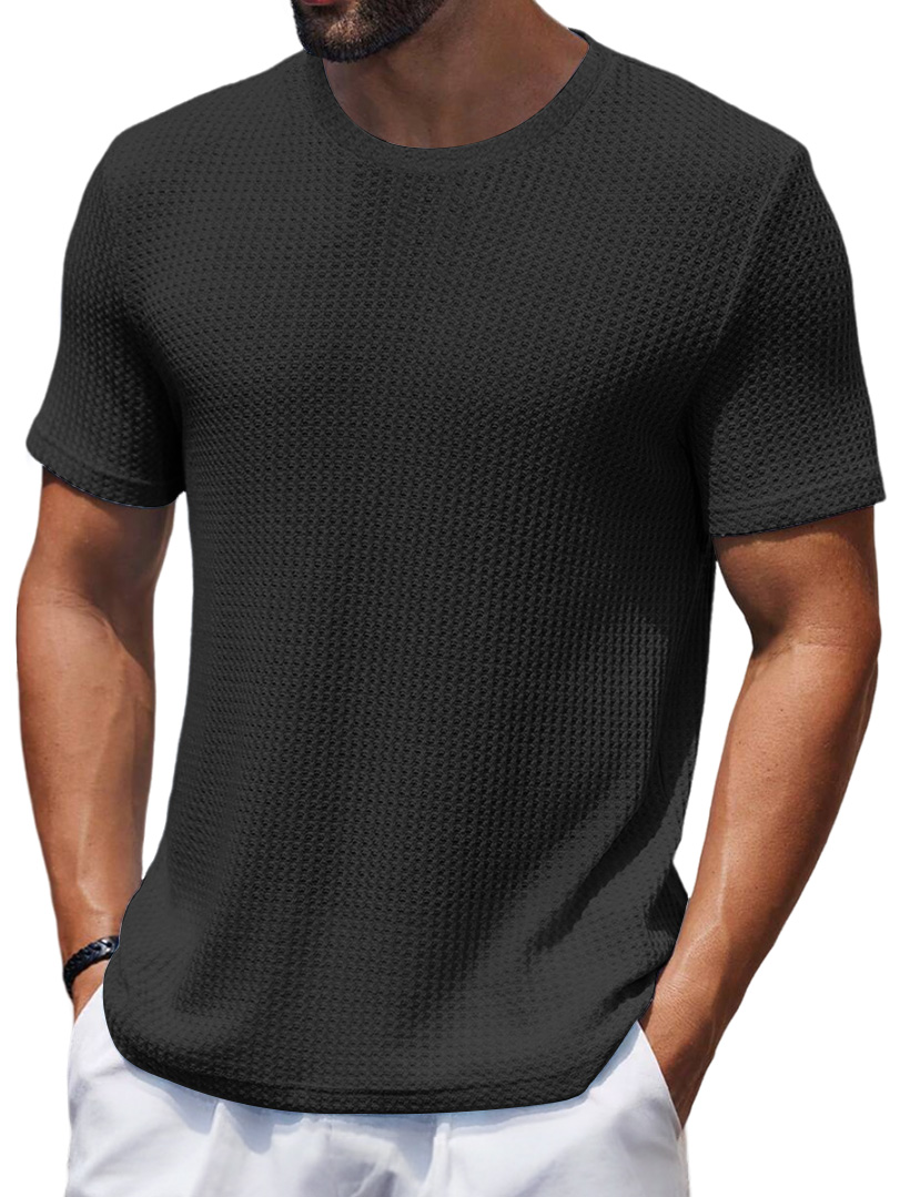 Men's Summer Round Neck Casual Solid Color Waffle Texture Short Sleeve T-Shirt