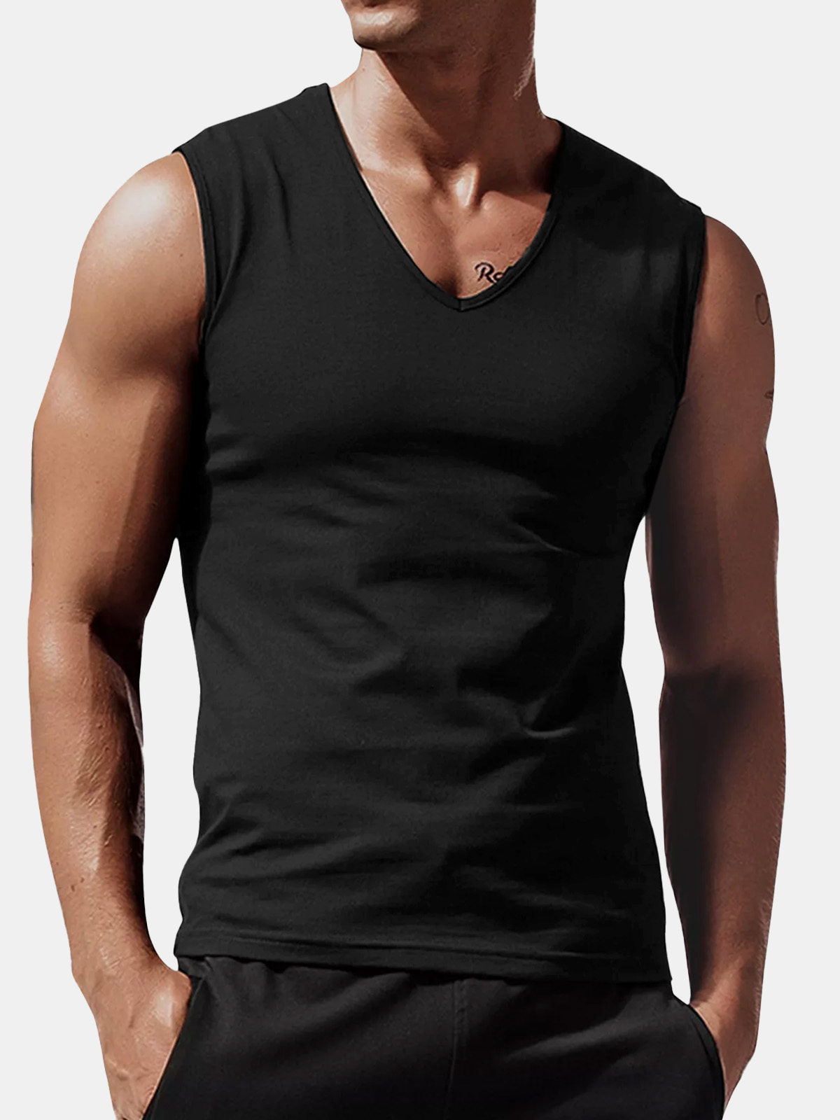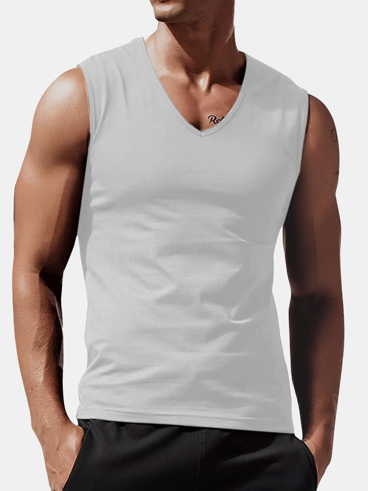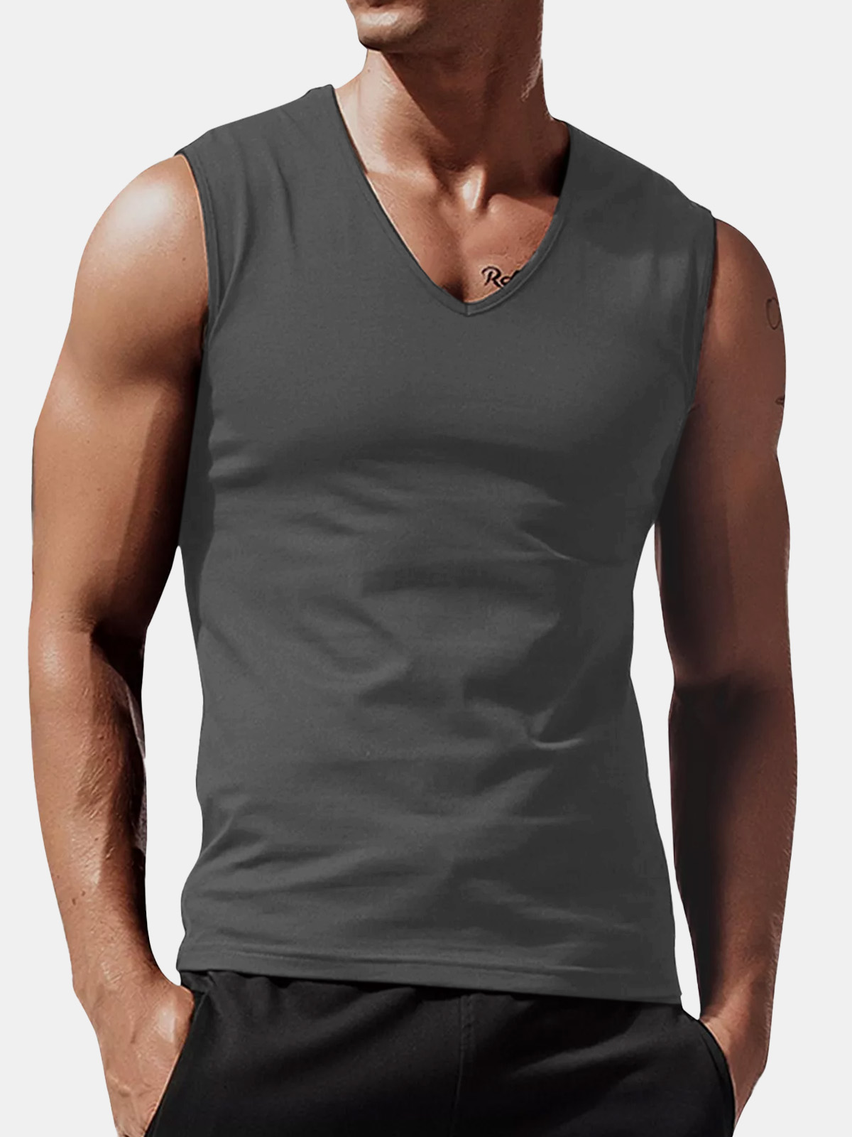 Men's Summer Solid Color Comfortable Loose V-neck Sleeveless T-shirt