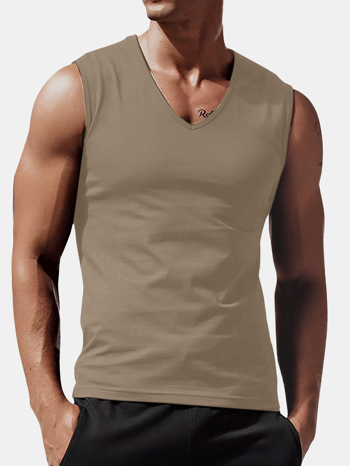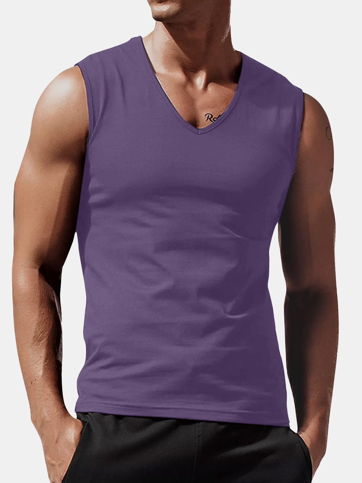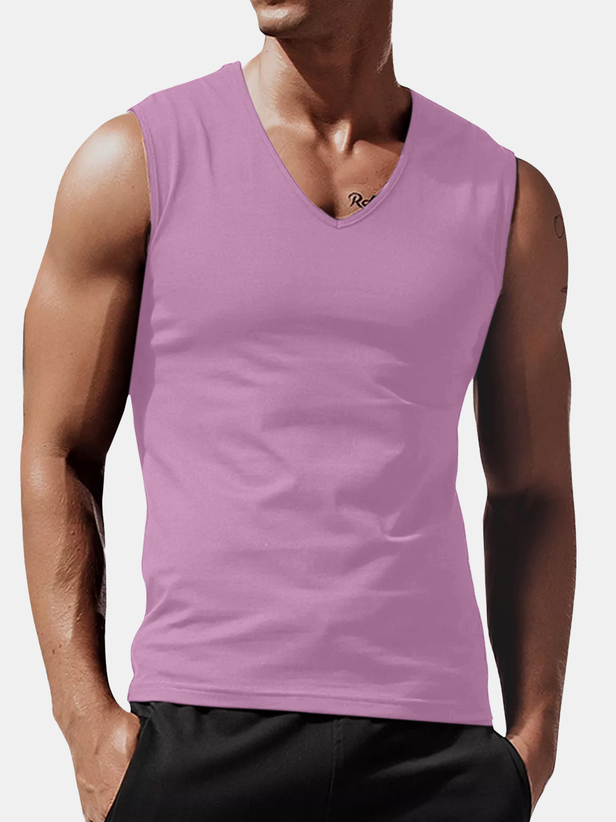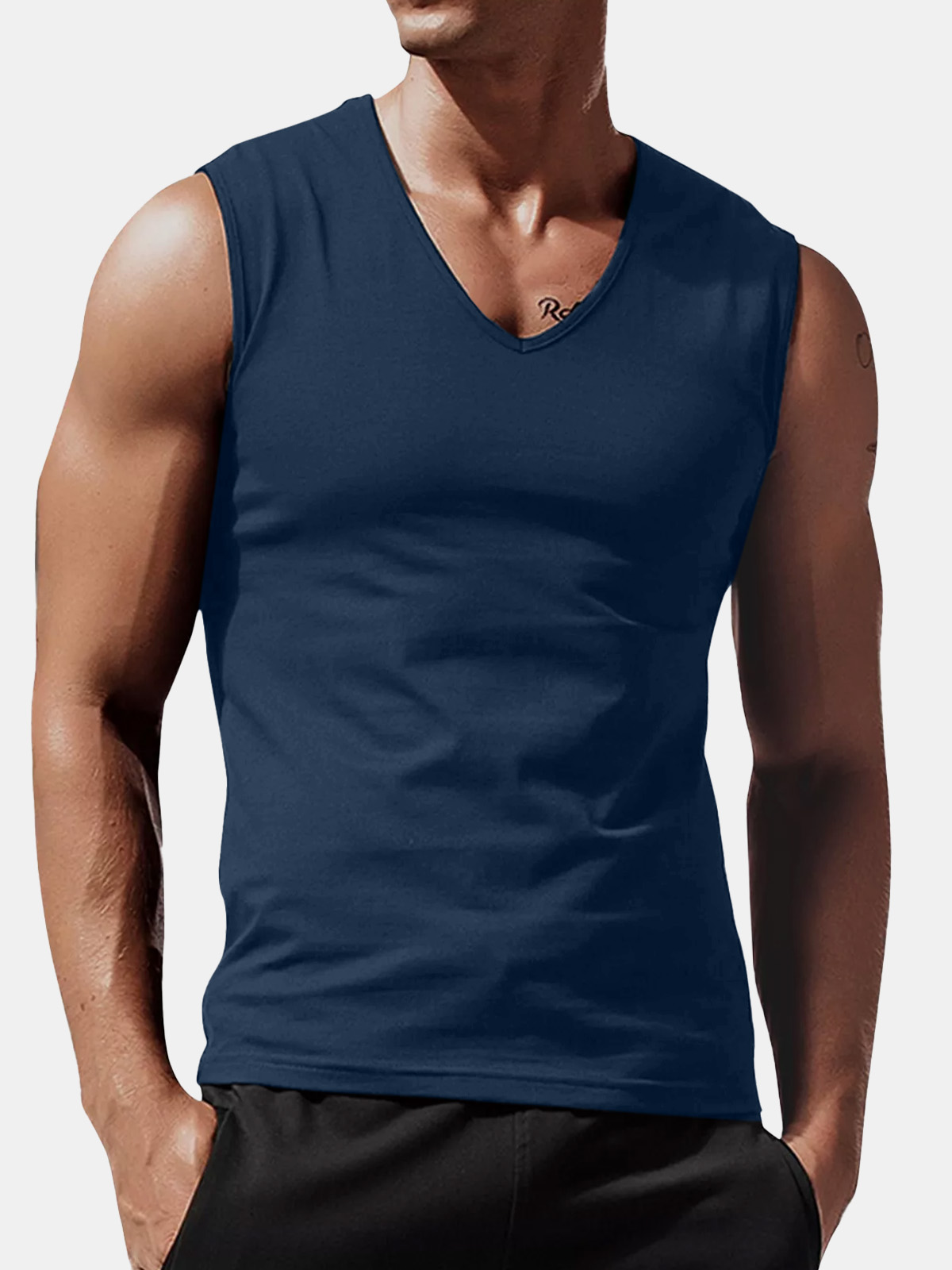 Men's Summer Solid Color Comfortable Loose V-neck Sleeveless T-shirt