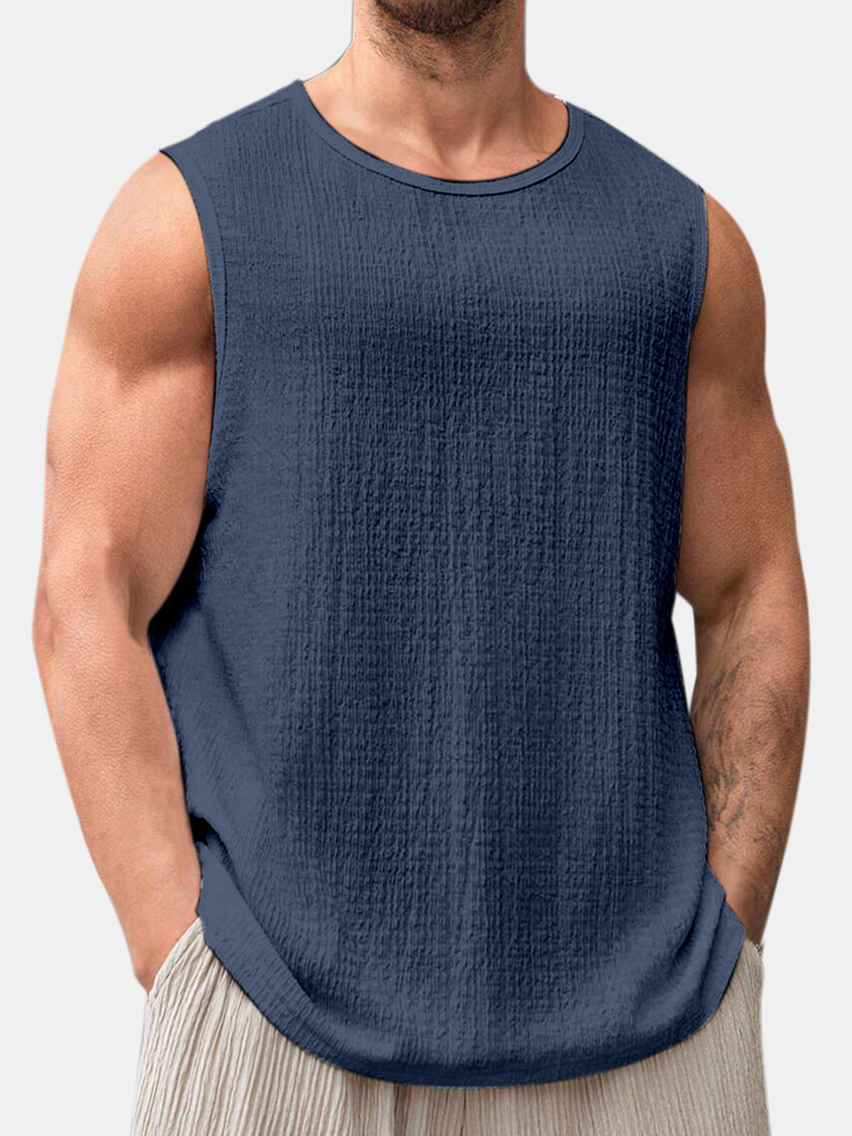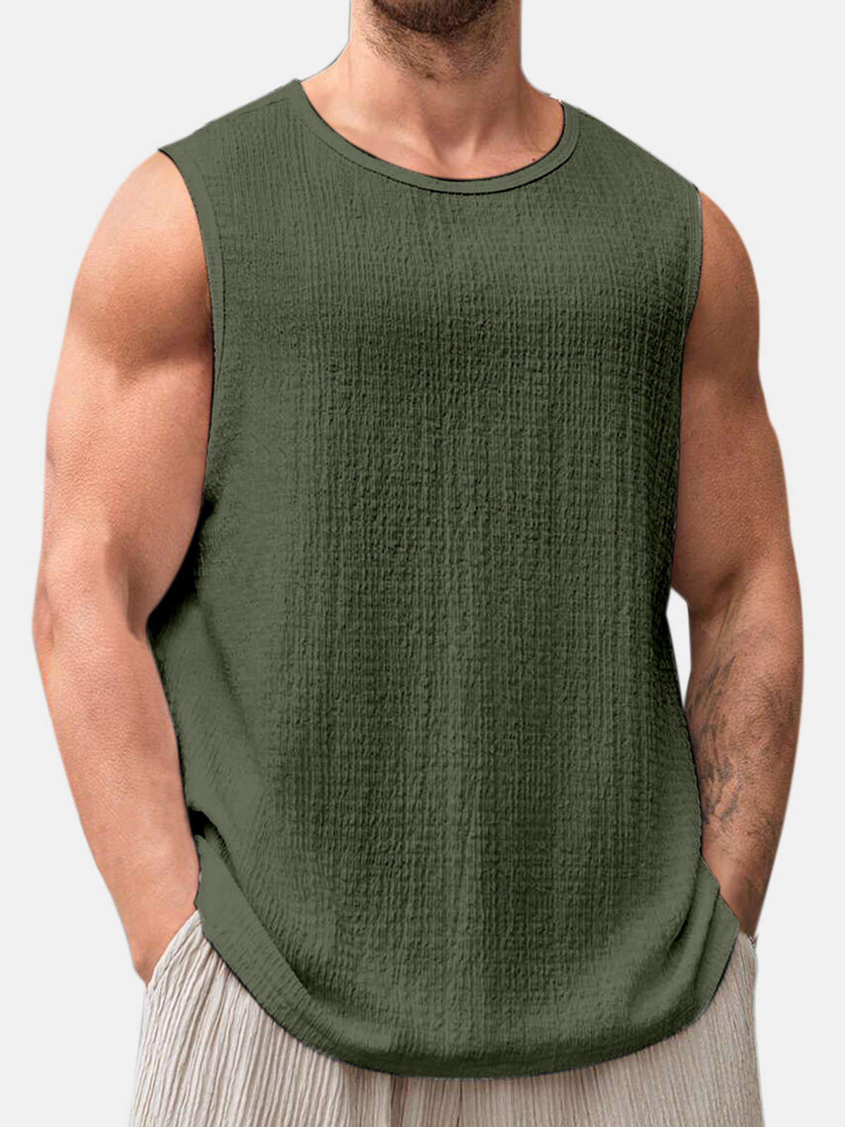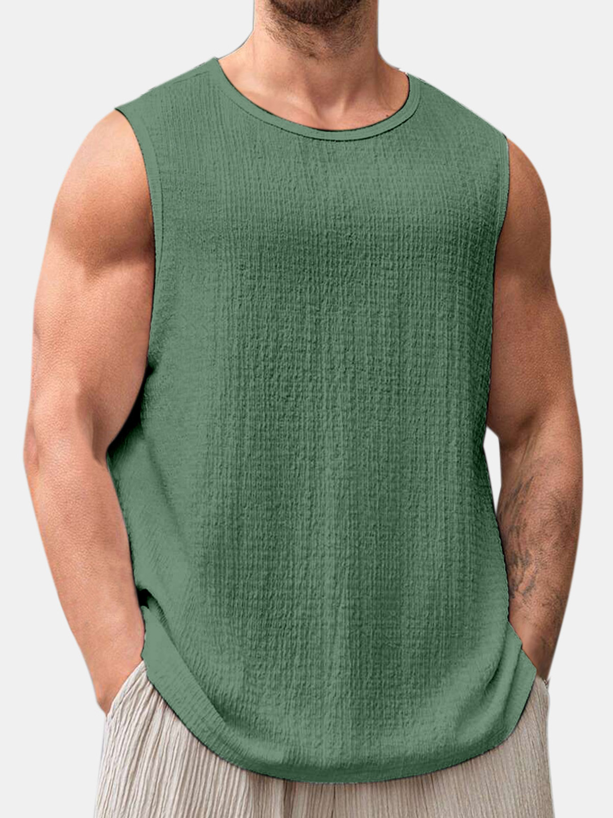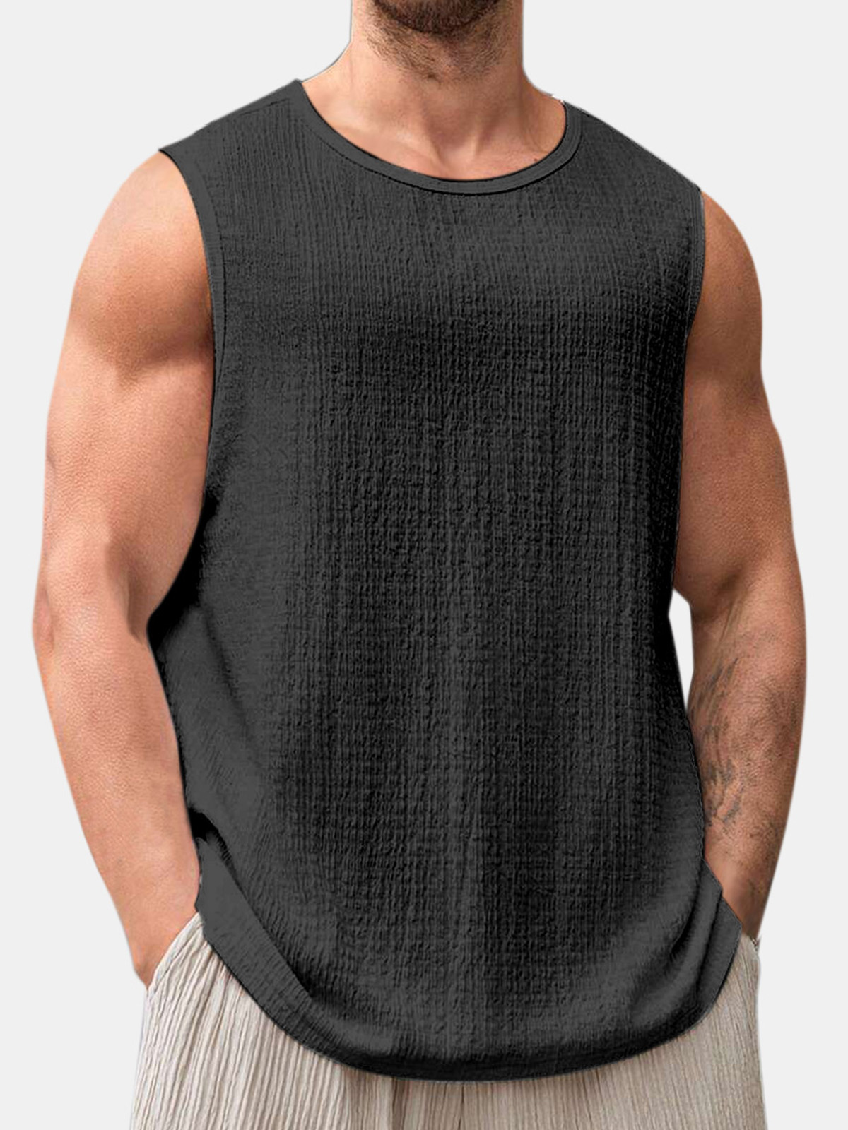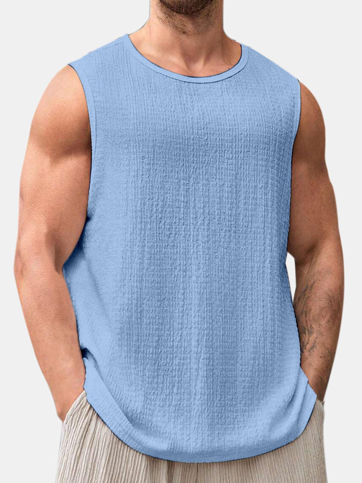 Men's Summer Solid Color Daily Puff Wrinkle Sleeveless T-shirt