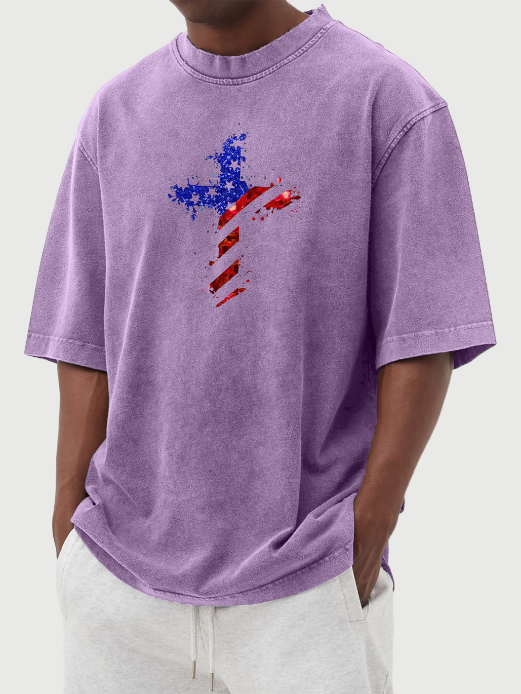 Men's Vintage Washed American Flag Cross Print Short Sleeve T-shirt
