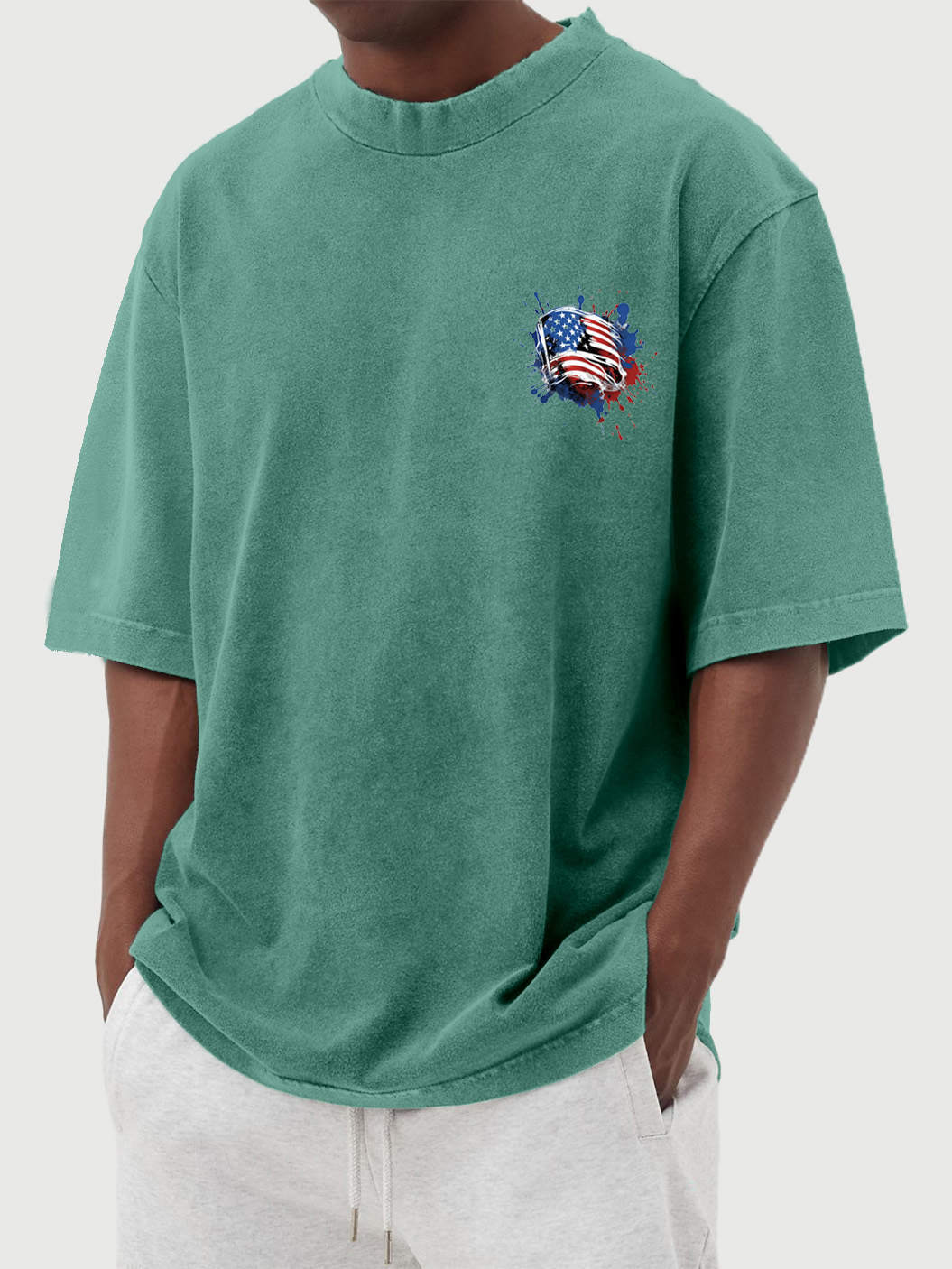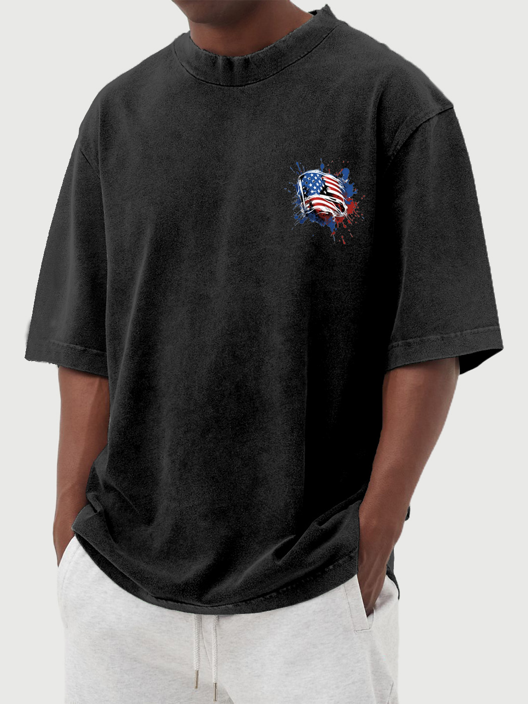 Men's Vintage Washed American Flag Printed Cotton Short Sleeve T-shirt