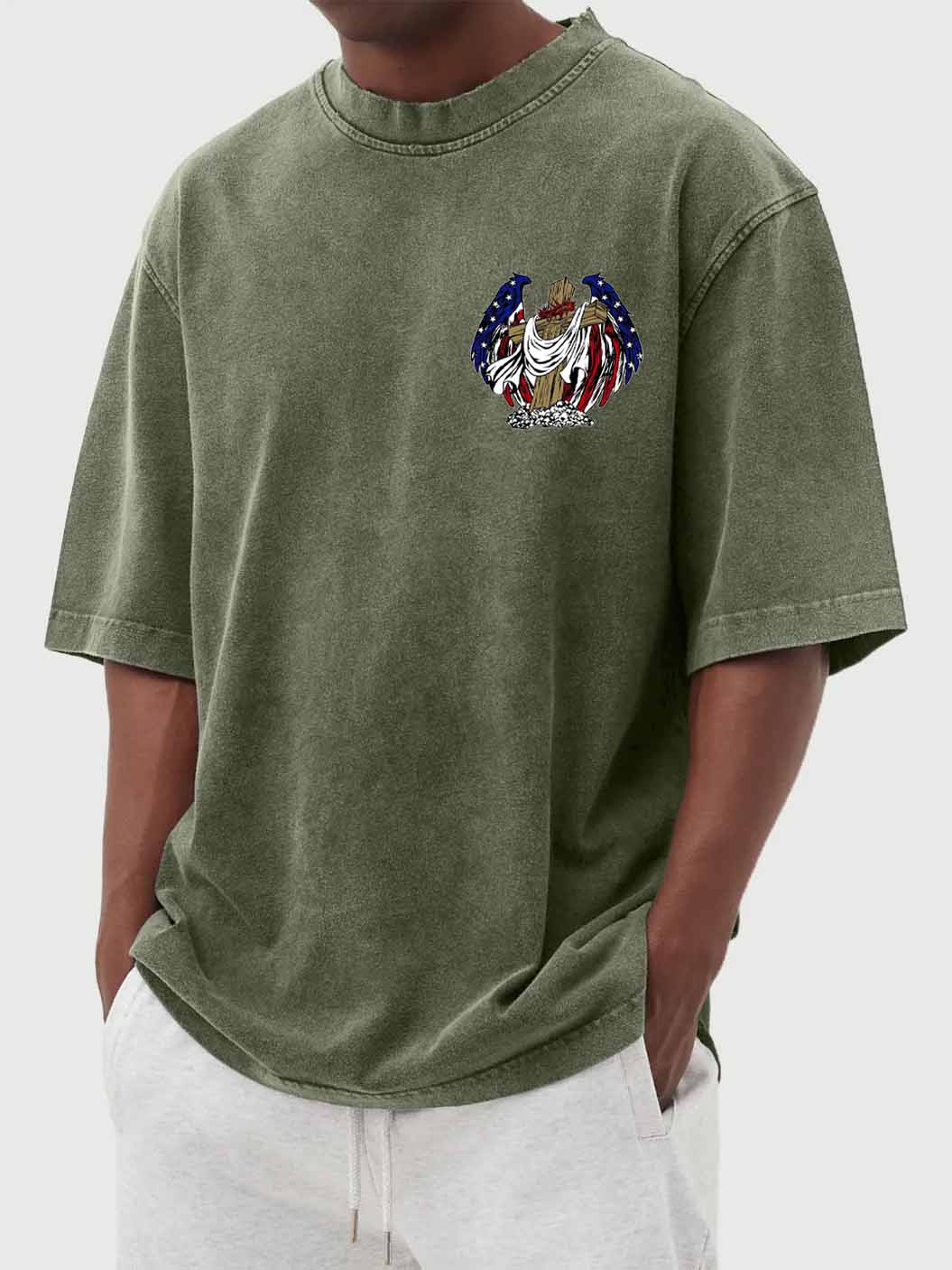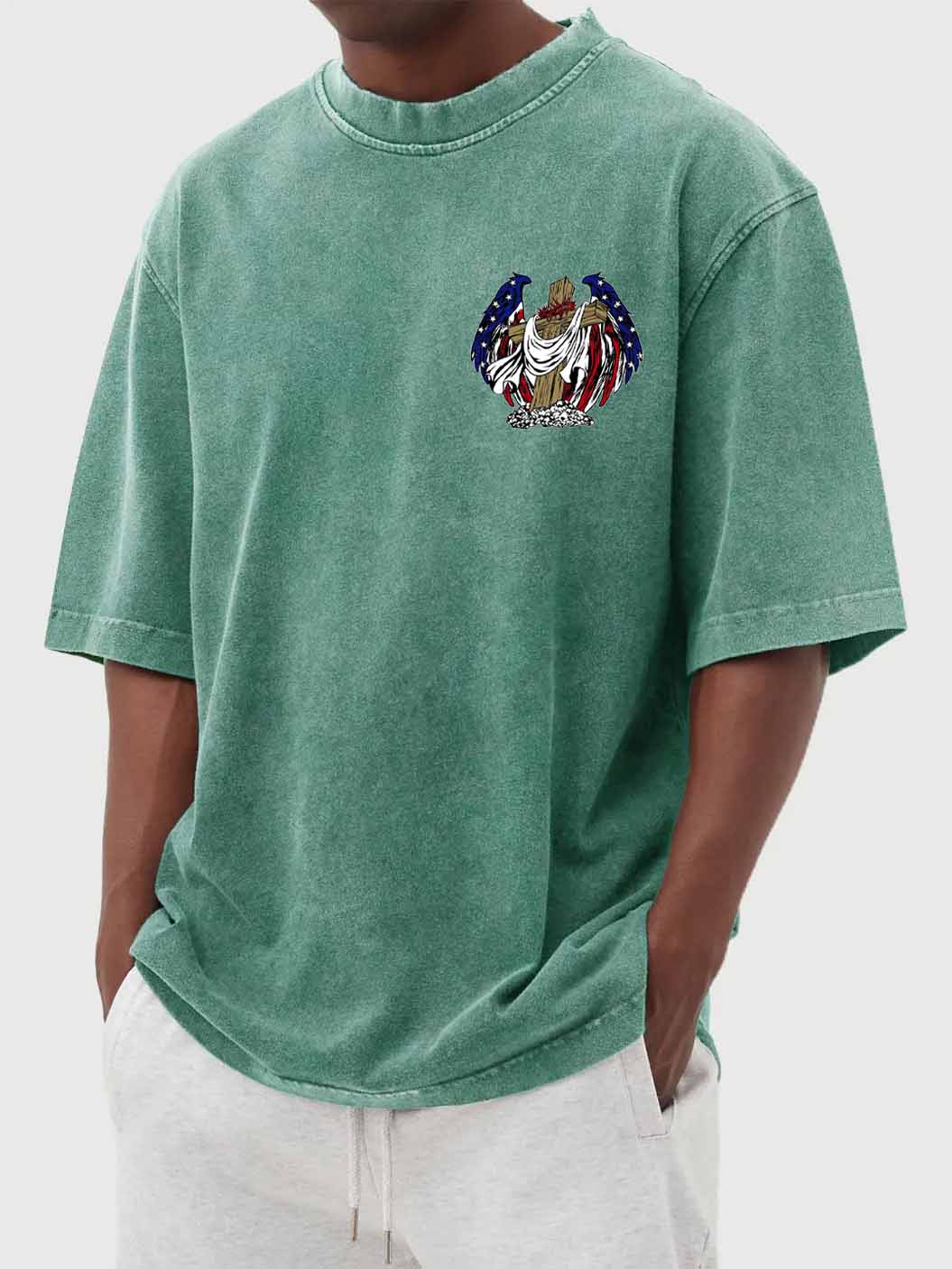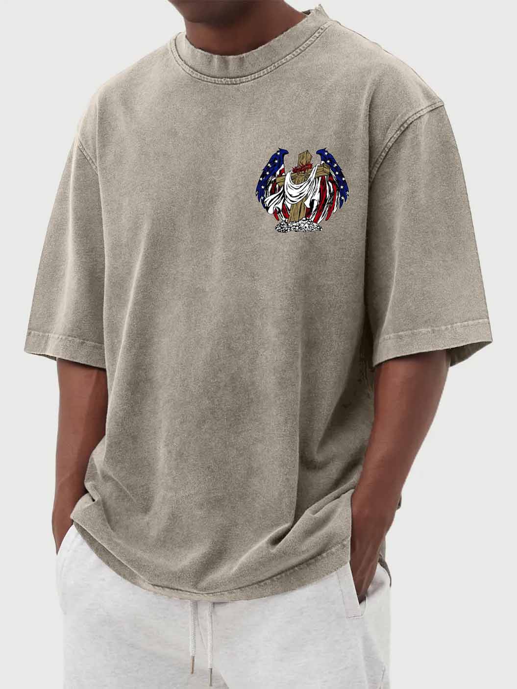 Men's Vintage Washed Flag Print Short Sleeve T-Shirt