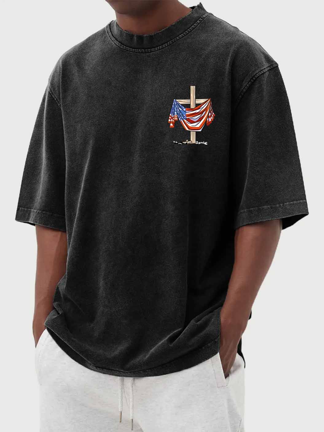 Men's Vintage Washed Flag Print Short Sleeve T-Shirt