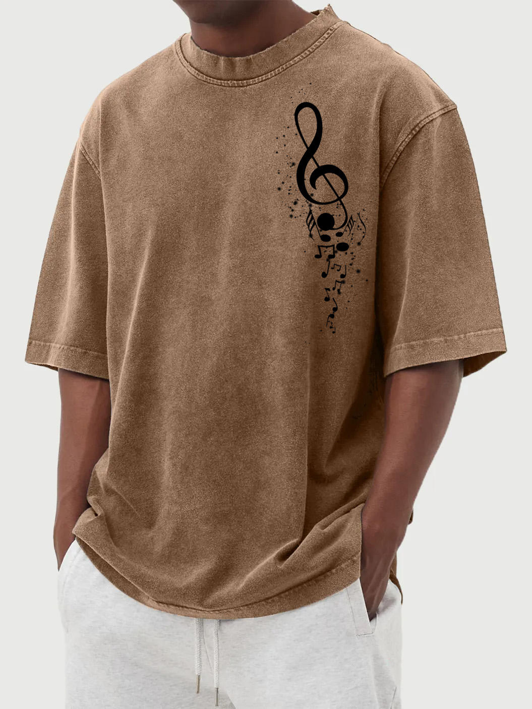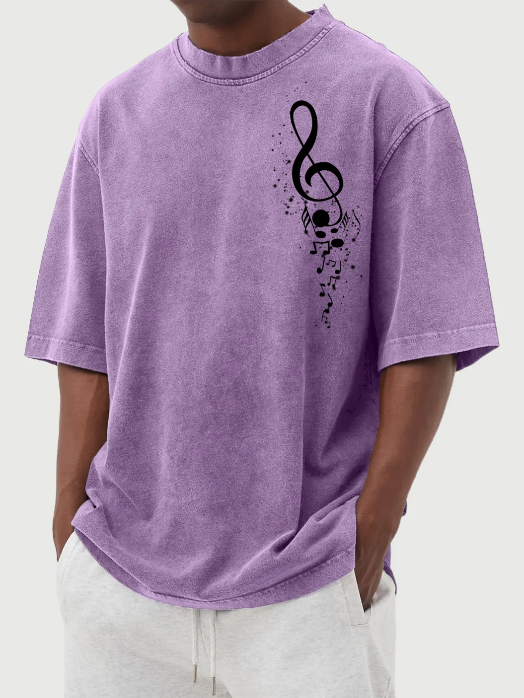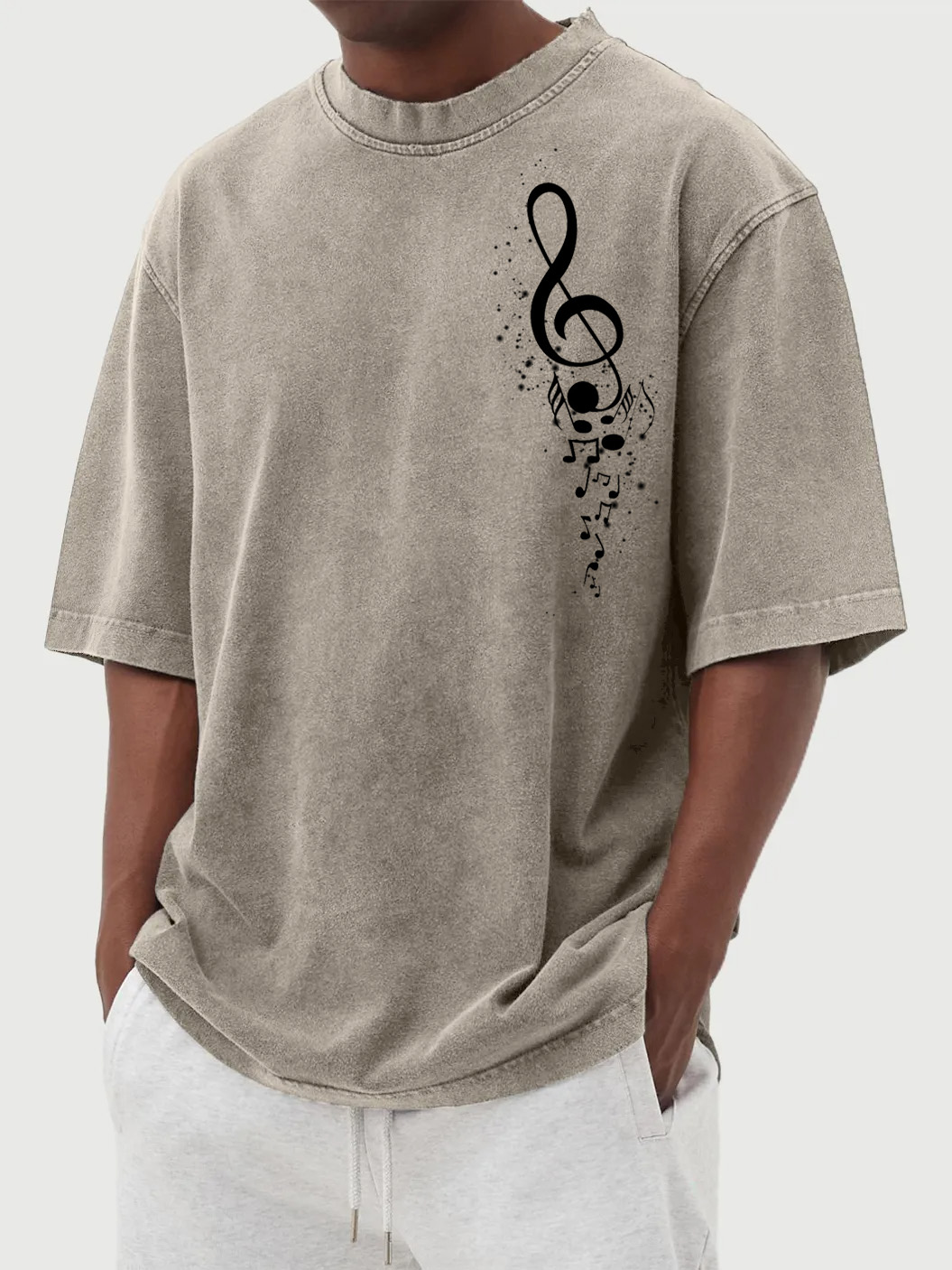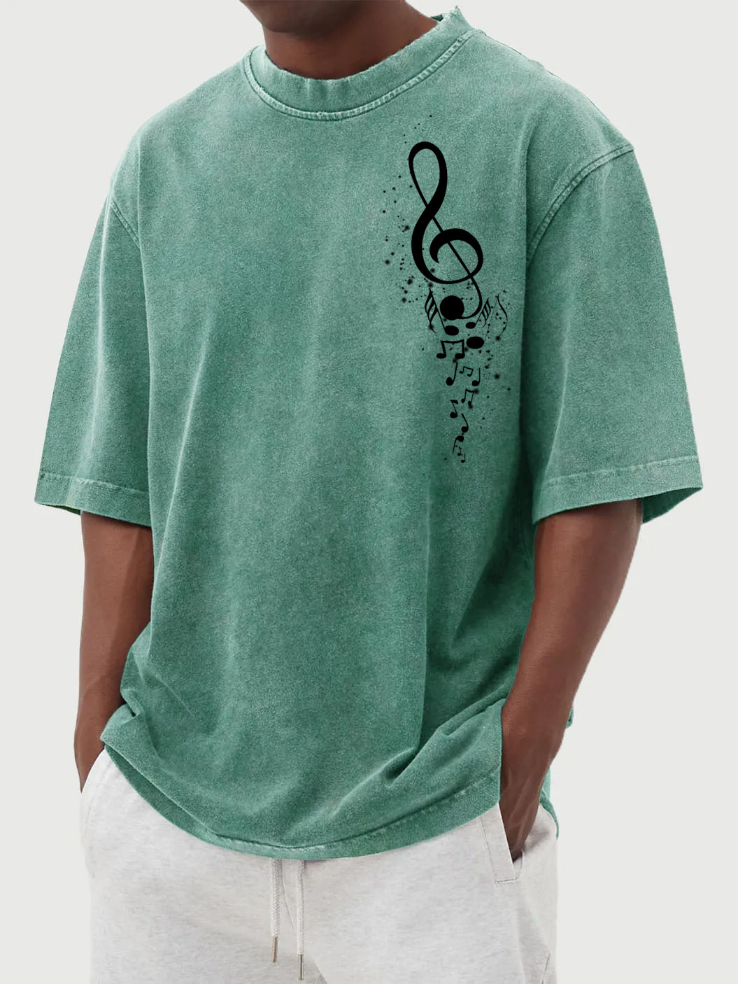 Men's Vintage Washed Music Print Short Sleeve T-Shirt