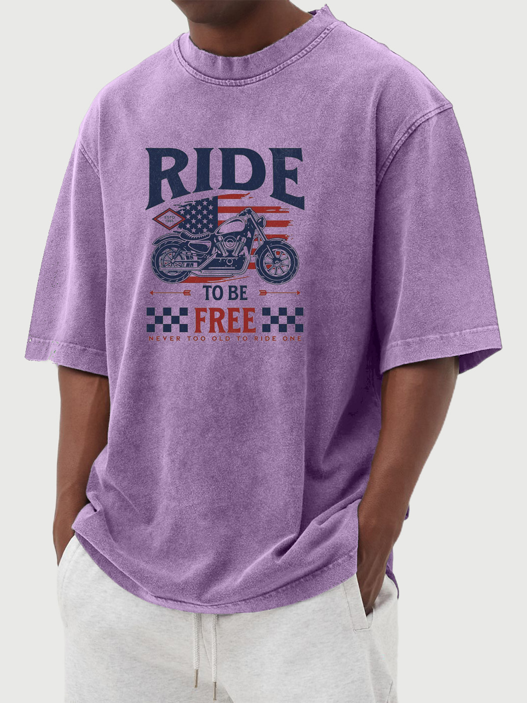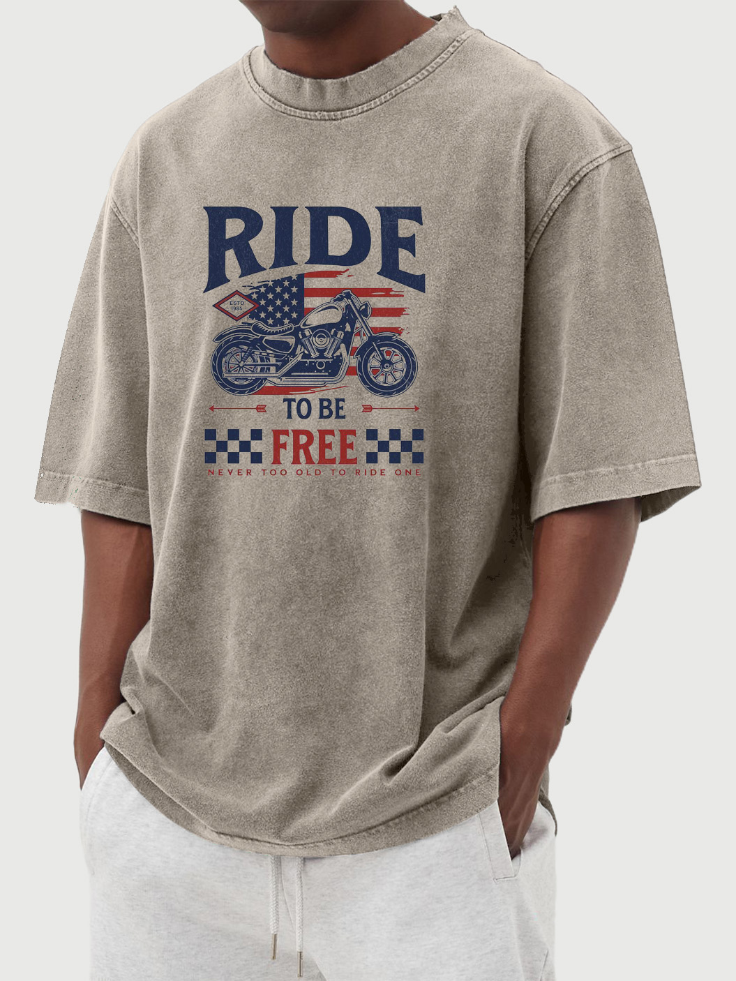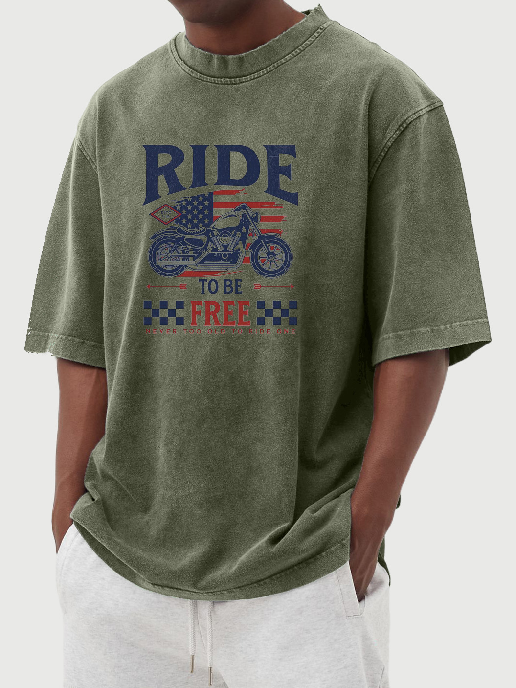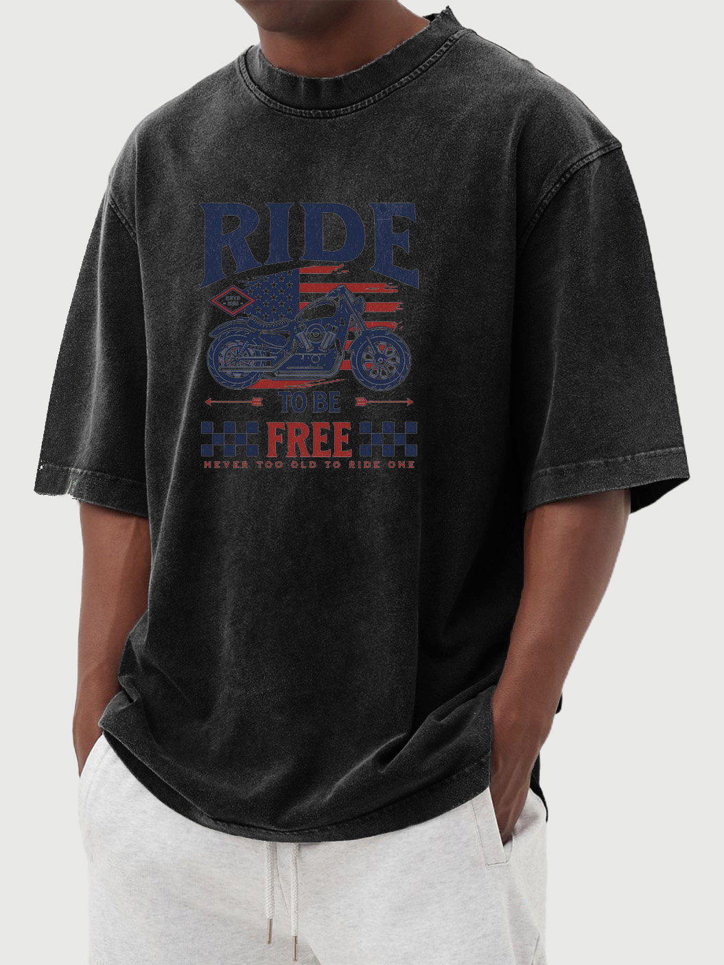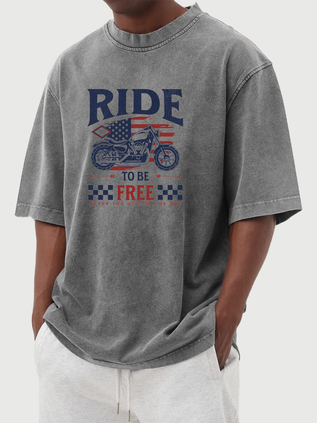 Men's Vintage Washed Ride To Be Free Printed Short-sleeved T-shirt