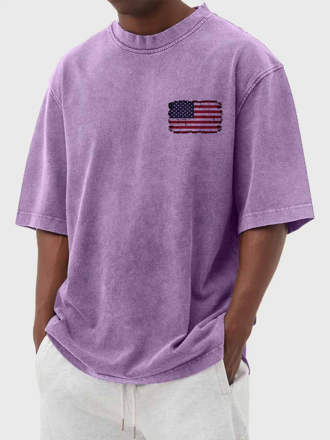 Men's Washed Vintage American Flag Print Short Sleeve T-Shirt