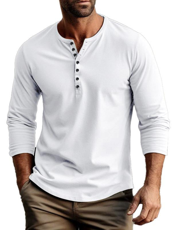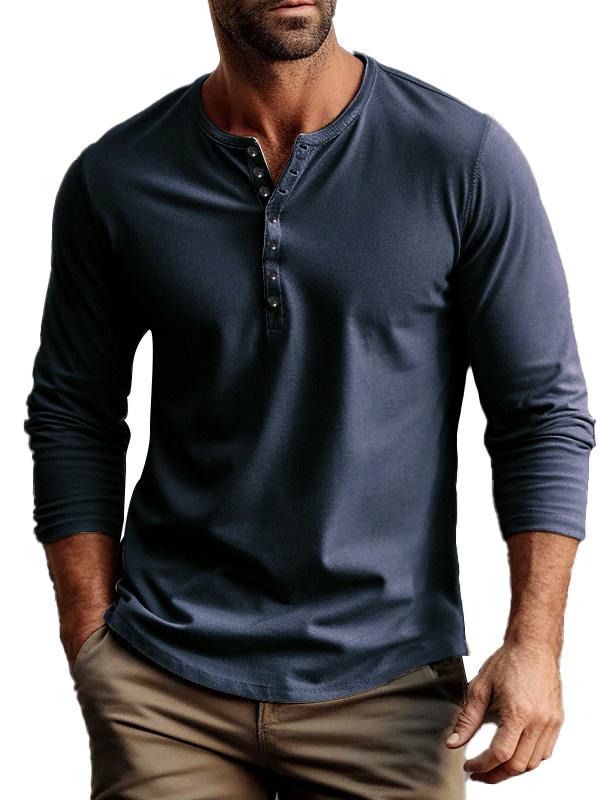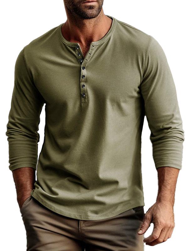 Men's buttoned bottoming long sleeve henley shirt
