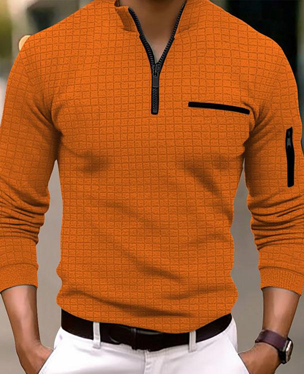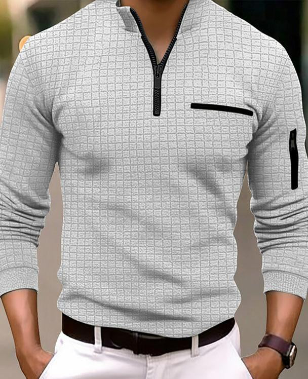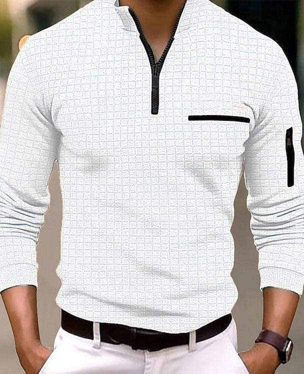 Men's Checkerboard Checkered Polo Shirt Arm Zip Sports Polo Shirt