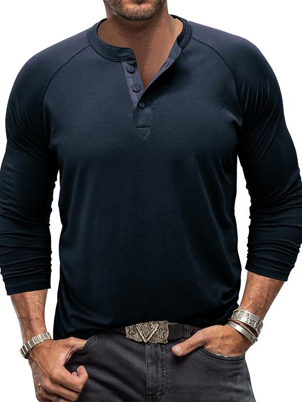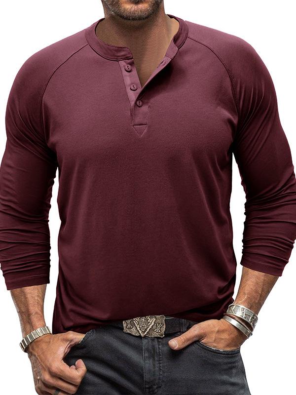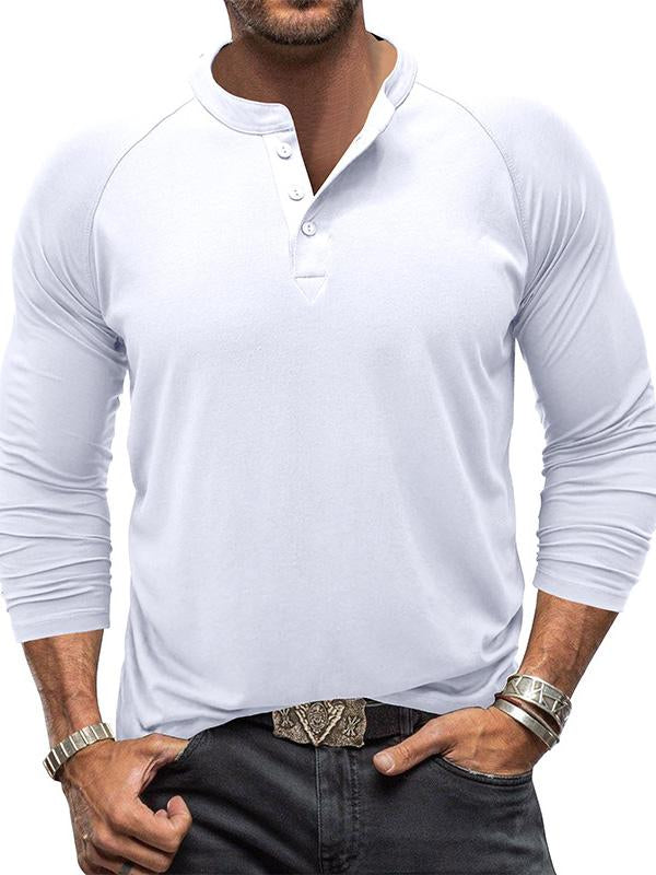 Men's Cotton Solid Color Basic Stretch Long Sleeve Raglan Sleeve Polo