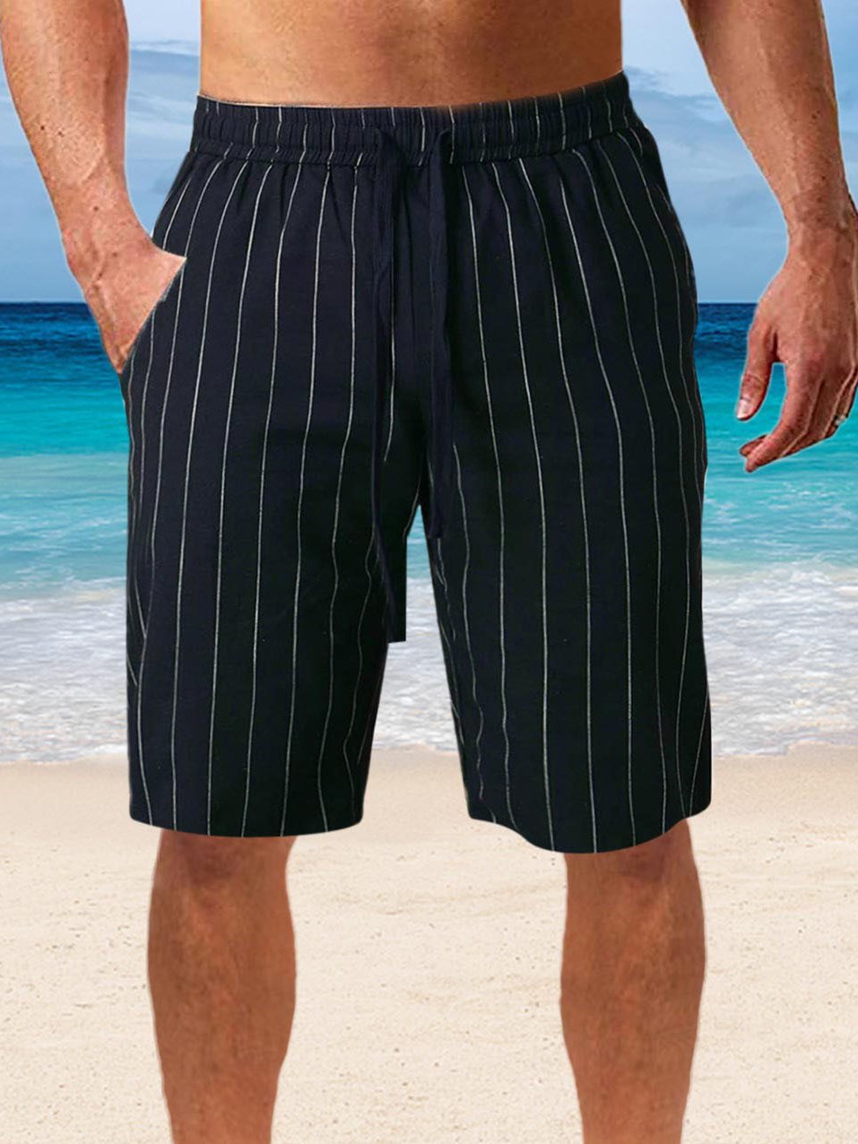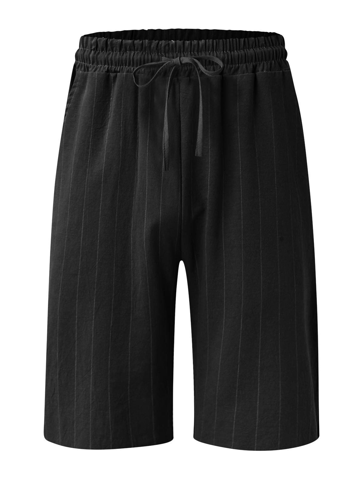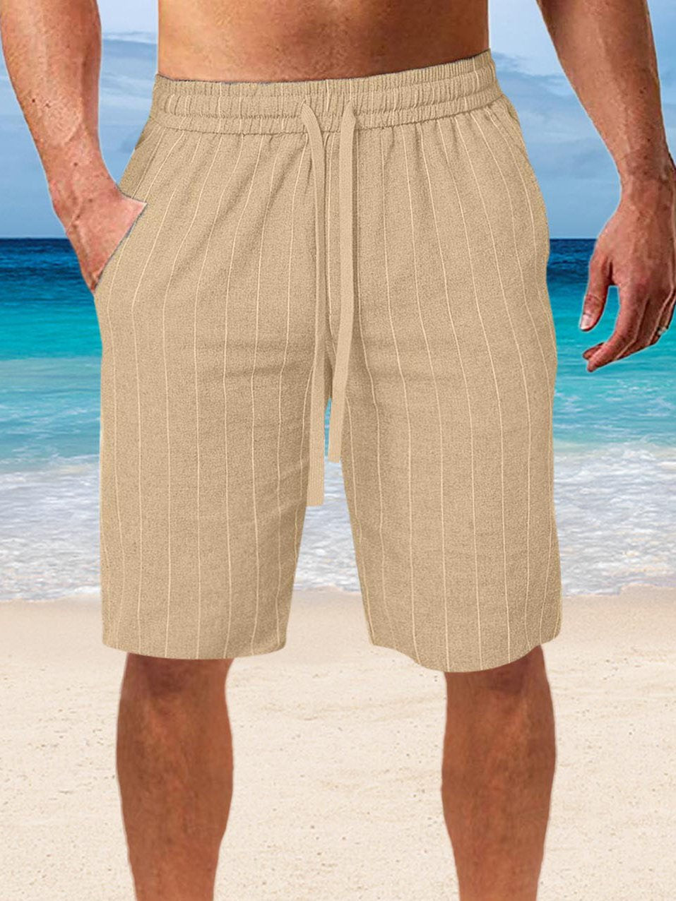 Men's Elastic Waist Striped Cotton Linen Casual Basic Pocket Shorts