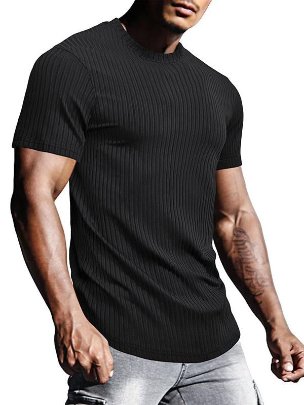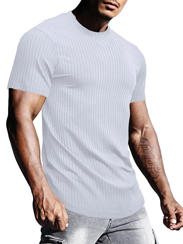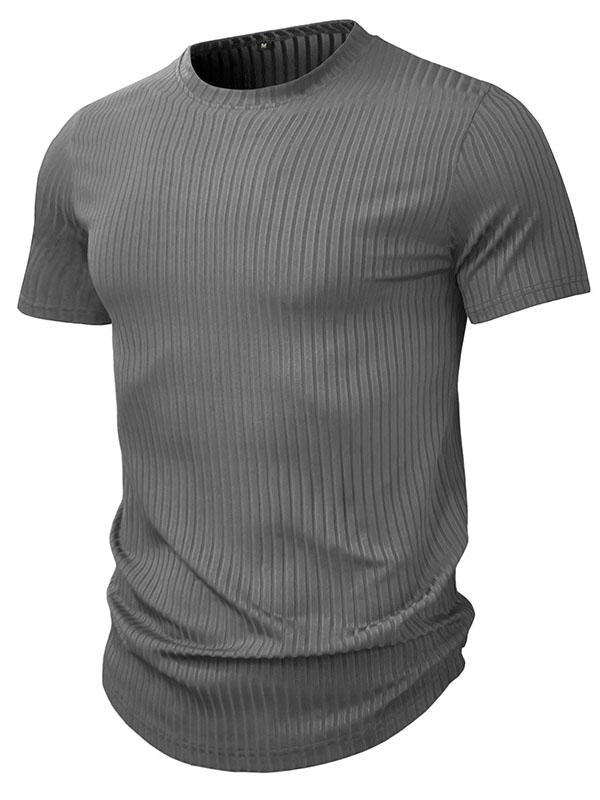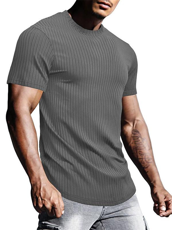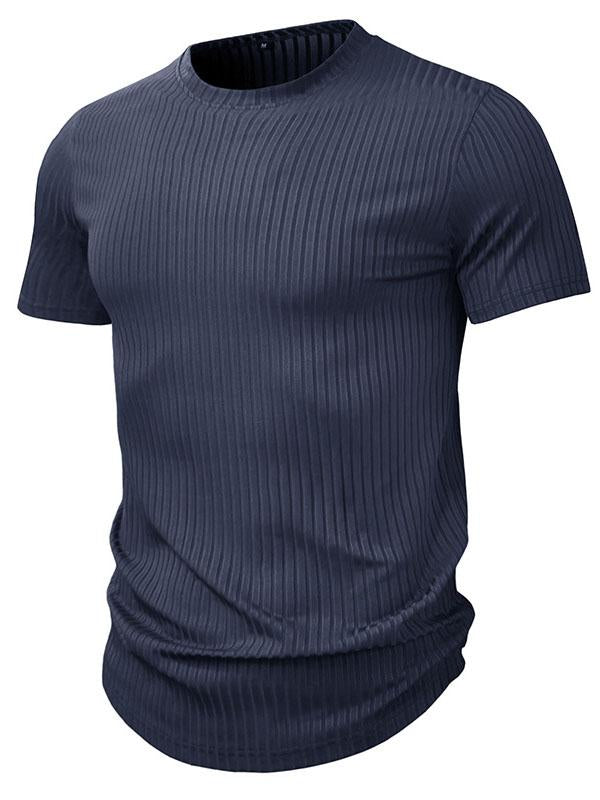 Men's Round Neck Striped Stretch Top Casual T-shirt