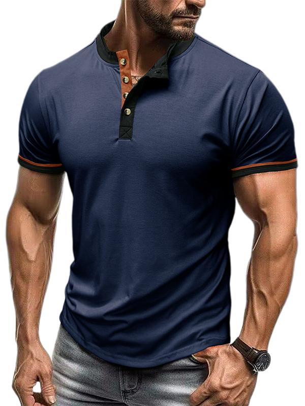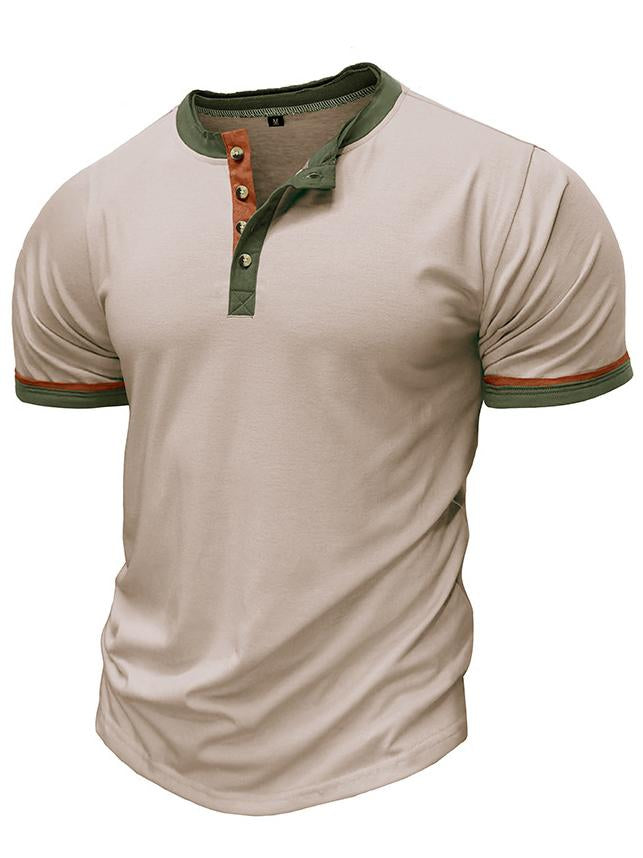 Men's Short Sleeve Outdoor Henley Contrast Color Basic Base Top