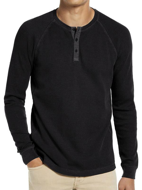 Men's Stylish Crew Neck Waffle Henley Shirt
